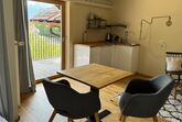 Elf neue, modern ausgestattete Ferienwohnungen, große Wiese für die Gäste direkt vor dem Haus, Frühstücksraum mit Produkten der Bauern aus der Umgebung, ausgewählte Bibliothek.