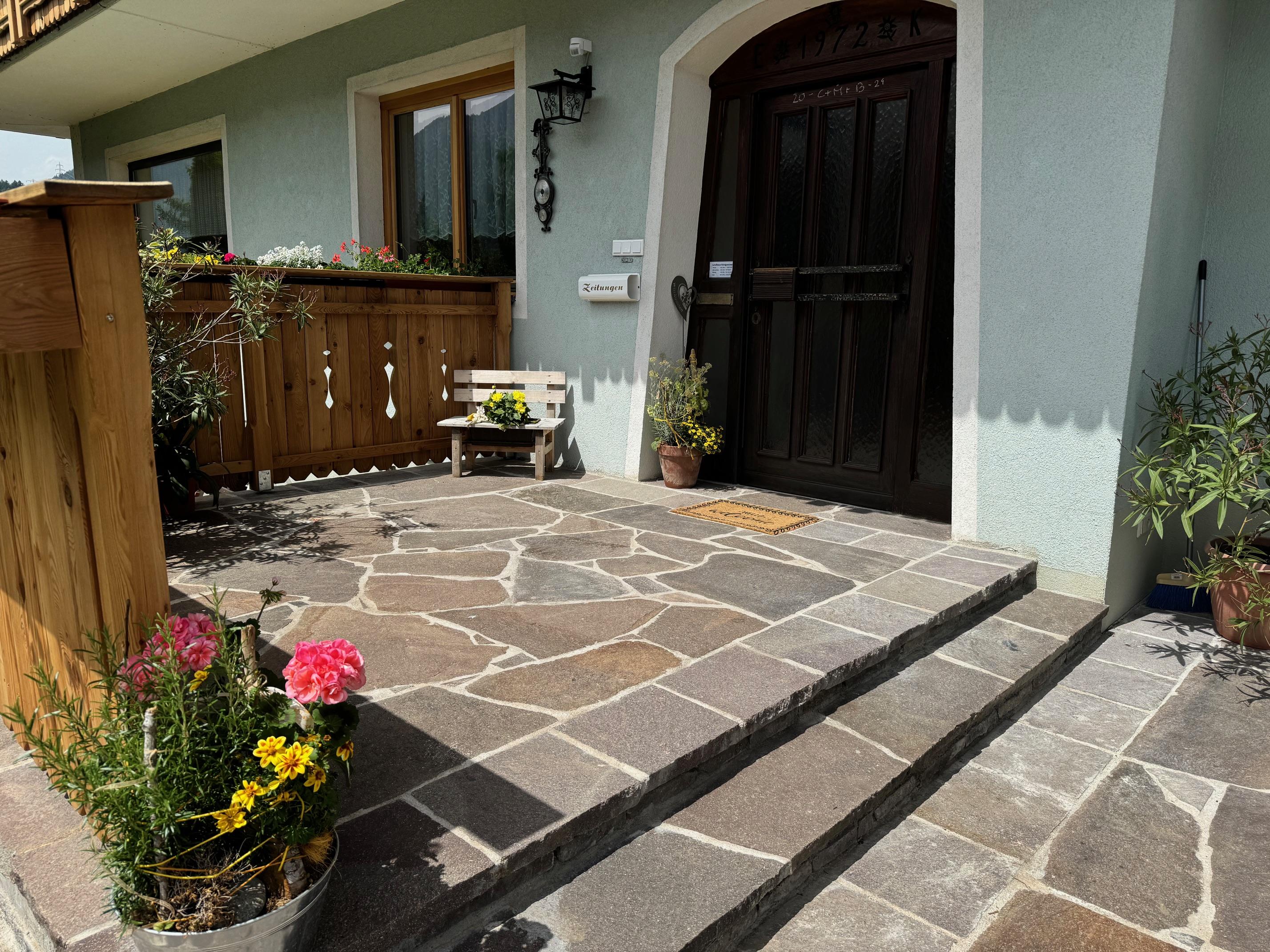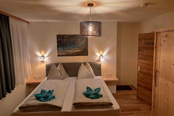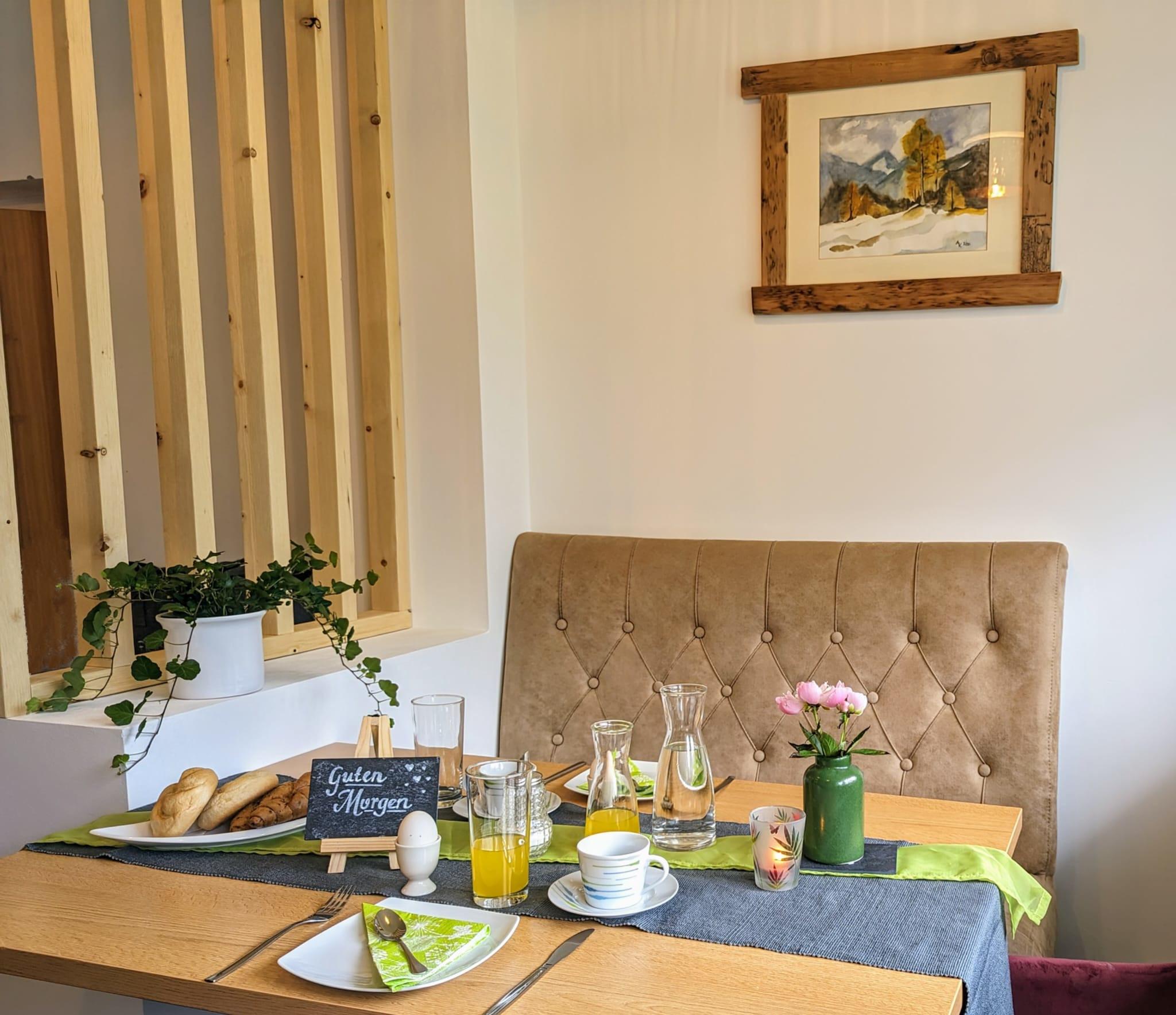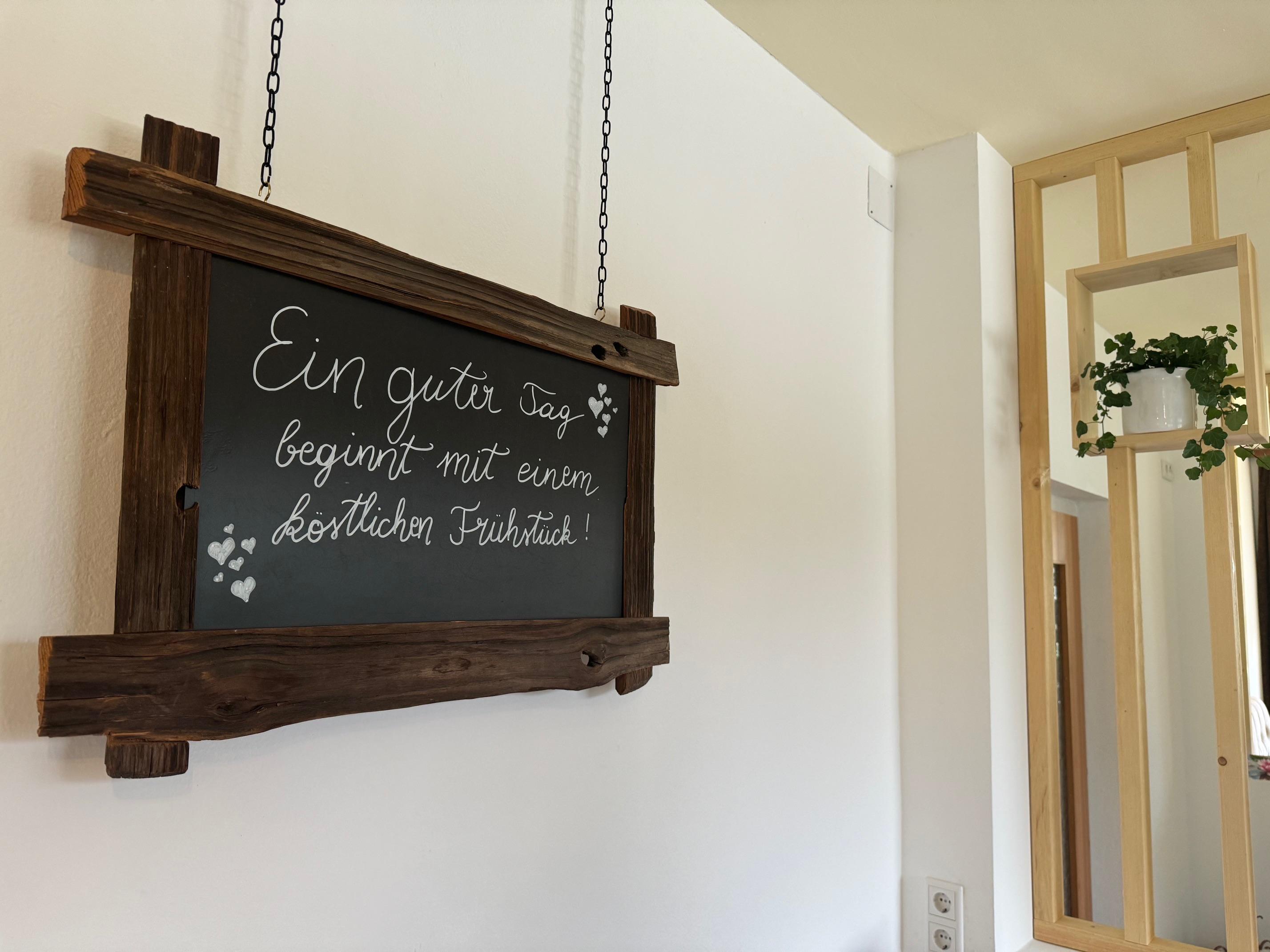 Zirbenduft, wunderschöne Tischlermöbel, liebevolle und farbige Akzente sorgen für einen Wohlfühlfaktor. Jedes unserer Zimmer wurde von unserem Sohn Daniel mit sehr viel Akribie und Sorgfalt für Euch hergestellt. Die Duschen und die WCs sind hell und ermöglichen teilweise atemberaubende Bergblicke. Am Balkon kann man die wunderbare Umgebung auf sich wirken lassen und die neu gestaltete Terrasse im Erdgeschoß ist eine kleine, aber feine Oase. Rund um unser kleines Anwesen können sich die Kinder austoben - eine wunderschöne Streuobstwiese lässt die Herzen von Naturliebhaber*Innen höher schlagen.