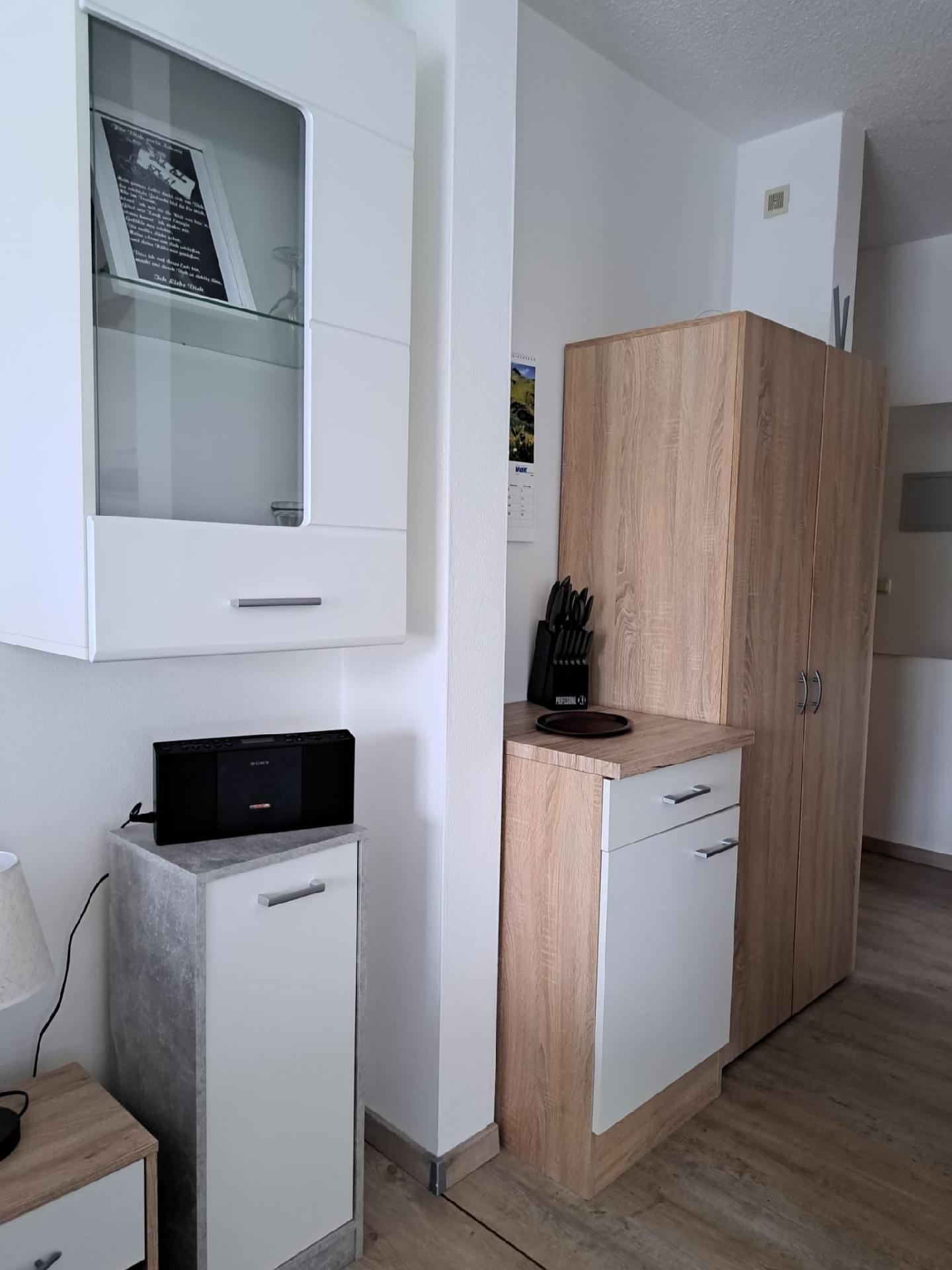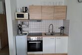 Kochen: 2-Plattenherd; Backofen; Gefrierfach; Kaffeemaschine; Kaffeepadmaschine; Kühlschrank; Mikrowelle; Toaster; Wasserkocher