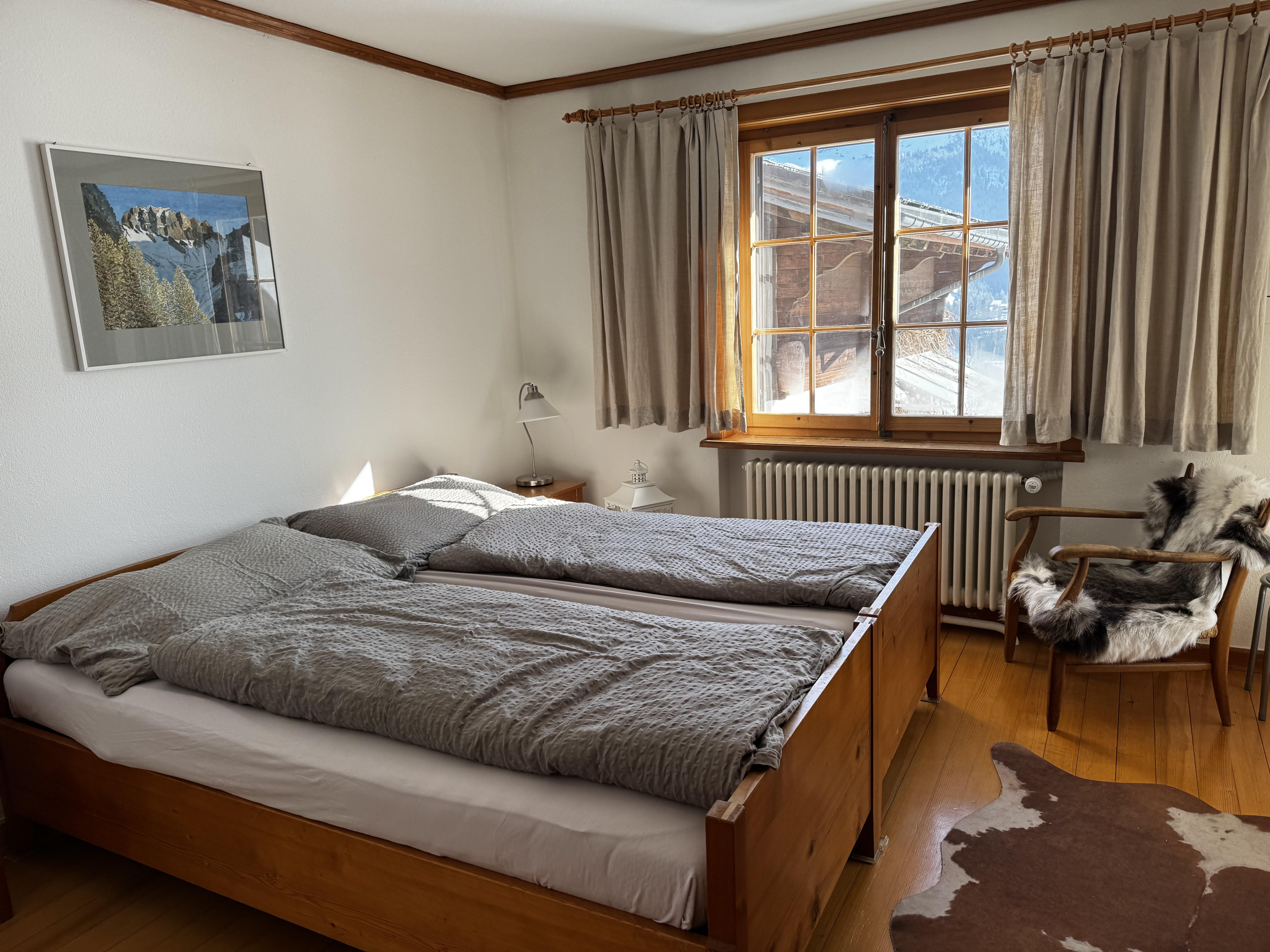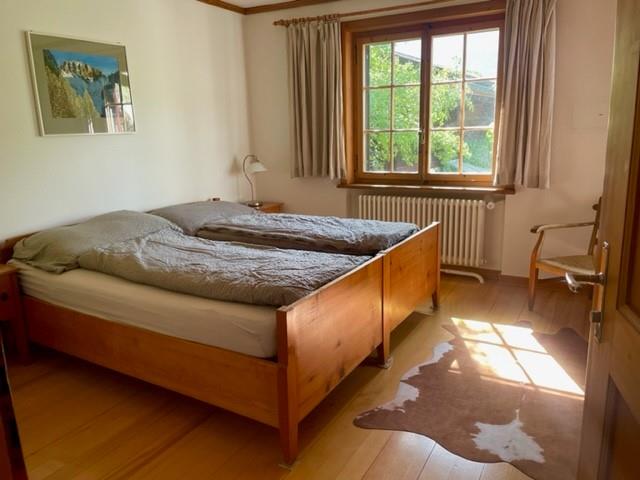 Ruhig und idyllisch gelegenes Ferienhaus mit Gartensitzplatz und Umschwung. Ca. 10 Gehminuten ausserhalb Dorf Adelboden. Gemütliches Wohnzimmer mit grossem Tisch und Sitzecke. Zweckmässige Küche mit Backofen und Kaffeemaschine. 1 Schlafzimmer mit Doppelbett, 1 Schlafzimmer mit zwei Einzelbetten und 1 Schlafzimmer mit Etagenbett (Total 6 Betten). 1 Badezimmer mit Badewanne, Waschmaschine, 1 sep. WC. Parkplatz vorhanden. Haustiere sind willkommen.
