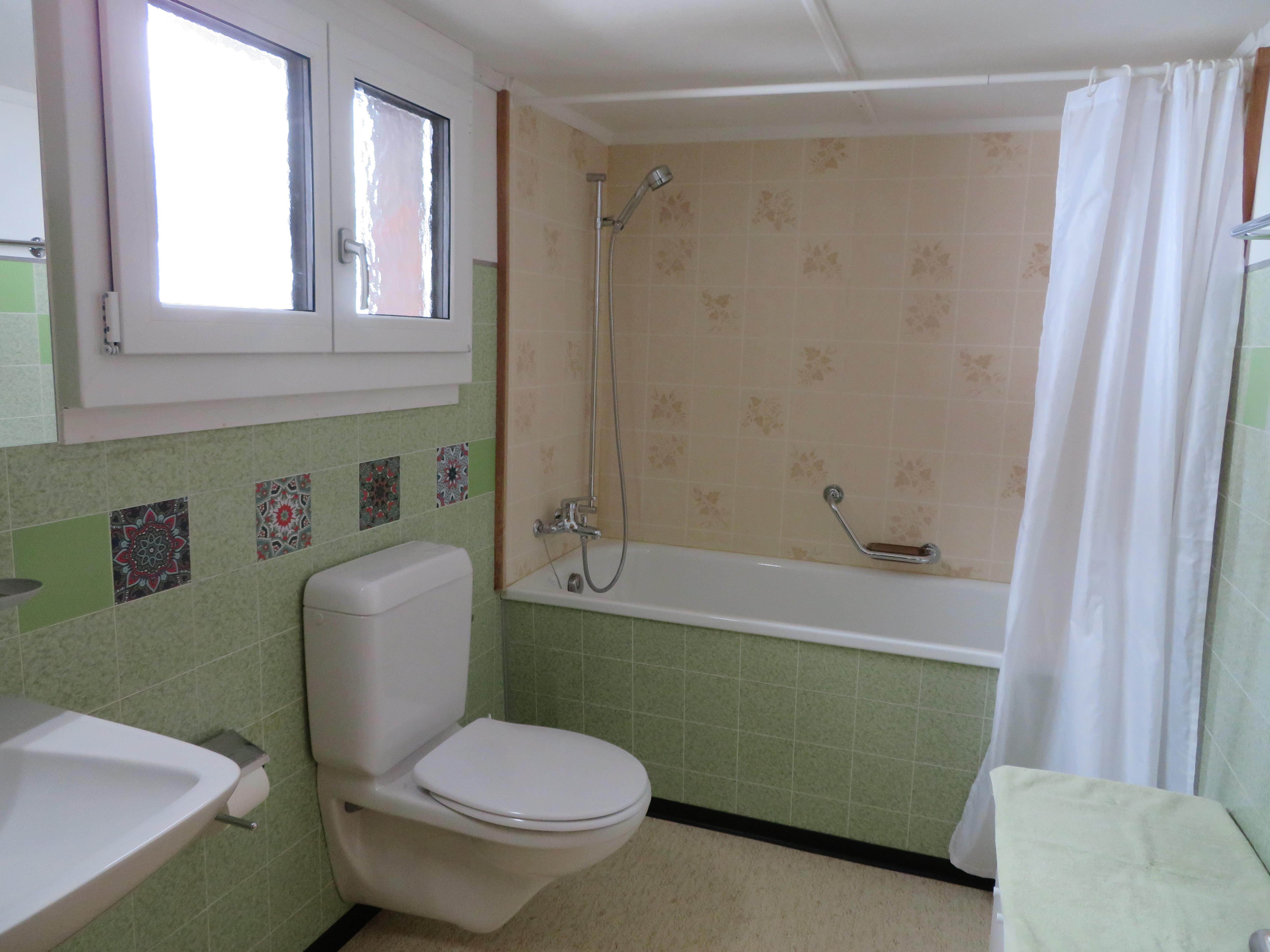 Bad, WC, Badewanne, Badewanne mit integrierter Dusche, Badezimmer Anzahl: 1, Toiletten Anzahl: 1, Waschtisch