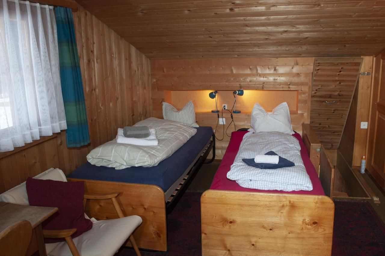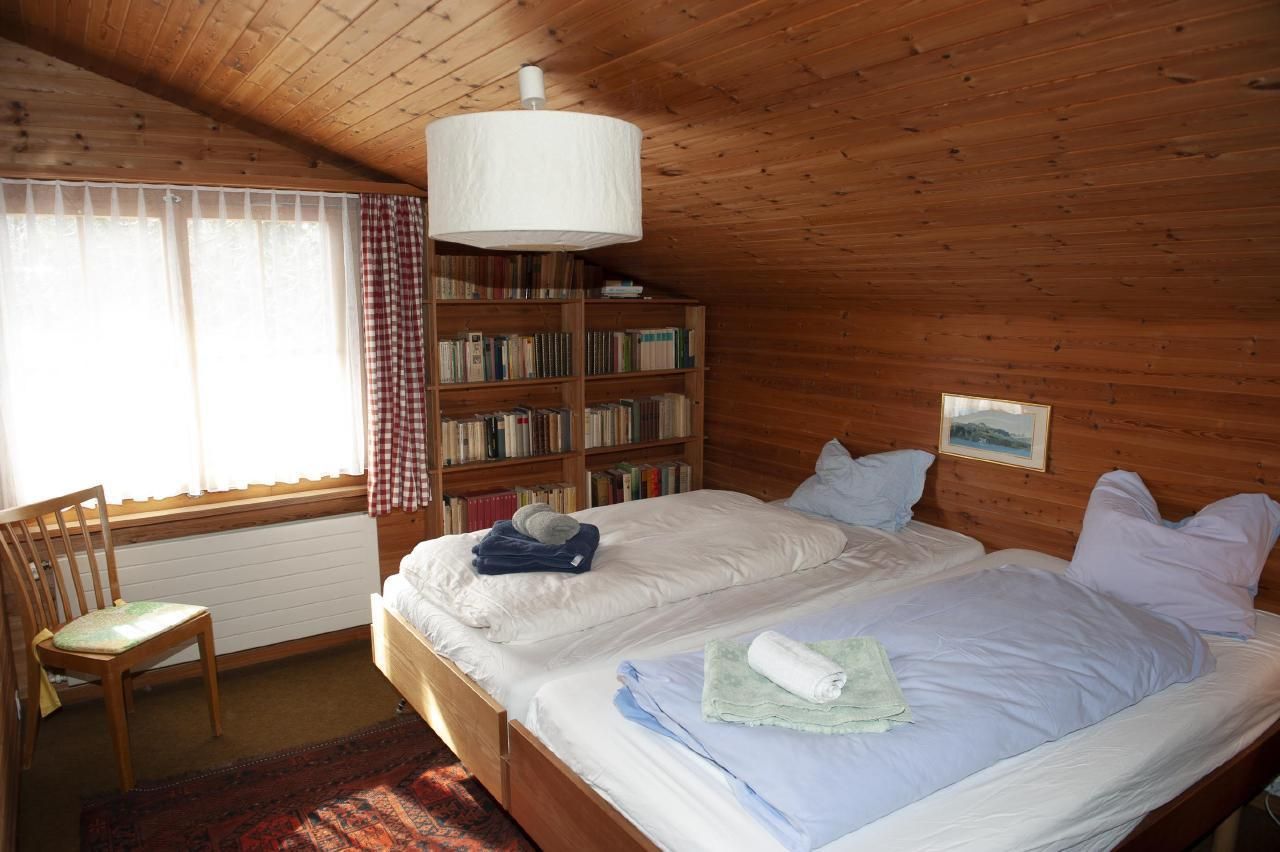 Zwei Schlafzimmer im ersten Stock bieten jeweils 2 Schlafplätze (eines mit einem Doppelbett/2 Betten und eines mit einem Grand Lit und einem Kindergitterbett), zusätzlich gibt es ein Einzelschlafzimmer im Parterre mit einem rustikalen alten Holzbett. Ein Vorraum mit Garderobe und Schuhablage, ein Heizkeller mit Waschmaschine, ein Badezimmer mit Badewanne und eine separate Toilette runden die Innenausstattung ab.