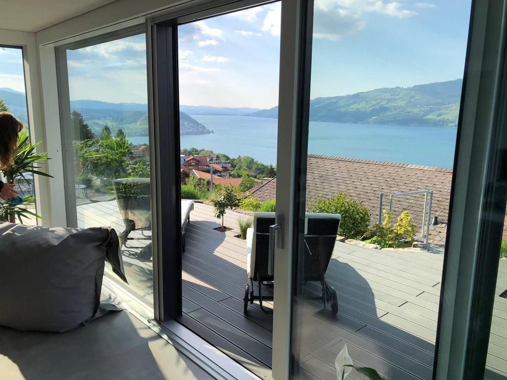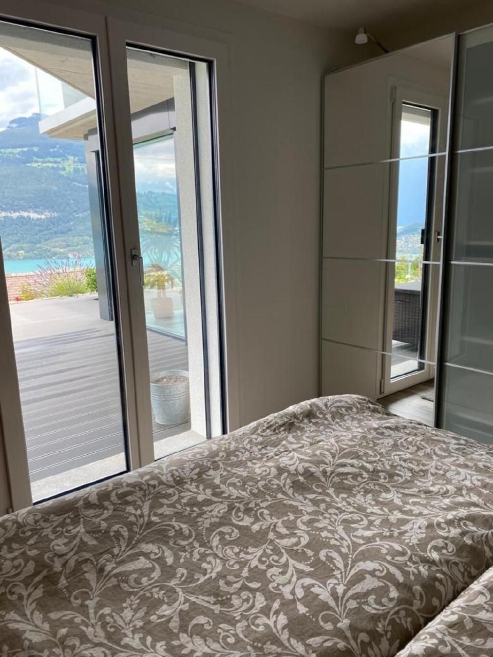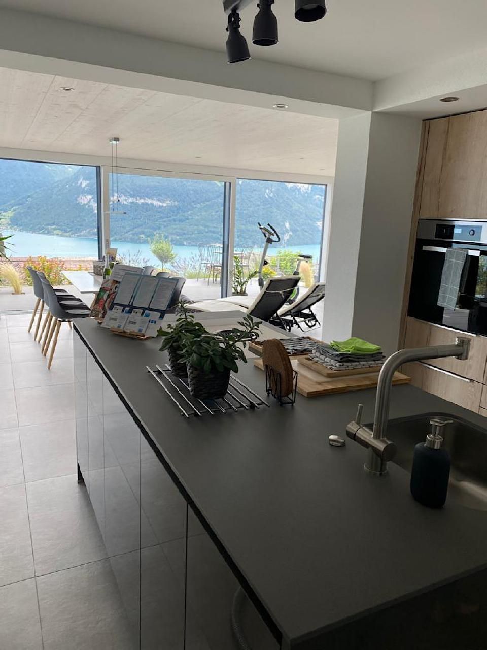 Das gemütliche und moderne Apartment mit Panoramasicht auf den Thunersee befindet sich im EG eines neu renovierten Ferienhauses.