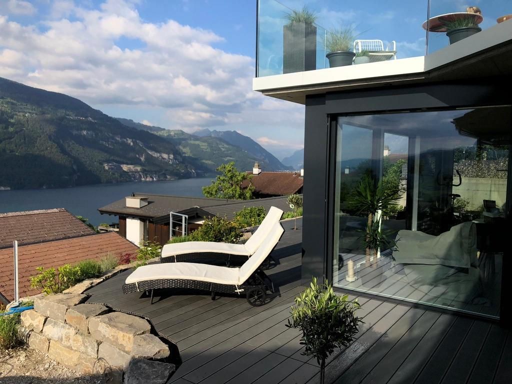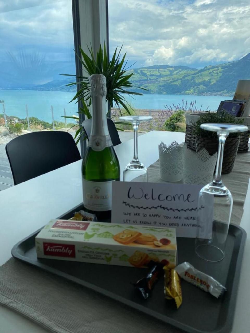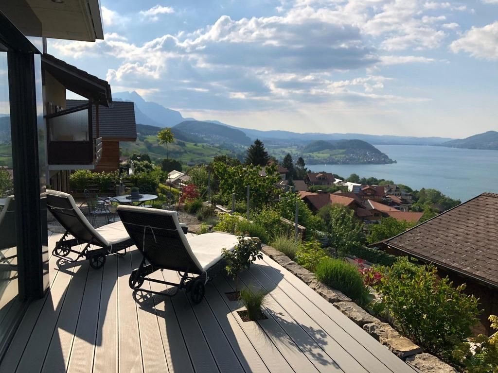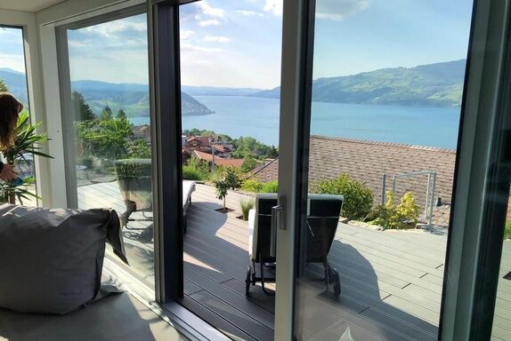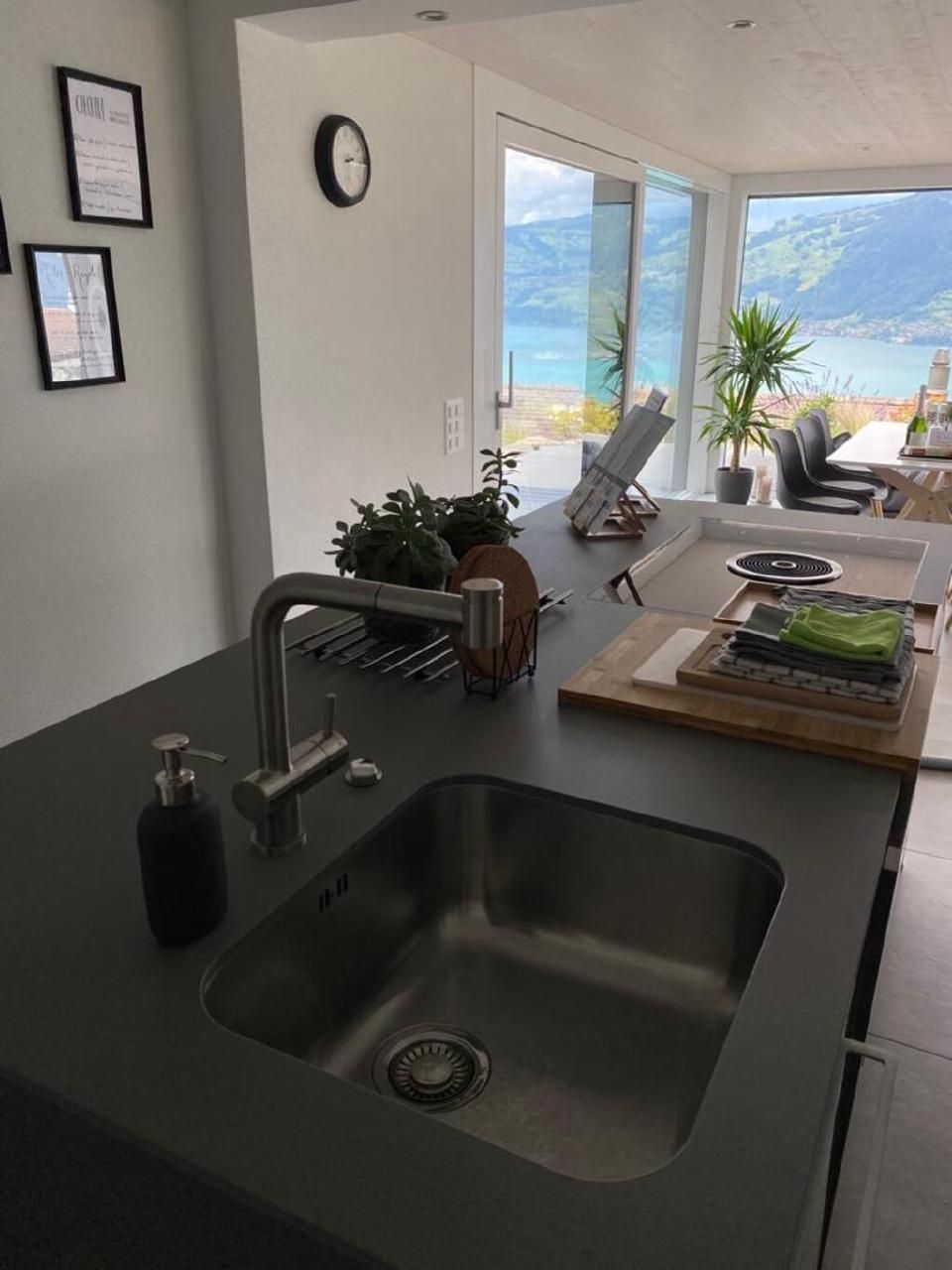 Das gemütliche und moderne Apartment mit Panoramasicht auf den Thunersee befindet sich im EG eines neu renovierten Ferienhauses.