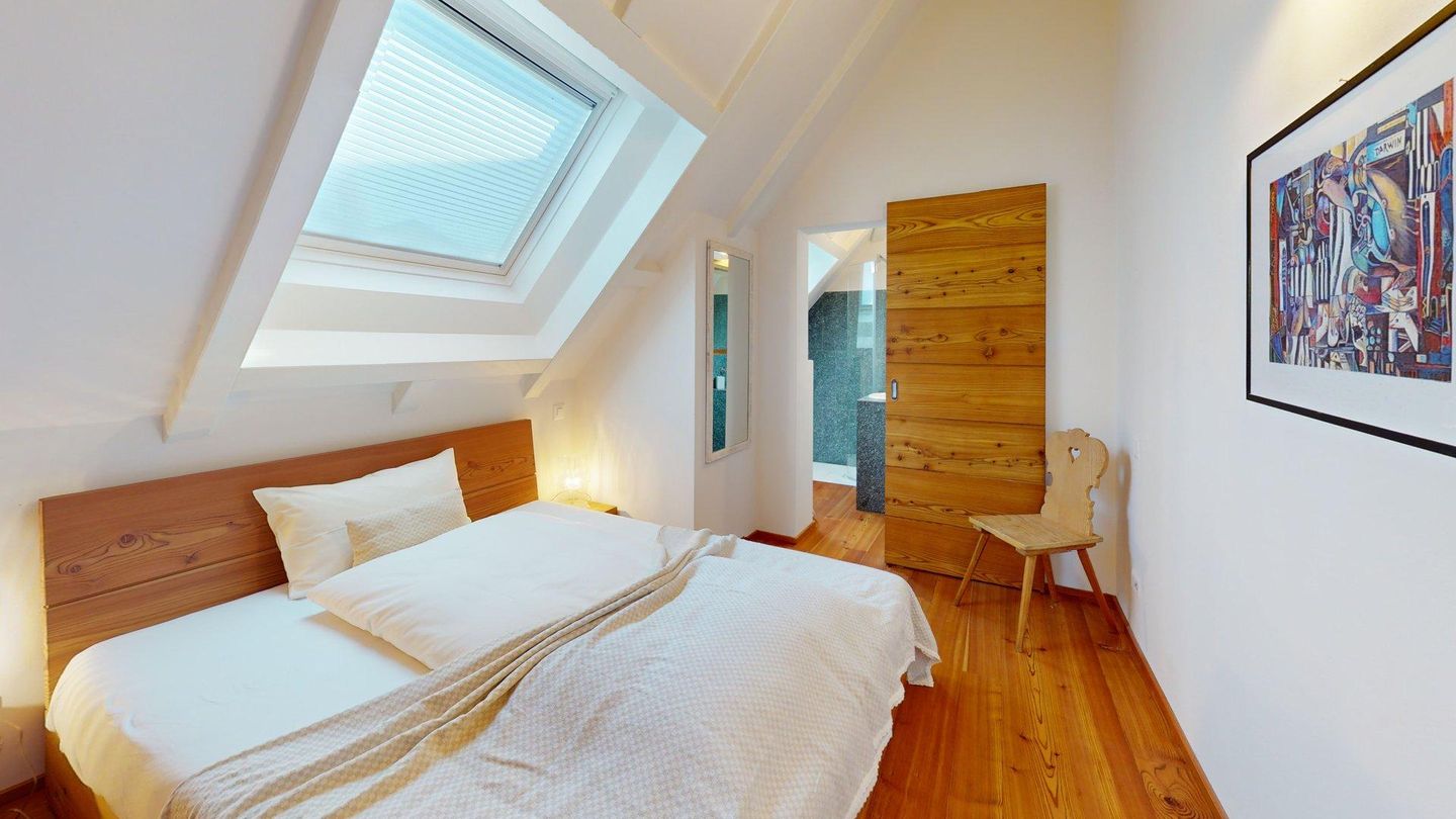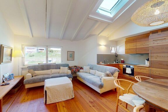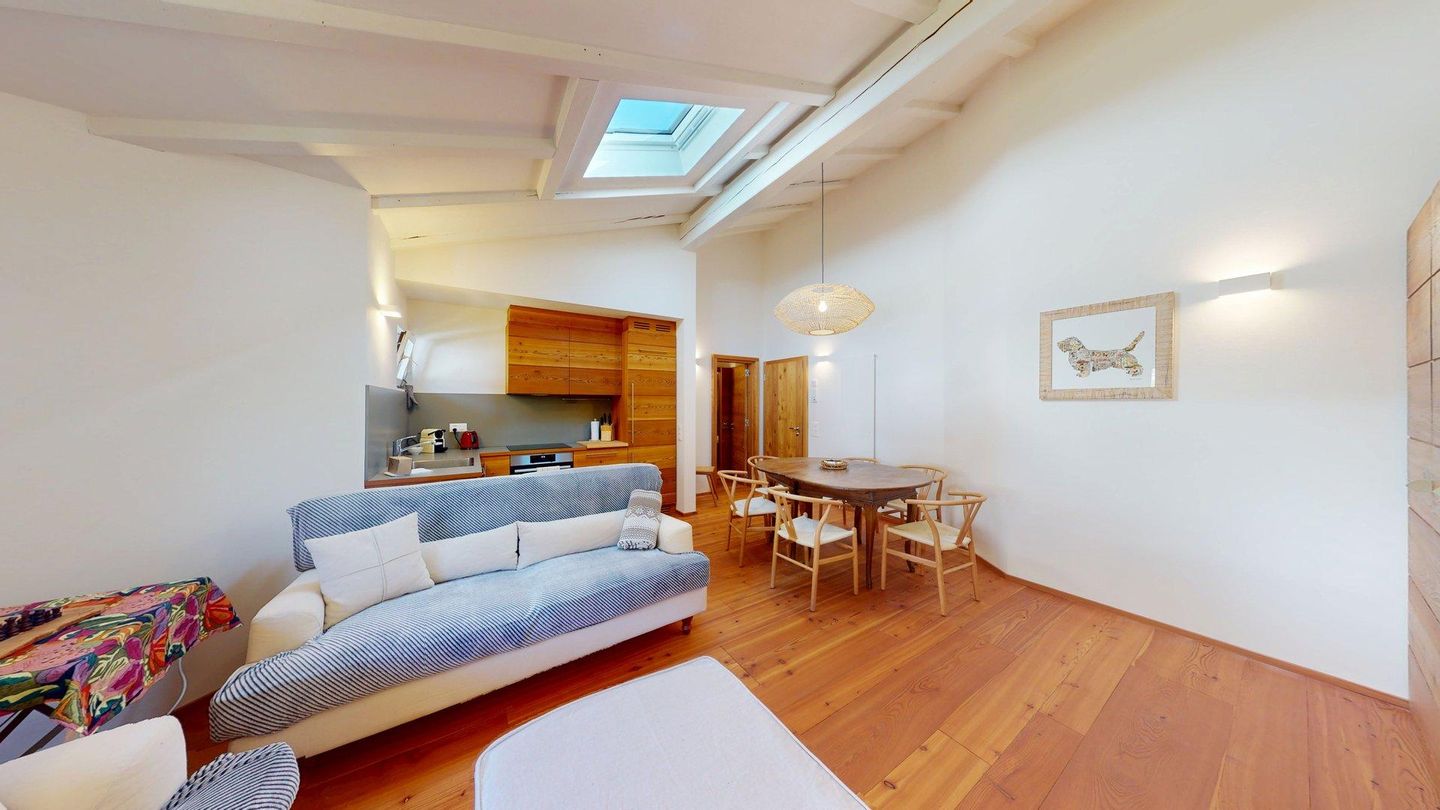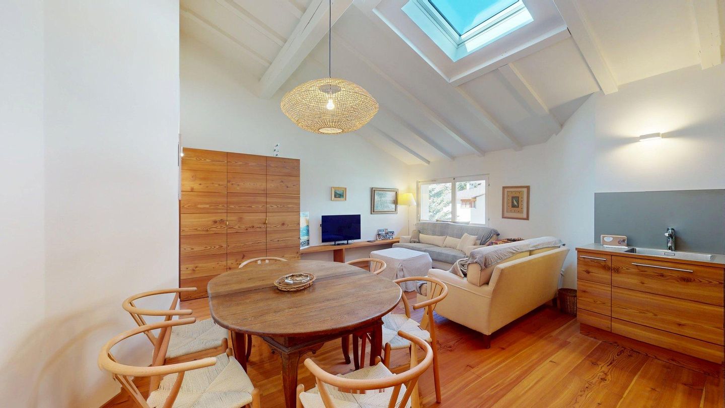 Neu renovierte, interessante 3.5 - Zimmerwohnung in Celerina im obersten Stock. Wohn- /Esszimmer mit offener, moderner Küche. 1 Schlafzimmer mit Doppelbett und Schreibtisch, 1 separates Schlafzimmer mit Doppelbett und en-suite Badezimmer mit DU/WC. 1 separates Badezimmer mit Bad/DU/WC/Bidet. 1 Garagenplatz. Bitte beachten Sie, dass dieses Wohnhaus keinen Aufzug hat.