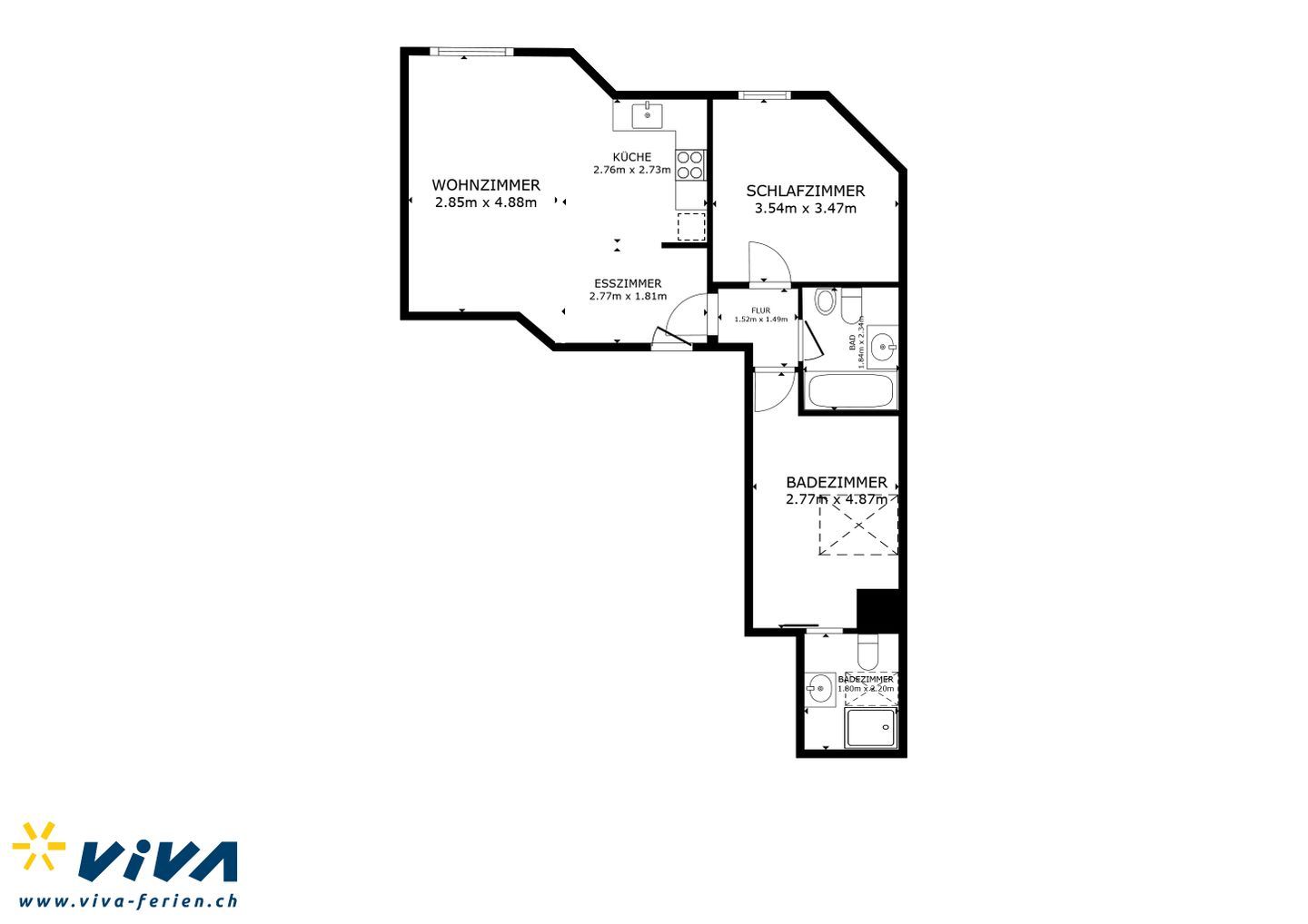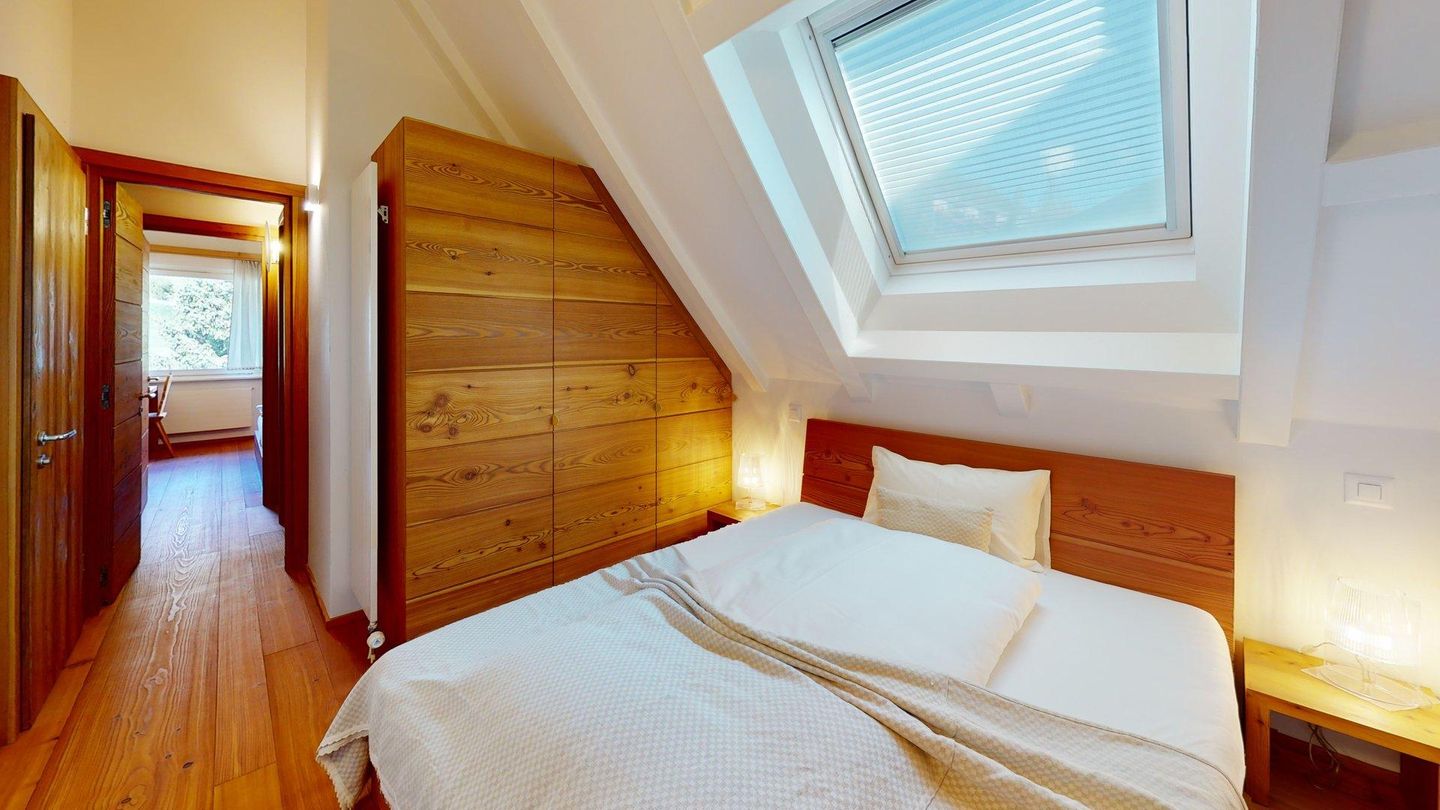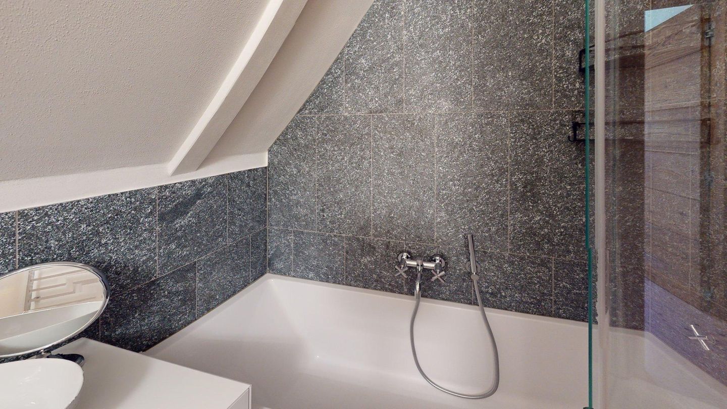 Neu renovierte, interessante 3.5 - Zimmerwohnung in Celerina im obersten Stock. Wohn- /Esszimmer mit offener, moderner Küche. 1 Schlafzimmer mit Doppelbett und Schreibtisch, 1 separates Schlafzimmer mit Doppelbett und en-suite Badezimmer mit DU/WC. 1 separates Badezimmer mit Bad/DU/WC/Bidet. 1 Garagenplatz. Bitte beachten Sie, dass dieses Wohnhaus keinen Aufzug hat.
