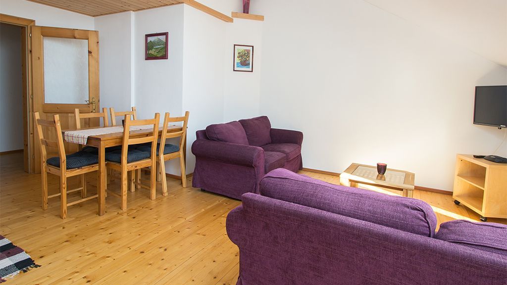 Diese Ferienwohnung befindet sich im Dachgeschoß unseres großen Bauernhofs. Neben zwei Schlafzimmern steht ein großzügiger Wohn- und Küchenbereich zur Verfügung. Die südseitig ausgerichteten Dachfenster sorgen den ganzen Tag für Sonnenschein. Auf der ostseitigen Terrasse lässt sich vorzüglich ein Frühstück in der Morgensonne einnehmen. Selbstverständlich stellen wir Ihnen für Ihre Jüngsten Gitterbetten zur Verfügung.