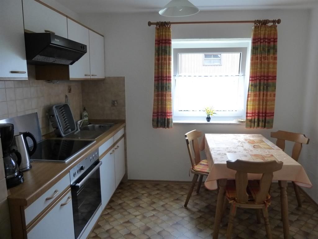 - separate Küche mit Herd und Backofen, Wasserkocher, Kaffeemaschine, Kühl-Gefrierschrank, Mikrowelle, Toster, Geschirr zum Kochen und Essen, Tisch und Stühlen,