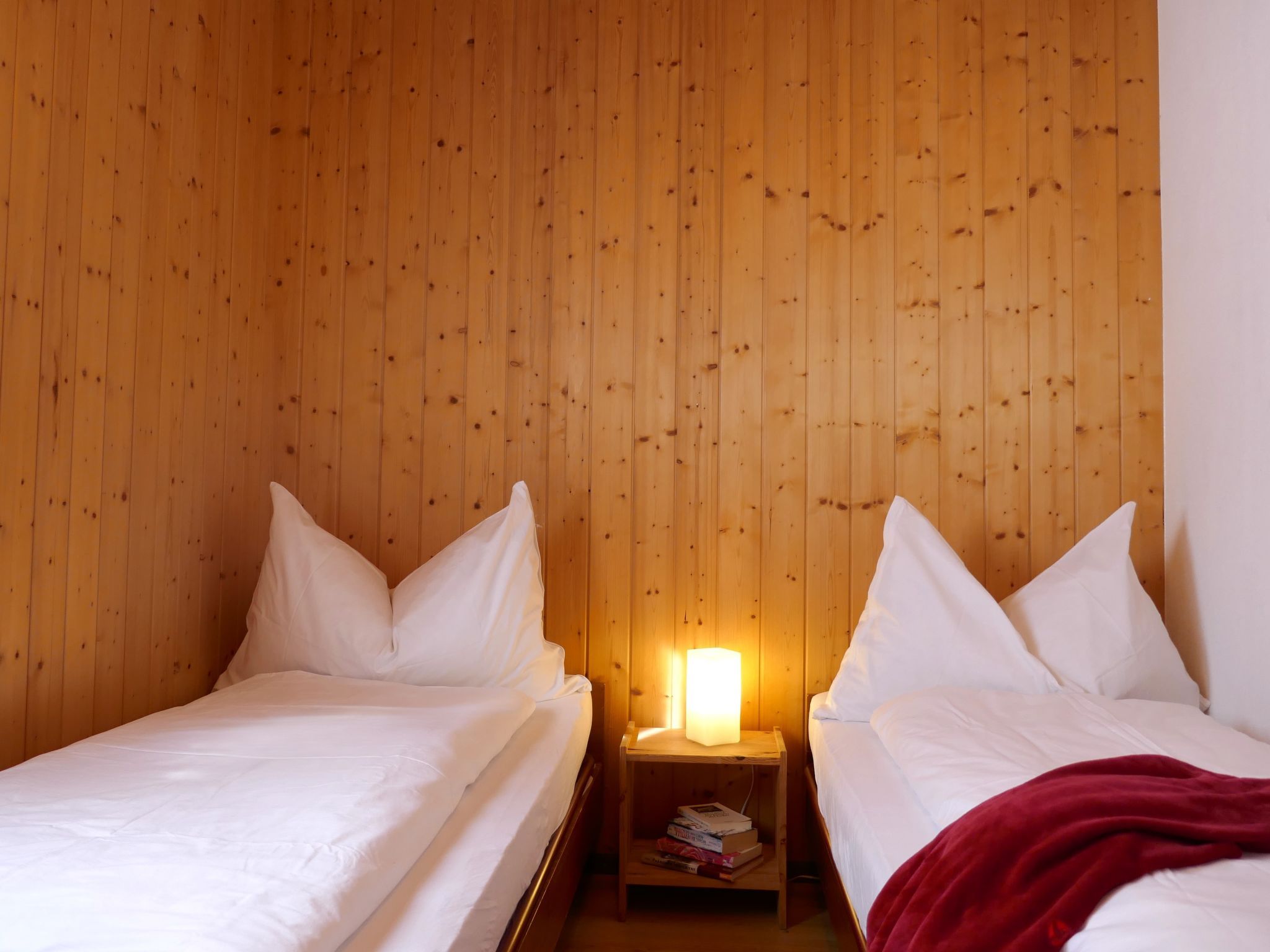 Prou Forestside, 3-Zimmer-Wohnung 59 m2. Geräumig und hell, rustikal und gemütlich eingerichtet: offenes Wohn-/Esszimmer mit Esstisch und Sat-TV (Flachbildschirm), Stereoanlage. Ausgang zum Garten. 1 Doppelzimmer mit 1 Doppelbett (1 x 160 cm, Länge 200 cm). 1 Zimmer mit 2 Betten (80 cm, Länge 200 cm). Offene Küche (Backofen, Geschirrspüler, 4 Induktionskochplatten, Toaster, Wasserkocher, Mikrowelle, elektrische Kaffeemaschine, Kapseln für die Kaffeemaschine (Dolce Gusto) extra, Racletteofen, Fondue Set (Käse)). Dusche/WC. E-Heizung, Boiler (120 Liter). Garten. Liegestühle (2), Sitzplatz. Schöne Sicht auf die Berge, die Ortschaft und den Wald. Zur Verfügung: Waschmaschine, Wäschetrockner, Kinderhochstuhl, Babybett bis 2 Jahre (extra), Haartrockner. Internet (WLAN). Bitte beachten: Nichtraucher-Haus. Maximal 1 Haustier/Hund erlaubt. Eigener Eingang. Keine interne Verbindung zwischen den separaten Wohneinheiten. NL-