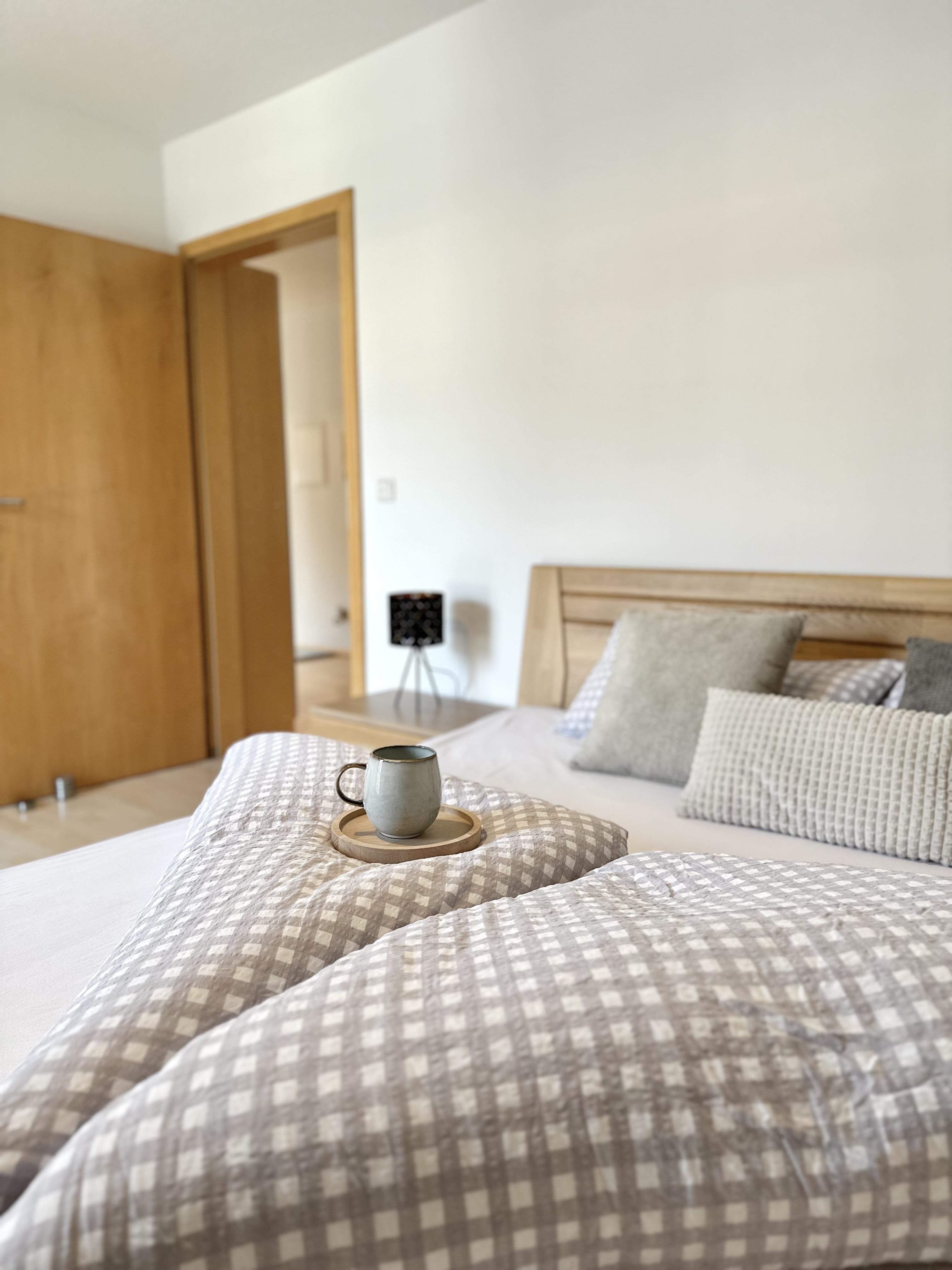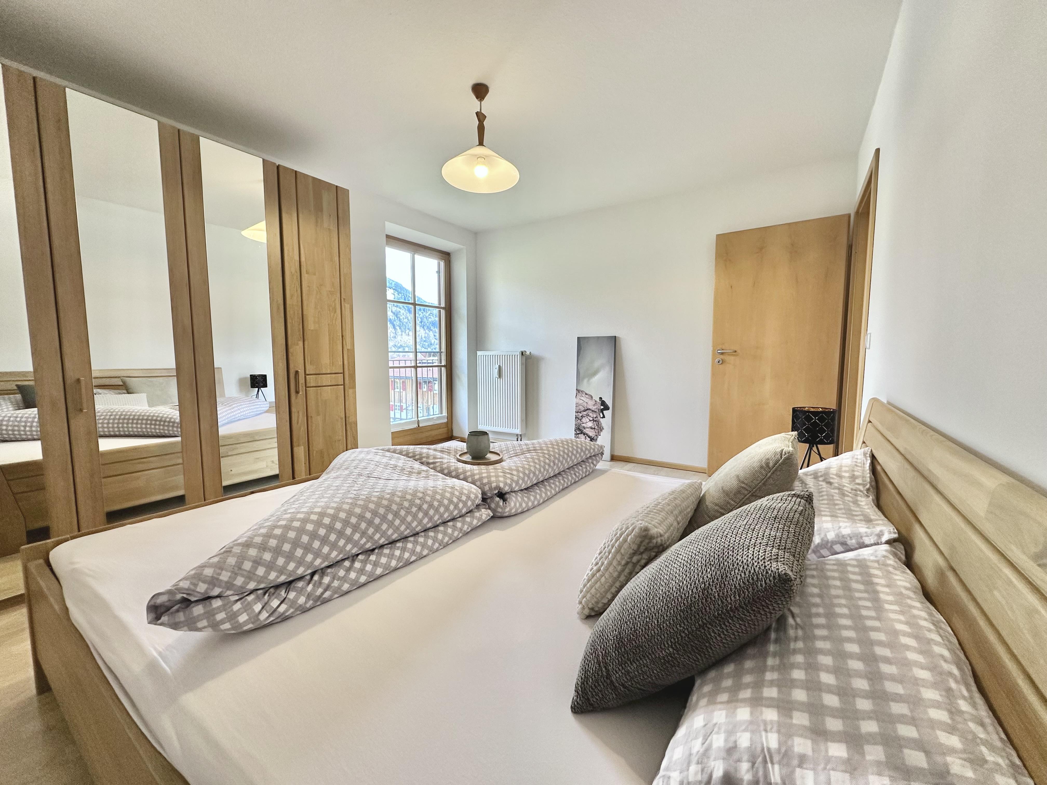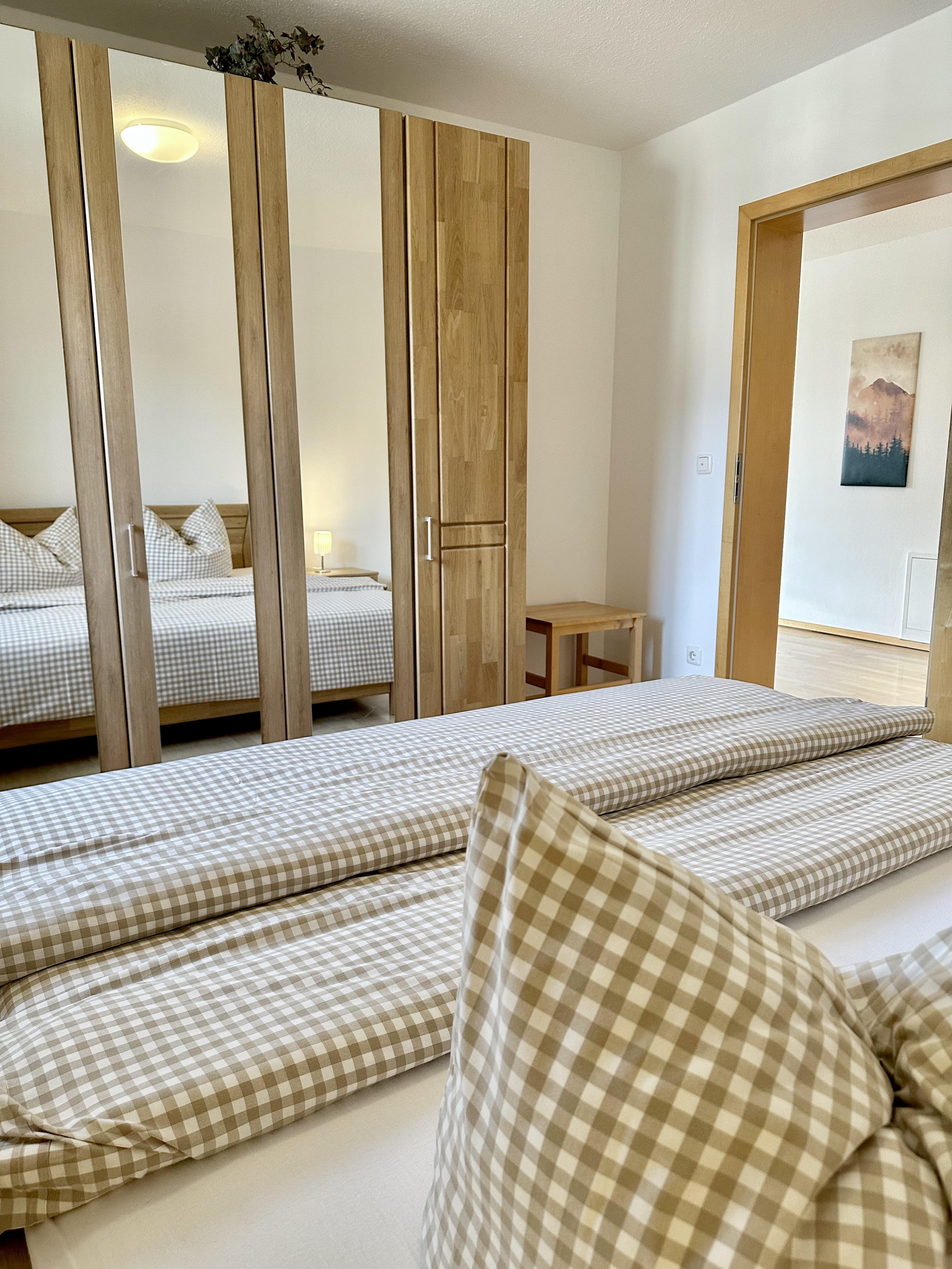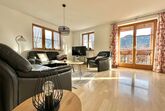 Hochwertige, sehr helle und sonnige, großzügige Ferienwohnung, ausgestattet mit einem stilvollem Wohnzimmer, 3 getrennten Schlafräumen, Küchezeile, Bad mit Wanne / sep. Dusche, WC, SAT-TV. Südbalkon mit freiem, umfassenden Bergblick; Bauerngarten und Liegewiese unter alten Apfelbäumen.
