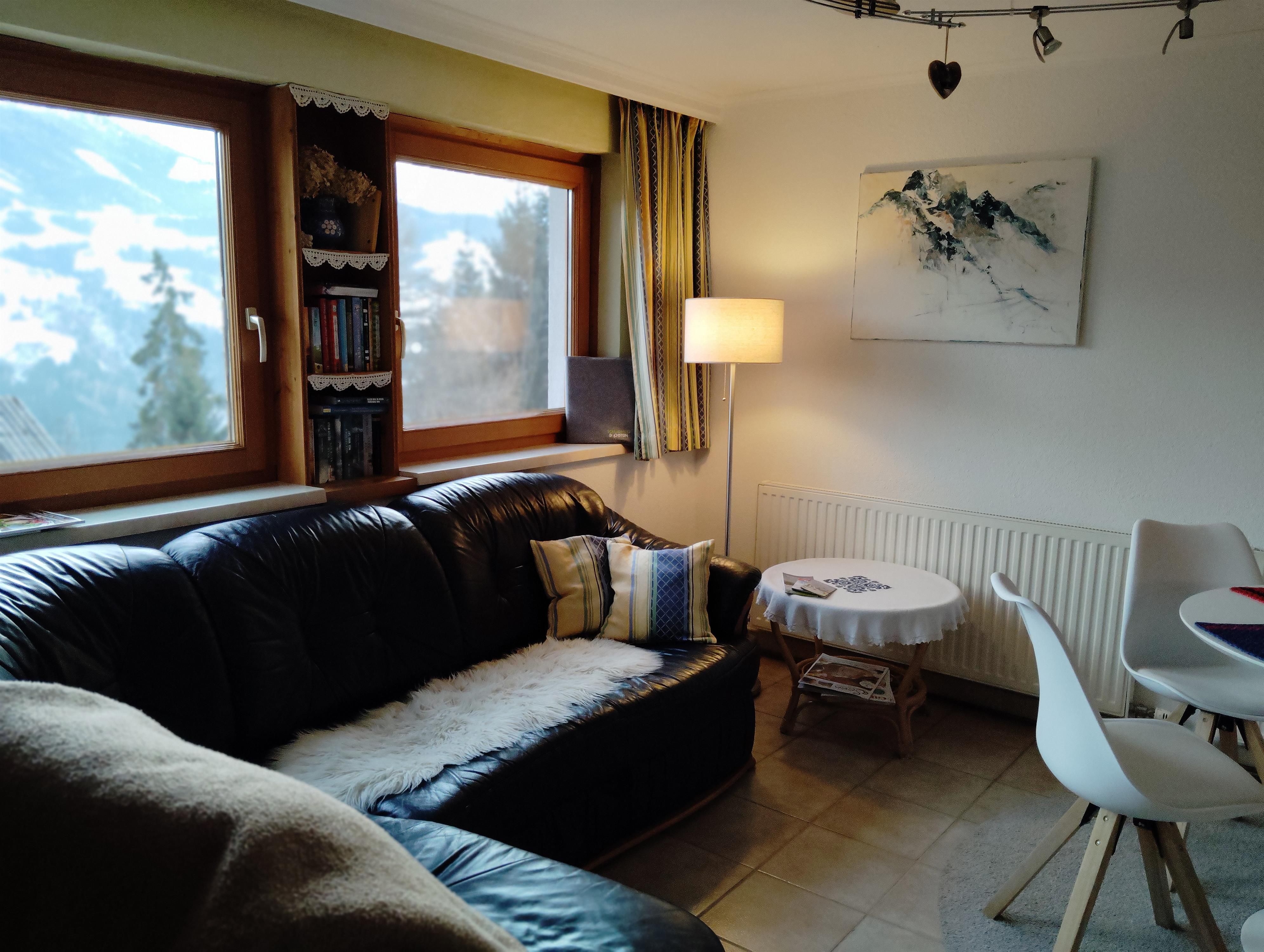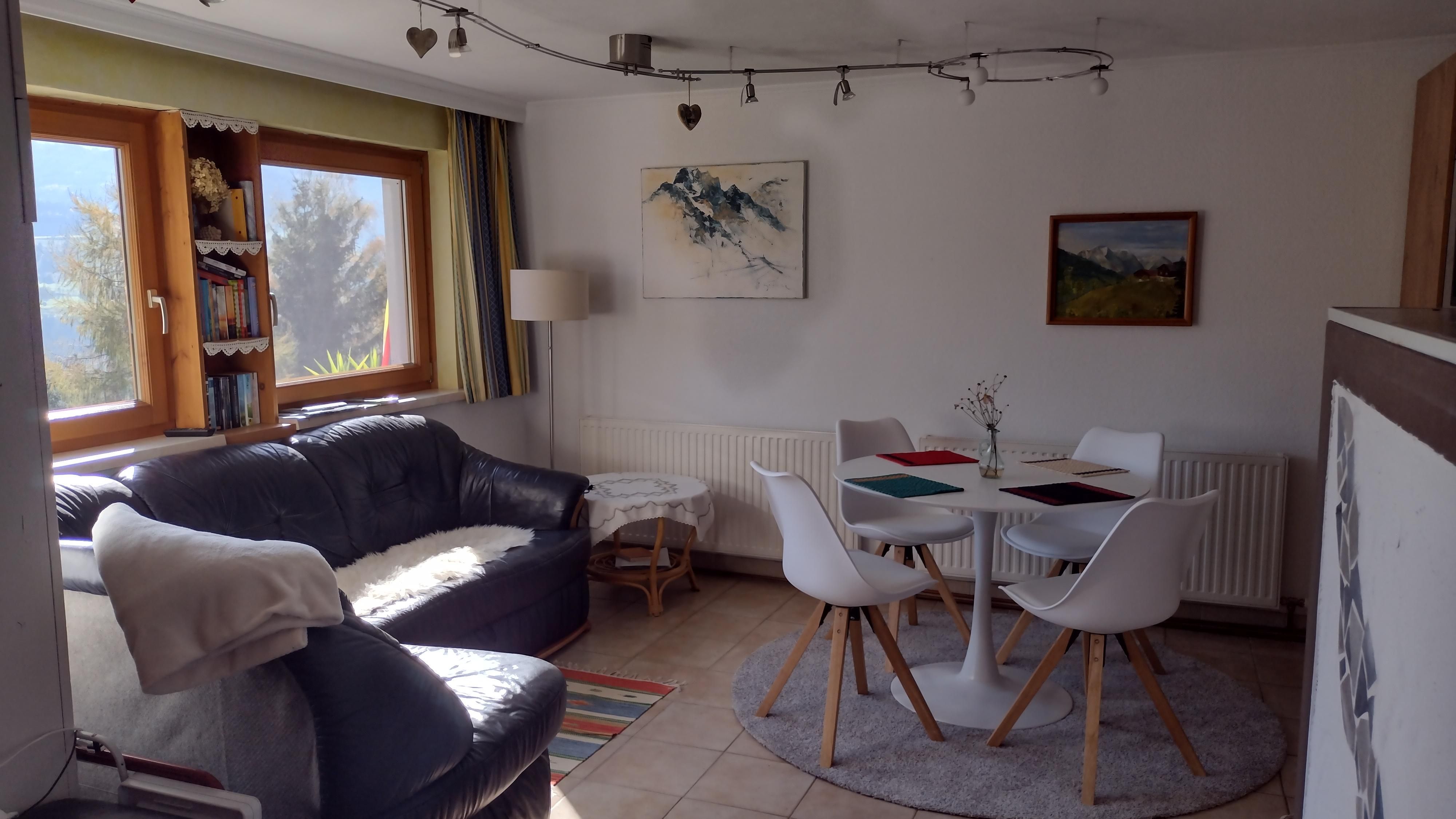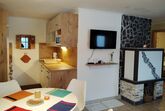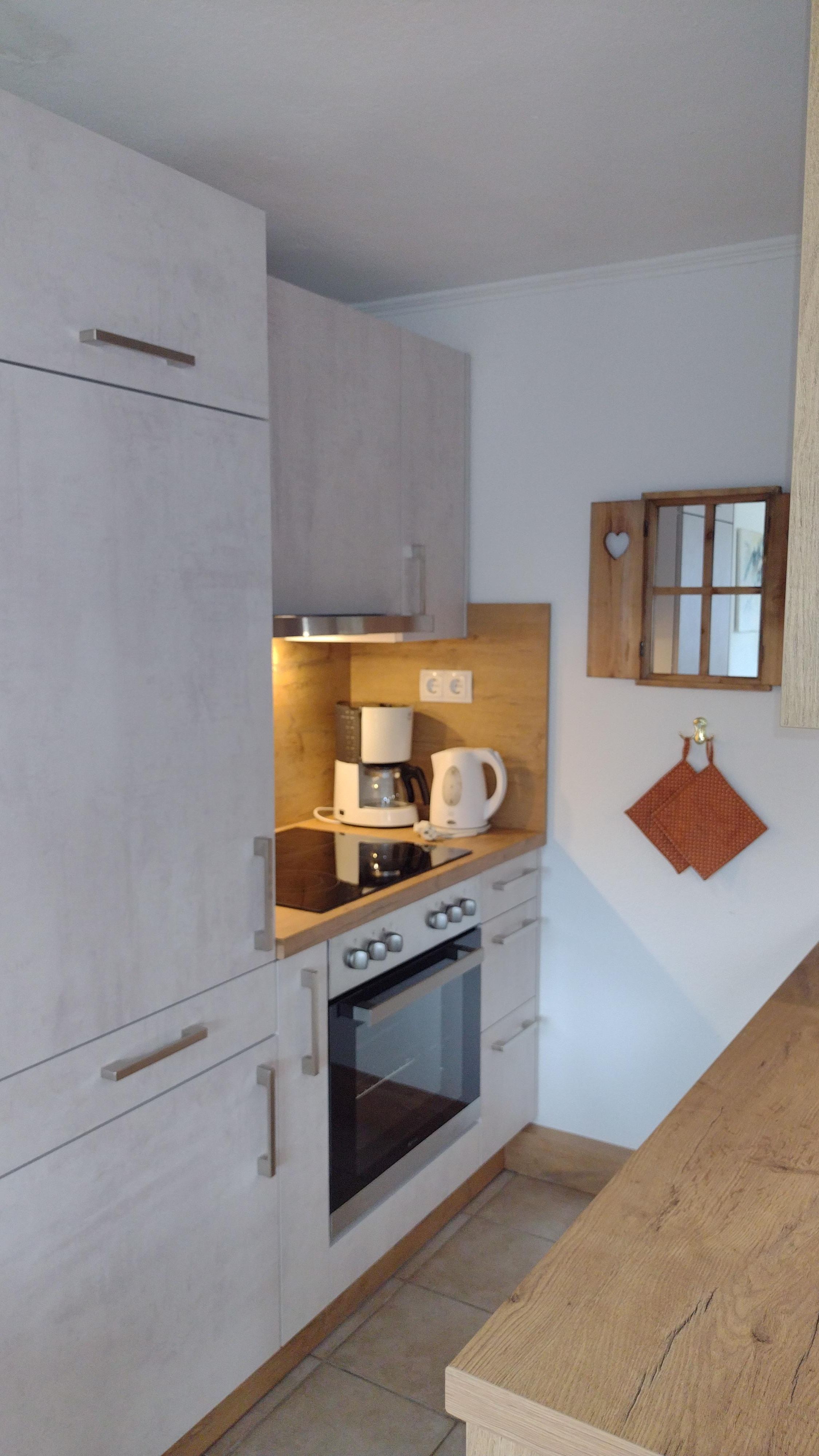 • Wohnküche mit E-Herd, Backofen, Mikrowelle, Kühlschrank, Toaster, Kaffeemaschine, Wasserkocher, reichlich Koch- und Essgeschirr, Esstisch mit 4 Stühlen, gemütlicher Kachelofen (sonst Zentralheizung), ausziehbarer Couch, Sat-TV, einige Spiele und Lesematerial mit aktuellen Prospekten aus der Region.