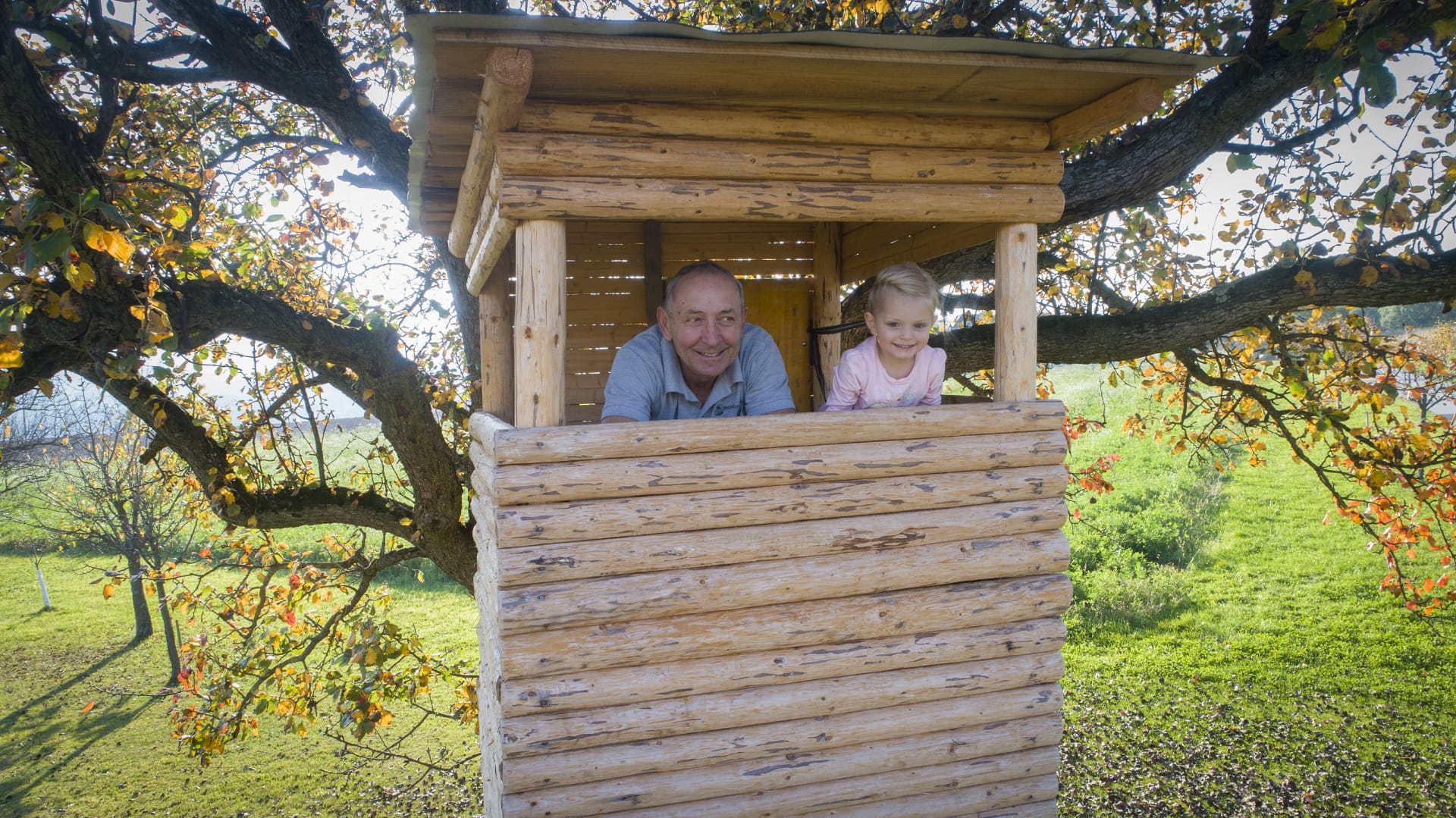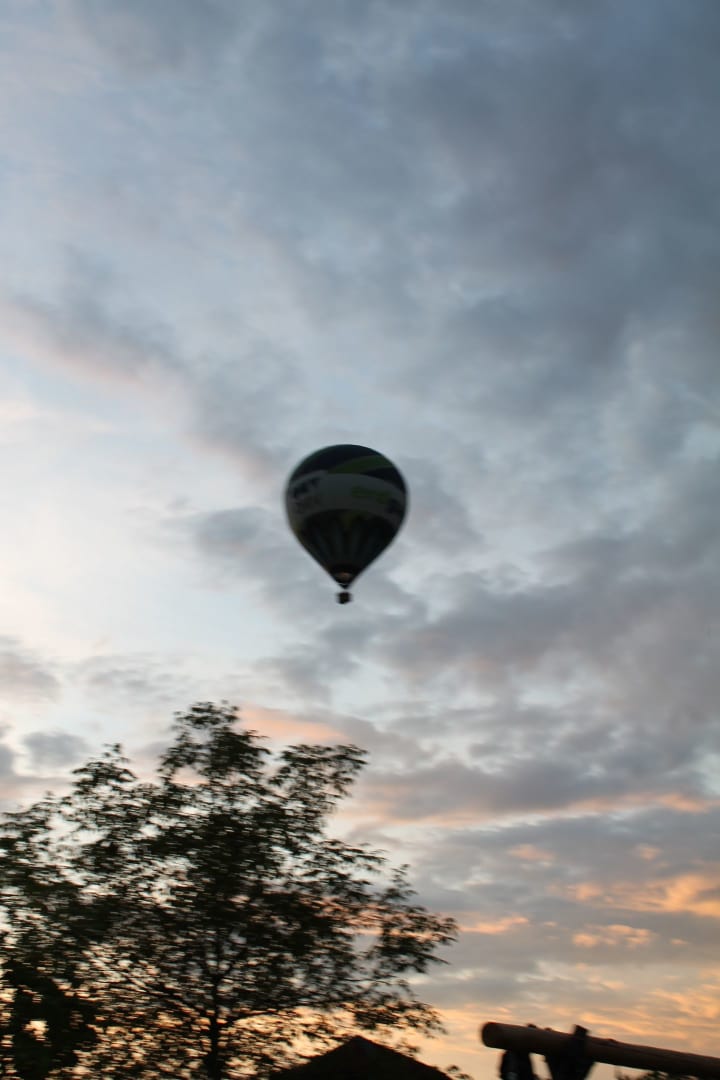 Der Lieblingsplatz der Familie ist unterm Hirschbirnbaum, wo wir oft das bunte Treiben der Heißluftballone beobachten.