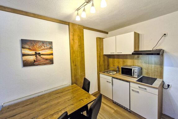 Apart Michelle, 2-Zimmer-Wohnung 35 m2, unteres Geschoss. Zweckmässig eingerichtet: 1 Zimmer mit 1 Diwanbett und 1 Doppelbett. Wohn-/Schlafzimmer mit 1 Doppeldiwanbett, Esstisch, Sat-TV und Internationale TV-Sender (Flachbildschirm). Offene Küche (2 Kochplatten, Geschirrspüler, Wasserkocher, Mikrowelle, elektrische Kaffeemaschine). Dusche/WC. Parkettboden. Kleiner Gartensitzplatz. Terrassenmöbel, Gartengrill. Zur Verfügung: Internet (WLAN, gratis). Parkplatz (1 Auto). Maximal 1 Haustier/Hund erlaubt.