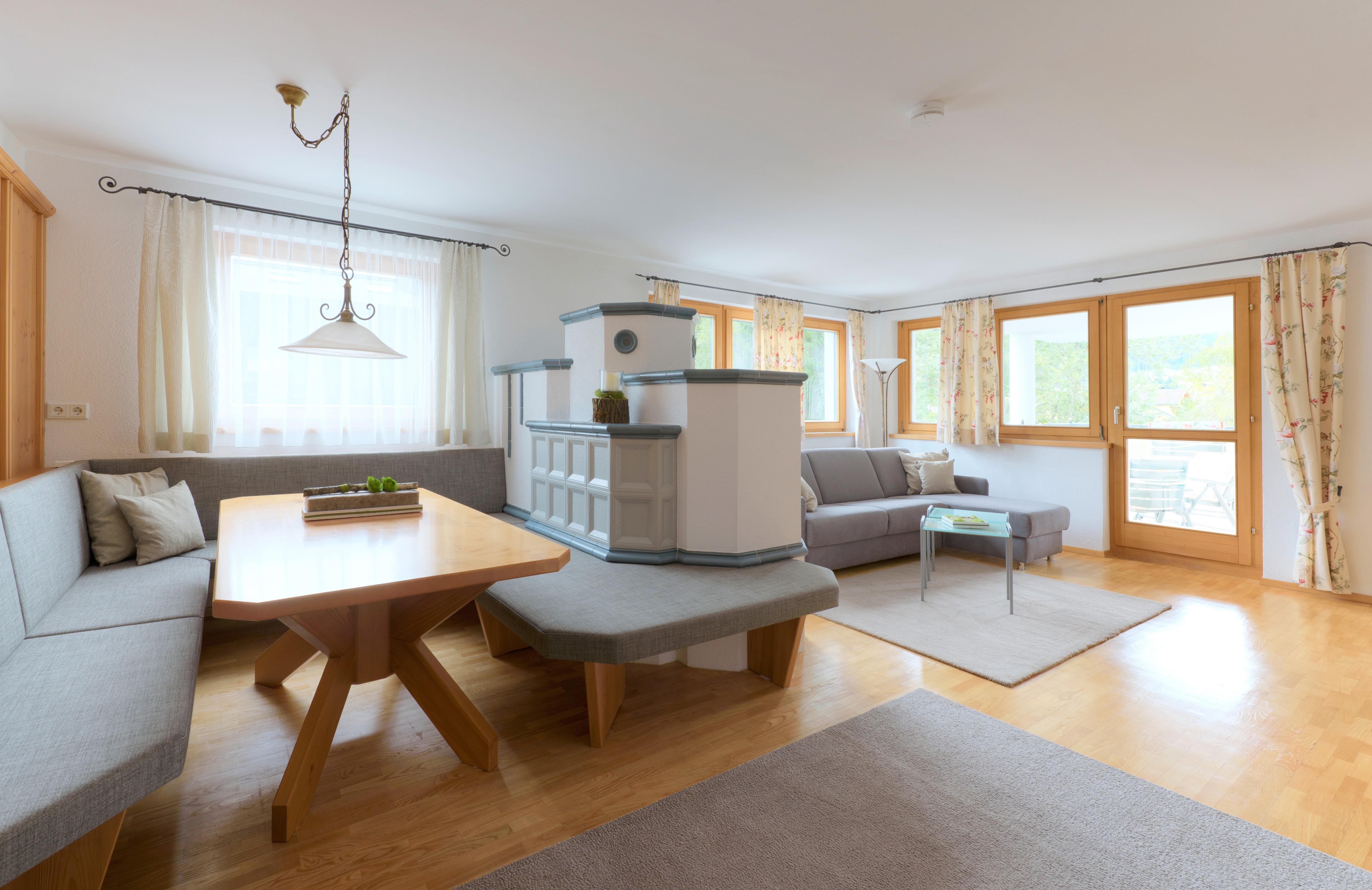 Dieses Apartment befindet sich im 1. Stock. Eine große Terrasse mit traumhaften Blick auf die Hohe Munde . Es ist ca. 80m2 groß und für 2 - 4 Personen geeignet. Das Appartement verfügt über ein gemütliches Wohnzimmer mit einer Ausziehcouch, Essbereich mit Kachelofen, Küche mit Geschirrspüler, ein getrenntes Schlafzimmer, Bad mit Badewanne, Dusche und WC.