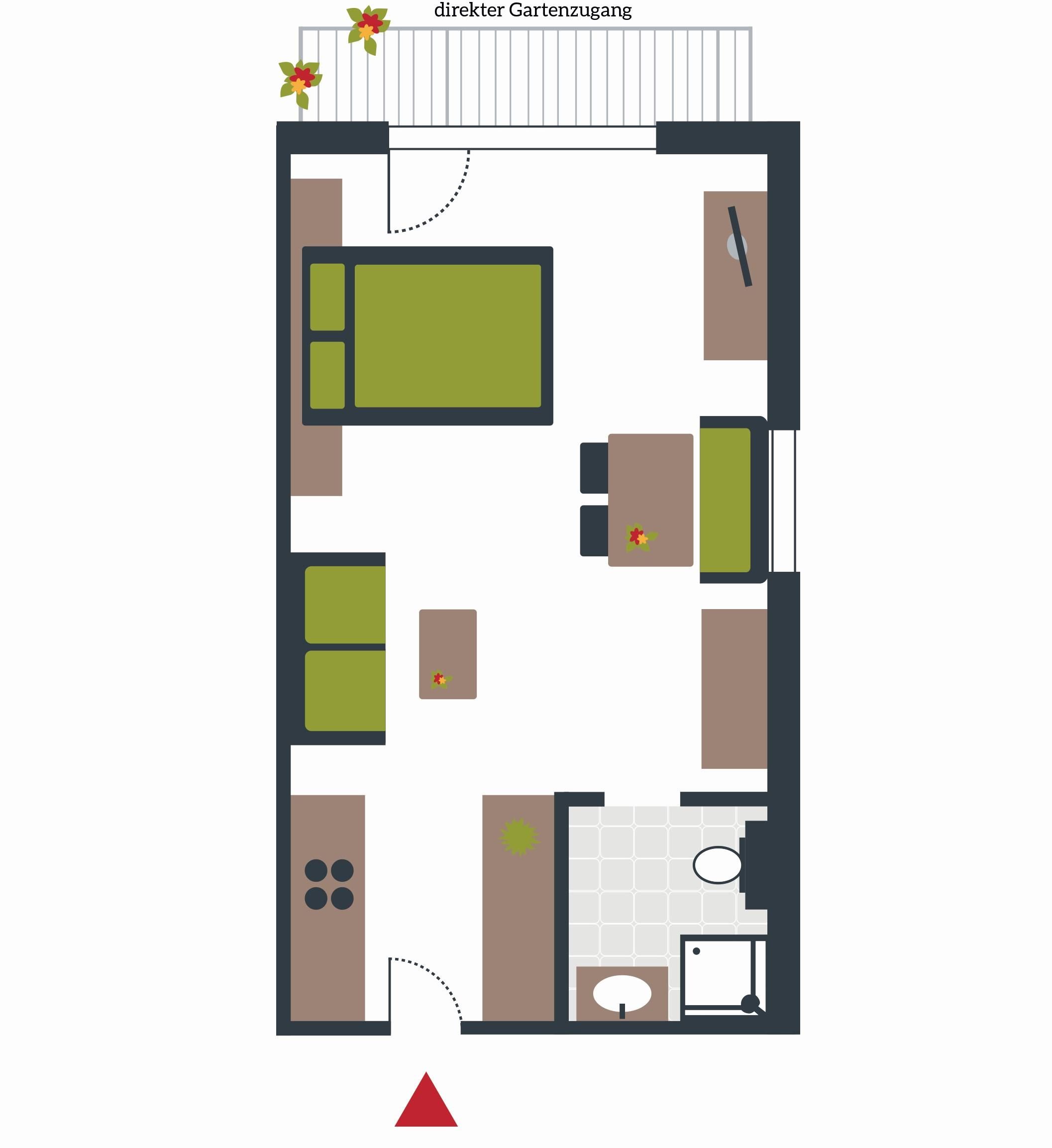 Dieses Apartment ist ca. 35 m² groß und trotzdem ideal für 2 Personen und sehr geräumig ausgestattet, es verfügt über Wohnschlafzimmer, Küche, Dusche, WC, direkter Gartenzugang, Safe, TV, Radio, Telefon, Handtücher, Bettwäsche, Geschirr, usw..