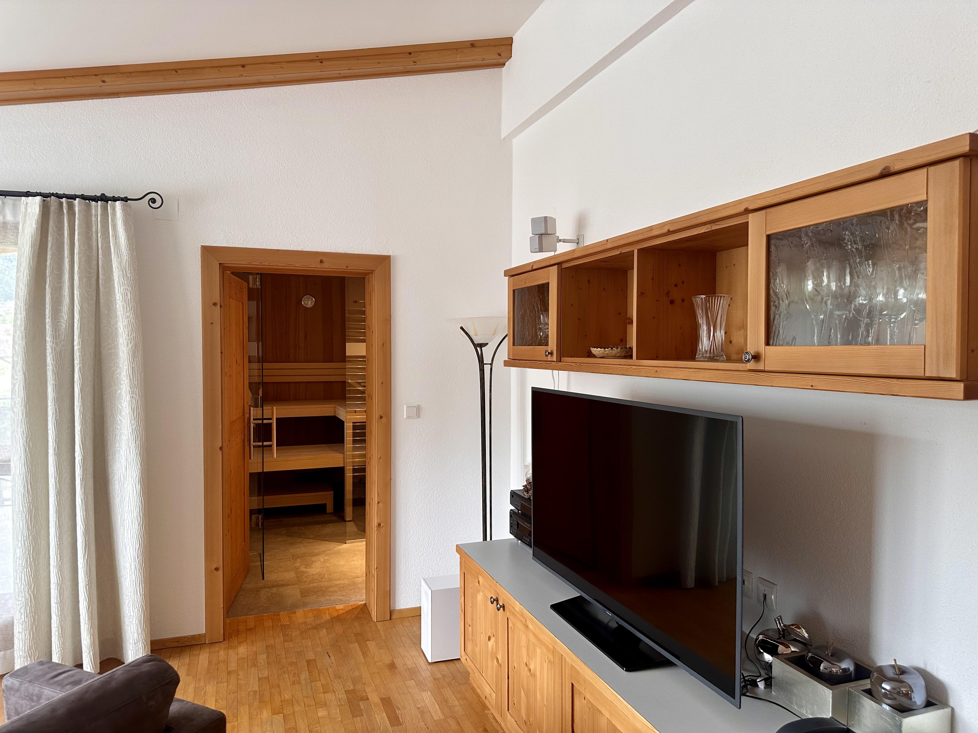 es besteht aus 2 getrennten Schlafräumen mit Safe, 1 gemütlicher Wohnraum, 1 Essraum mit Kachelofen, 1 Küche mit Geschirrspüler, 2 Bäder , 1 große Terasse, usw...