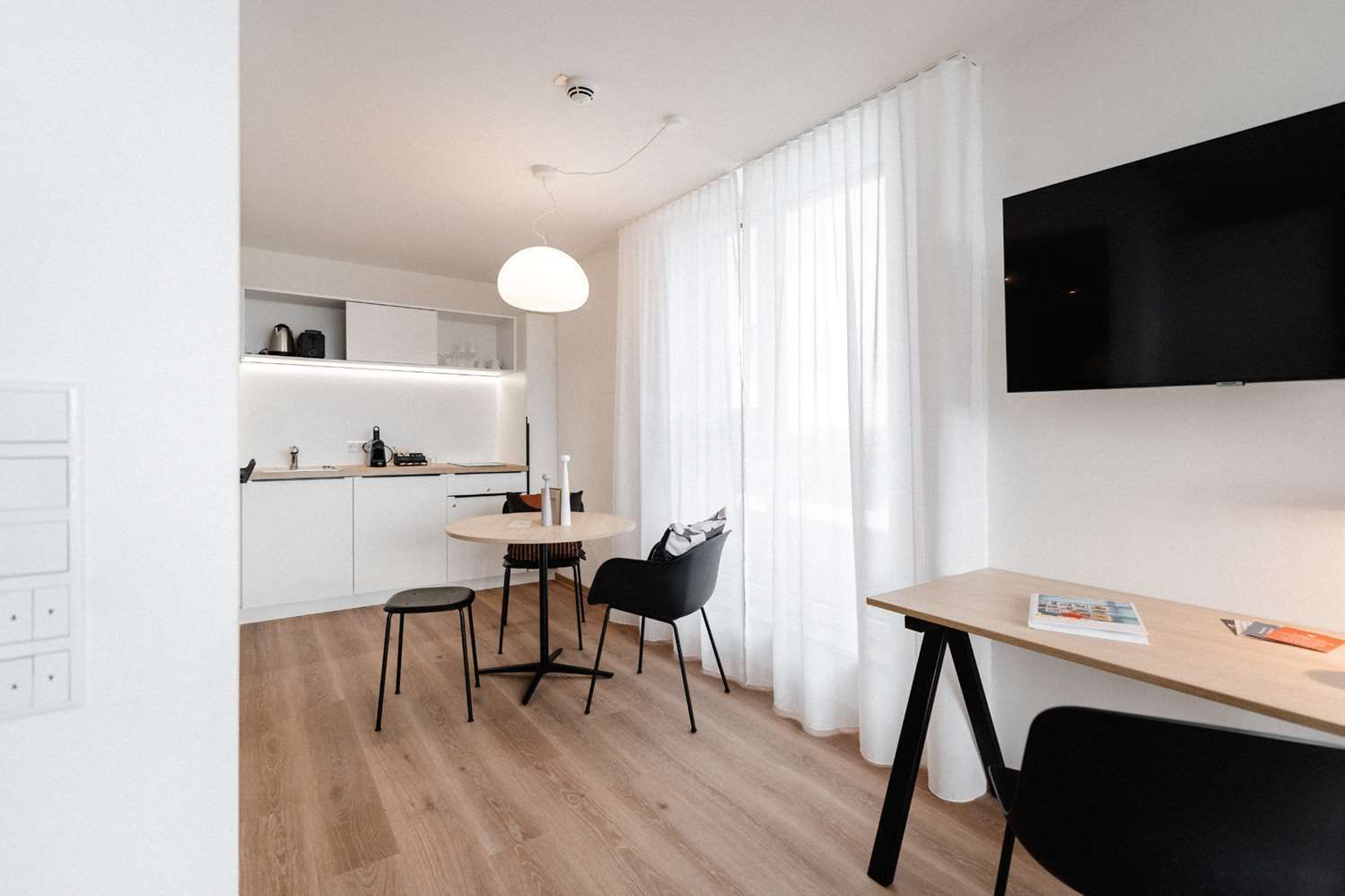 Unsere Apartments verfügen über ein privates Bad mit Dusche und WC, das mit luxuriösen Kosmetikartikeln ausgestattet ist. Die Küche ist modern eingerichtet und bietet ein Cerankochfeld, eine Mikrowelle, einen Wasserkocher, einen Toaster sowie eine Kaffeemaschine und Zubehör. Jede Unterkunft ist mit einem Arbeitsbereich ausgestattet und bietet zusätzliche Annehmlichkeiten wie einen Smart-TV und Bluetooth-Speaker, um sowohl im Home-Office als auch in der Freizeit höchsten Komfort zu gewährleisten.