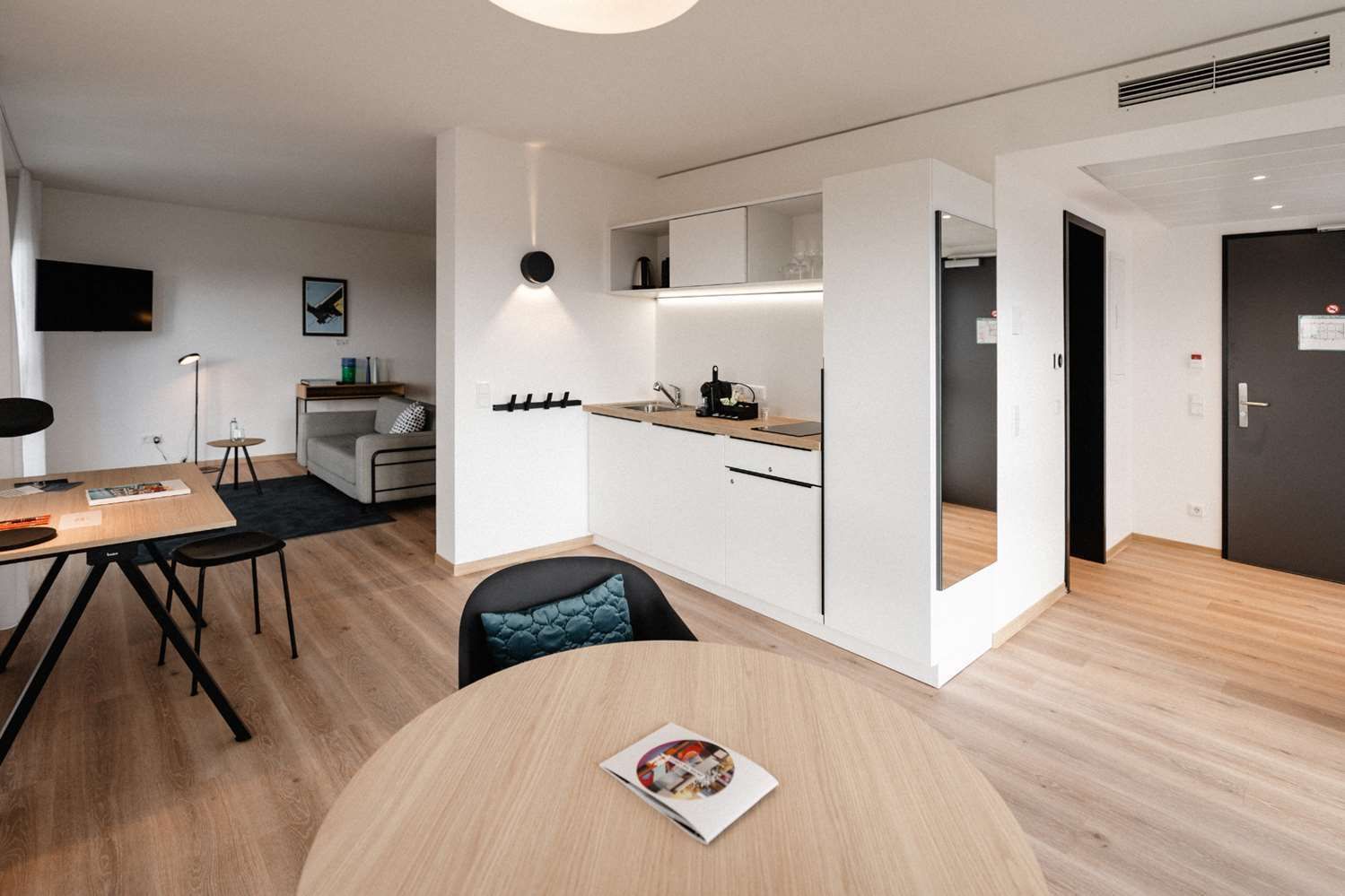 Herzlich willkommen im Aparthotel the place in Herzogenaurach bei Nürnberg! Unsere 104 modernen Serviced Apartments in verschiedenen Größen bieten Langzeit- und Kurzzeitgästen sowie Freizeit- und Business-Reisenden das ideale Ambiente für eine ausgewogene Work-Life-Balance. Mit dem exklusiven Deli-Boutique-Konzept the store, großzügigen Coworking-Flächen und Multifunktionsräumen sowie einem weitläufigen, begrünten Vorplatz wird the place zum neuen Treffpunkt im Zentrum des Stadtteils Herzo Base.