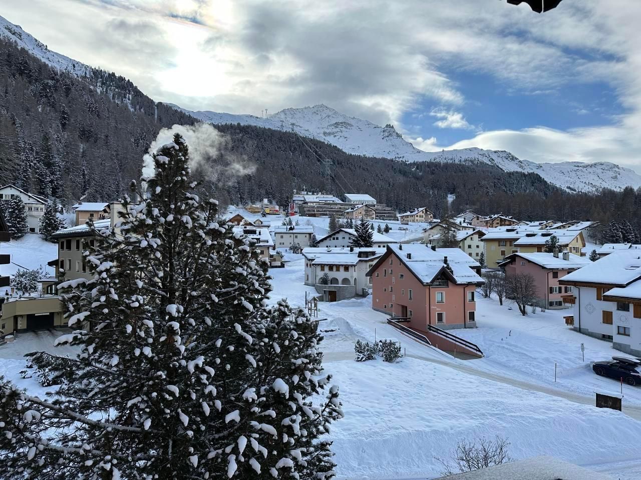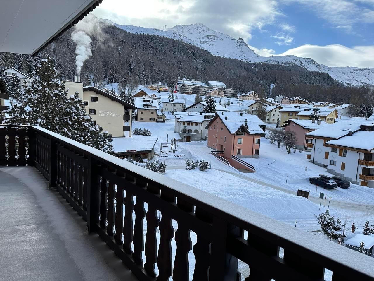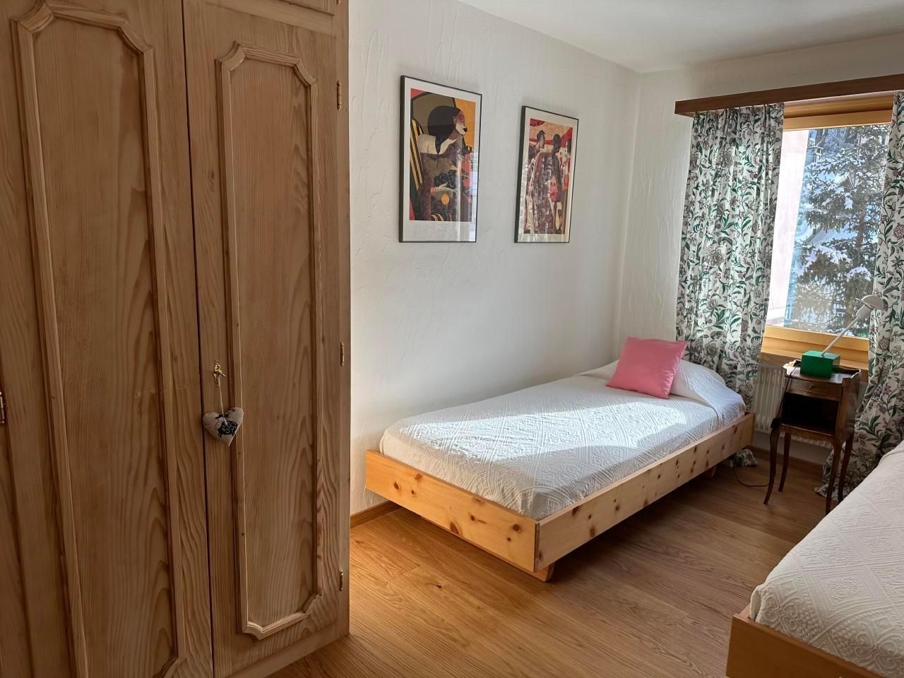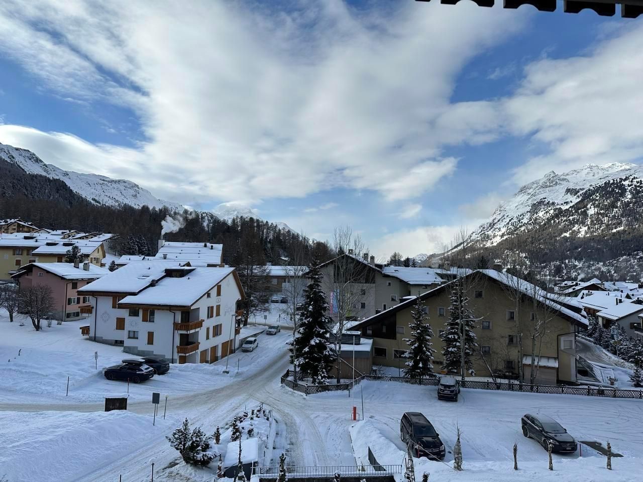 Schöne 4.5-Zimmerwohnung im 3 Stock (95m2) mit Balkon und schöner Aussicht gegen den See von Silvaplana und Julier. Grosses Wohn-/Esszimmer mit Arvenessecke, 1 Doppelschlafzimmer, 1 Zimmer mit 2 Betten, Bad mit Badewanne, Bidé und WC. Zweites Bad mit Dusche und WC. Küche mit Durchreiche zum Esstisch. Waschmaschine/Tumbler im Haus. Grosses Hallenbad und Sauna im Haus. Haustiere nicht erlaubt. Nichtraucherwohnung.