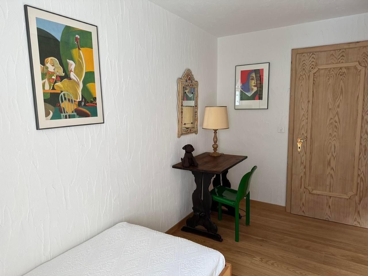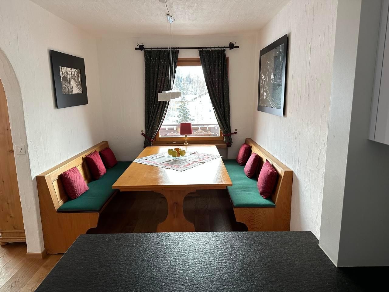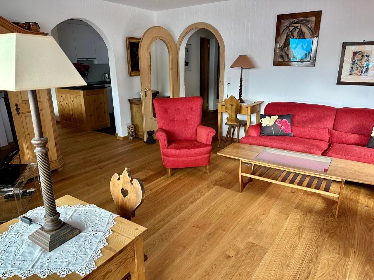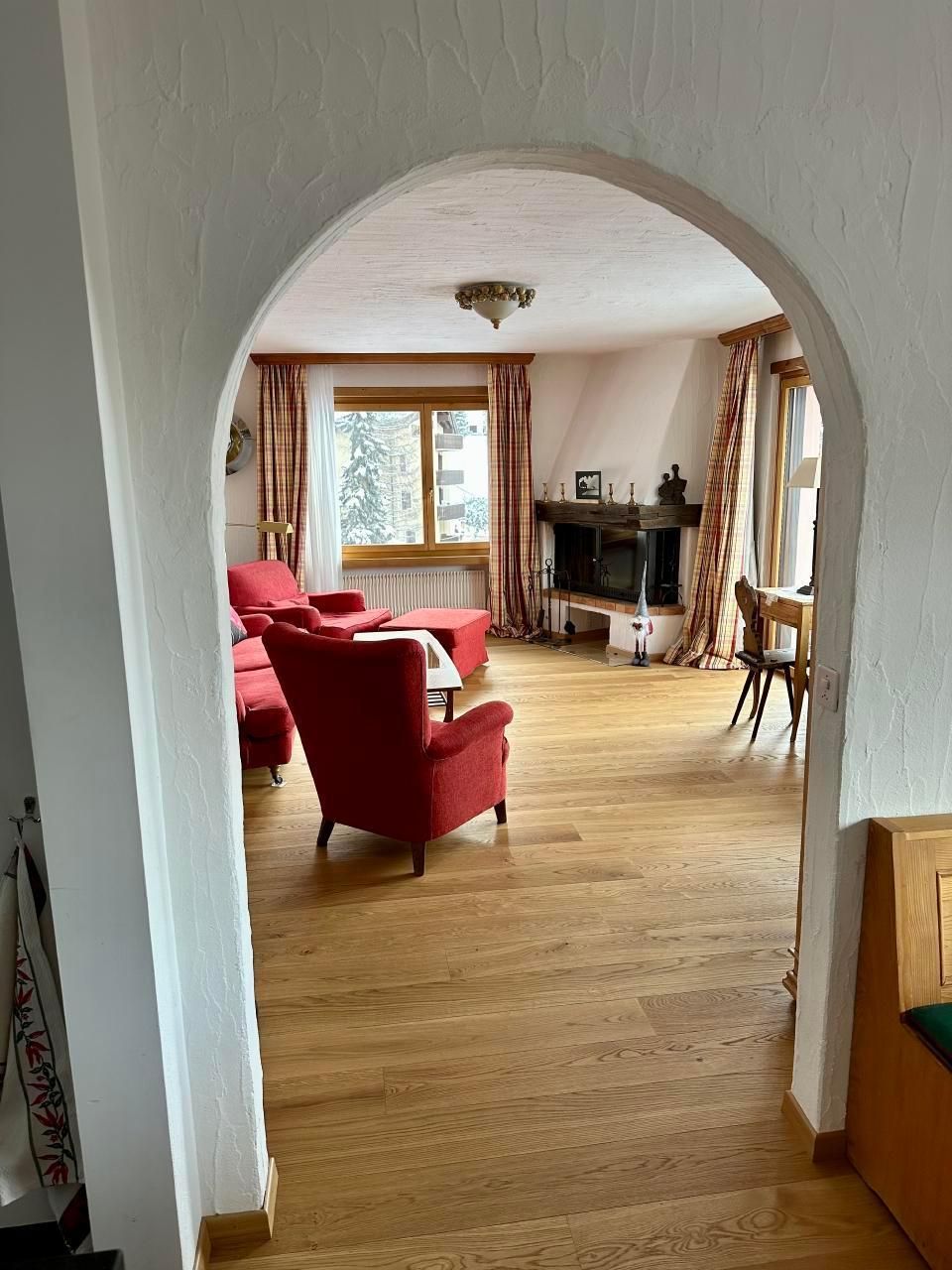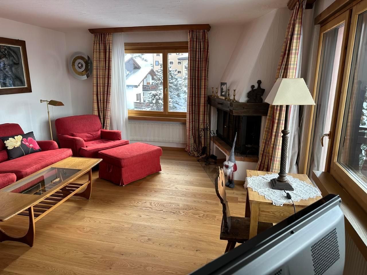 Schöne 4.5-Zimmerwohnung im 3 Stock (95m2) mit Balkon und schöner Aussicht gegen den See von Silvaplana und Julier. Grosses Wohn-/Esszimmer mit Arvenessecke, 1 Doppelschlafzimmer, 1 Zimmer mit 2 Betten, Bad mit Badewanne, Bidé und WC. Zweites Bad mit Dusche und WC. Küche mit Durchreiche zum Esstisch. Waschmaschine/Tumbler im Haus. Grosses Hallenbad und Sauna im Haus. Haustiere nicht erlaubt. Nichtraucherwohnung.