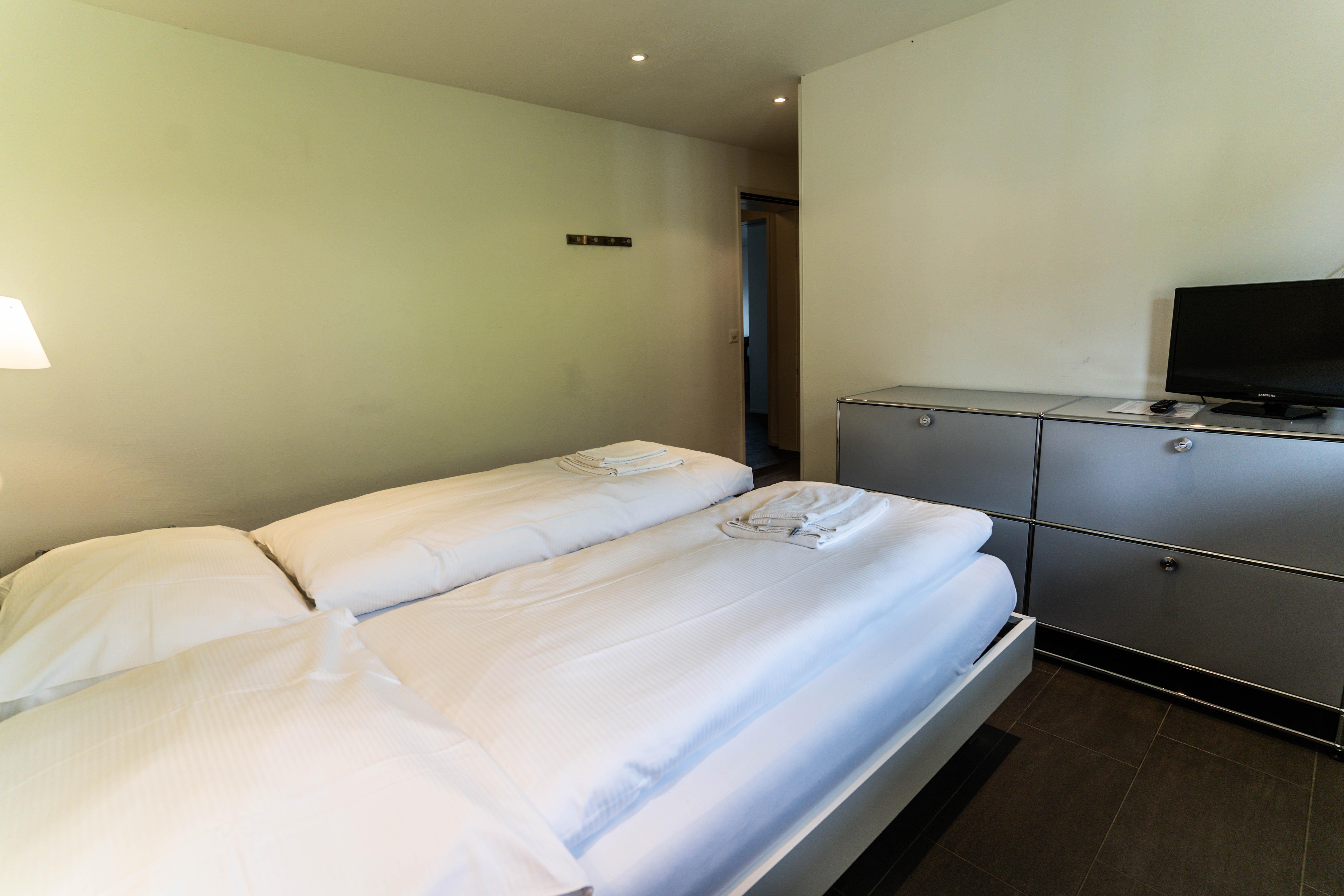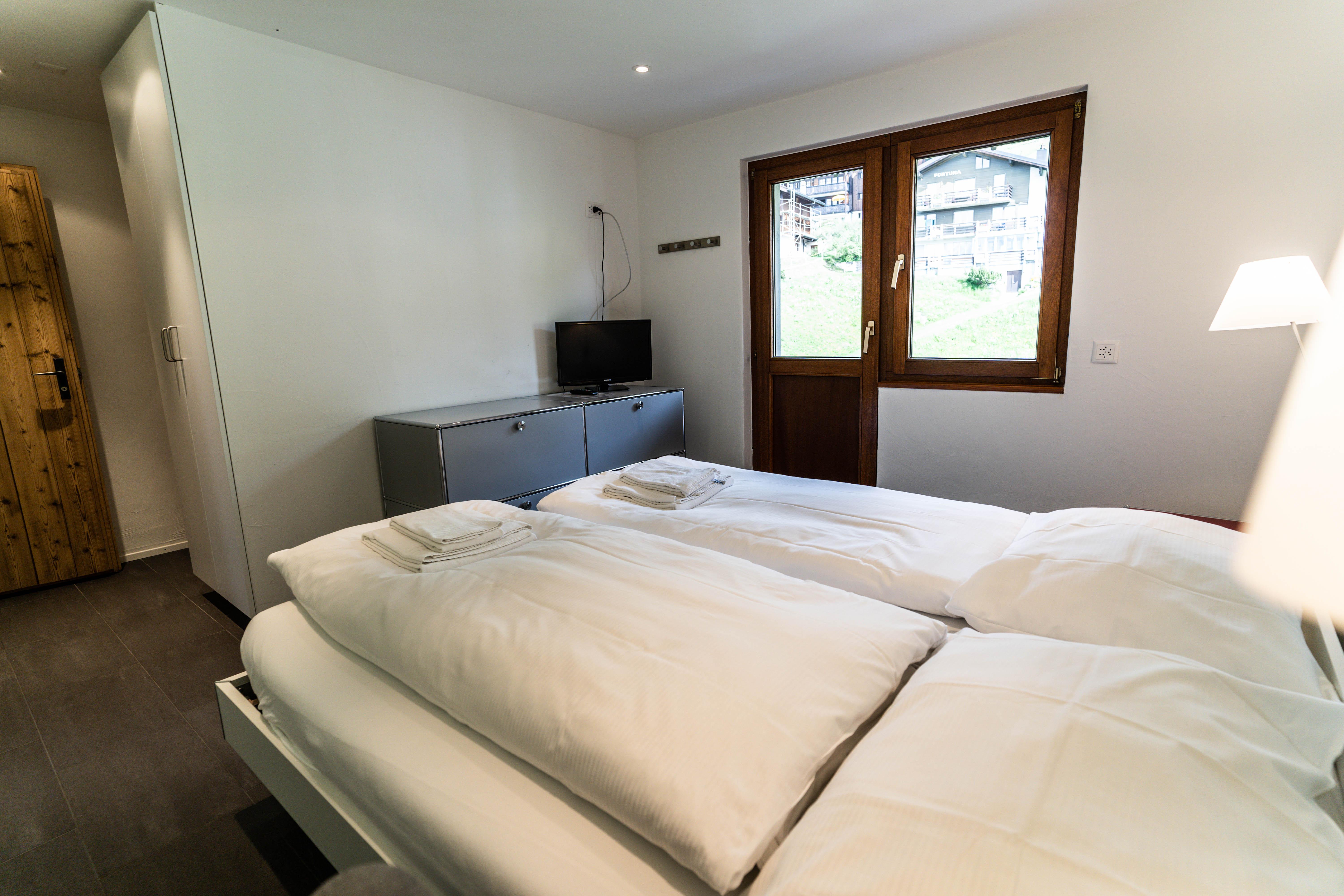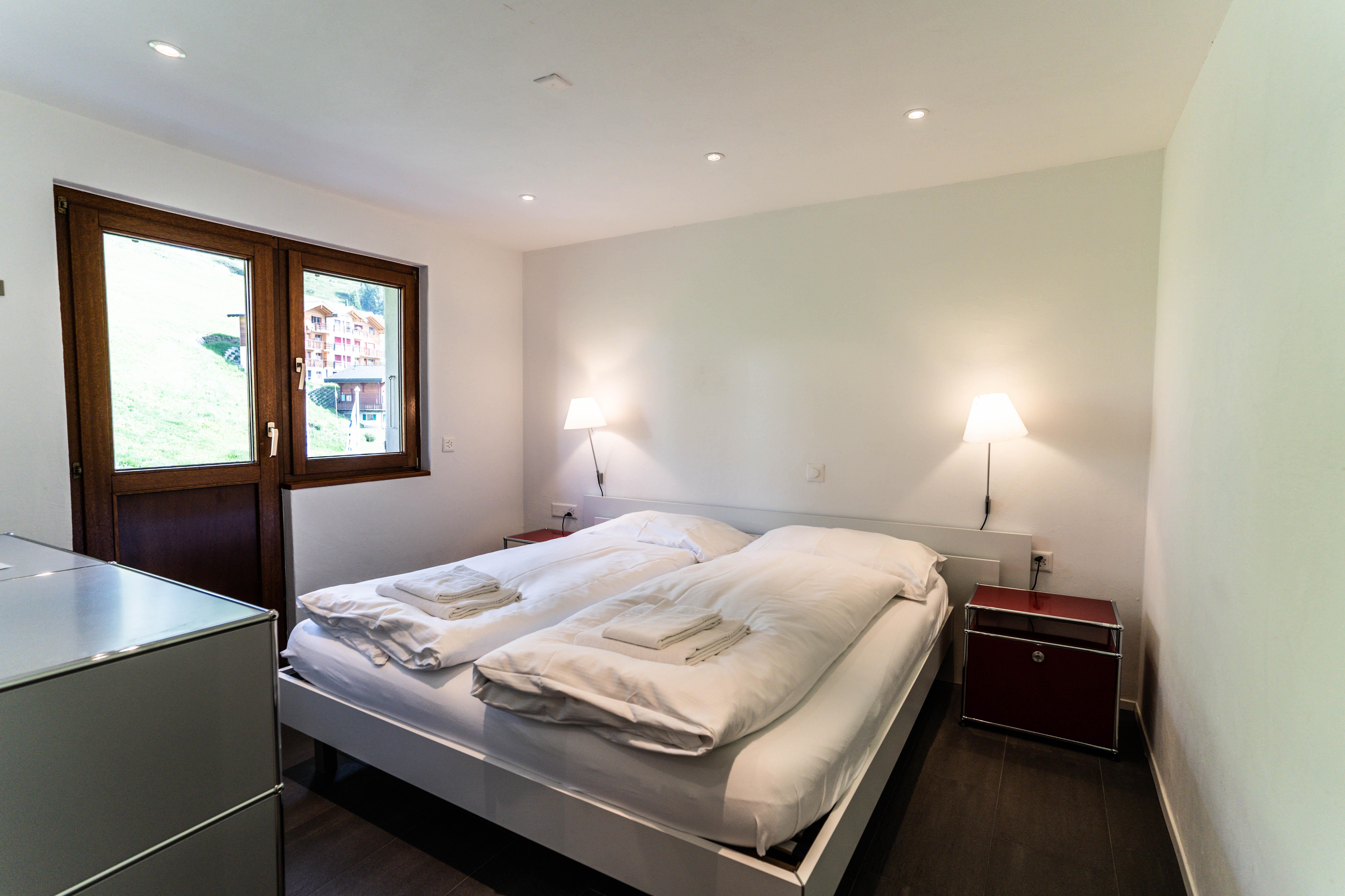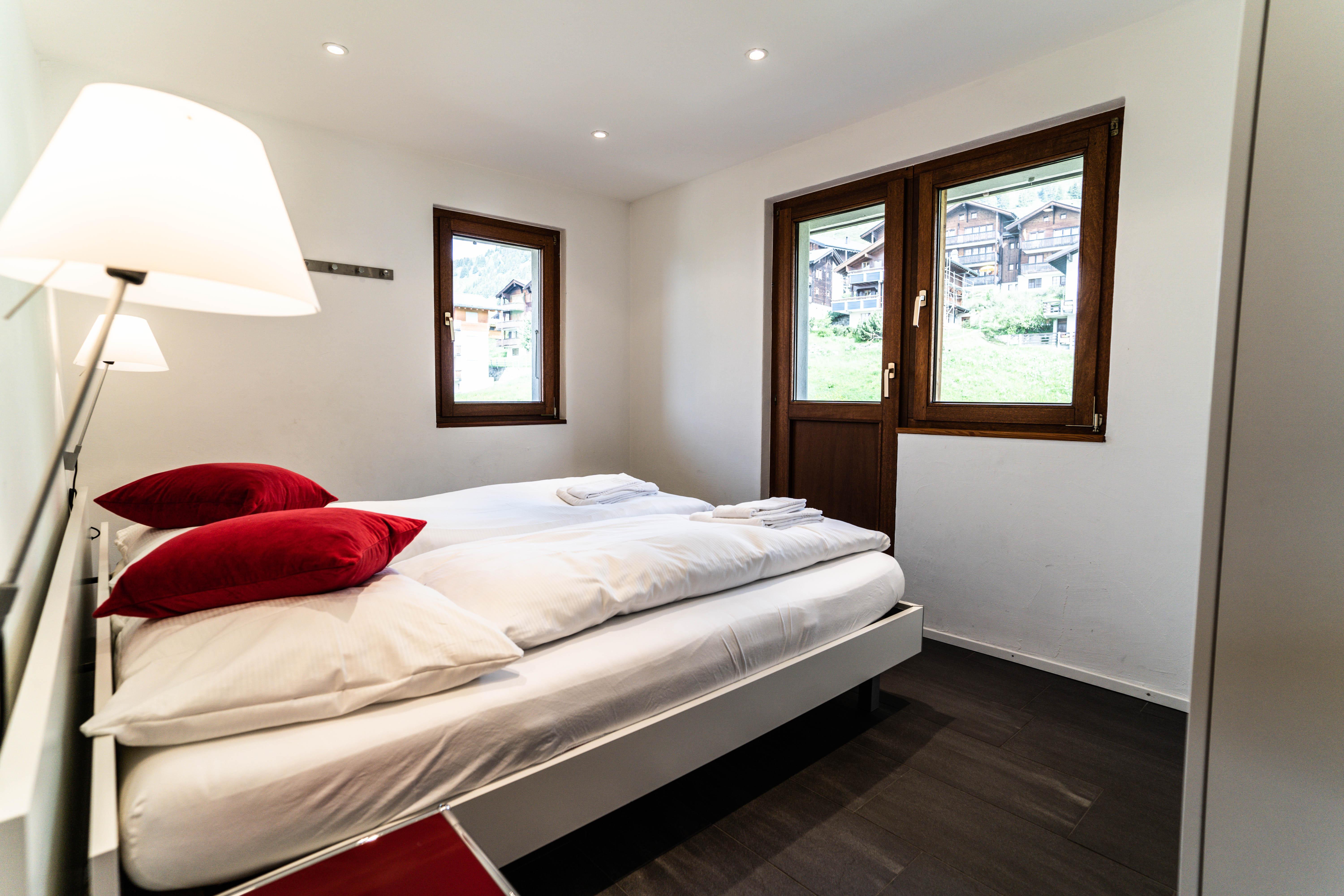 Die Wohnung im 2. Obergeschoss des Hauses Sportina bietet Platz für 1 bis 5 Personen und kombiniert modernen Komfort mit einer gemütlichen Atmosphäre. Sie verfügt über zwei Schlafzimmer mit Doppelbetten, wobei eines zusätzlich mit einer eigenen Dusche/WC ausgestattet ist. Im Wohnzimmer befindet sich ein Esstisch sowie ein Schrankbett. Das Hauptbadezimmer ist mit Badewanne und WC ausgestattet. Die offene Küche ist mit Geschirrspüler und Nespresso-Kaffeemaschine eingerichtet. Fussbodenheizung, TV und kostenloses WLAN sorgen für zusätzlichen Komfort. Zwei Balkone in Süd- und Westrichtung bieten Ausblick auf die Walliser Alpen. Ein Lift, ein Skikeller mit Schuhtrockner sowie eine Waschküche im Keller stehen zur Verfügung.