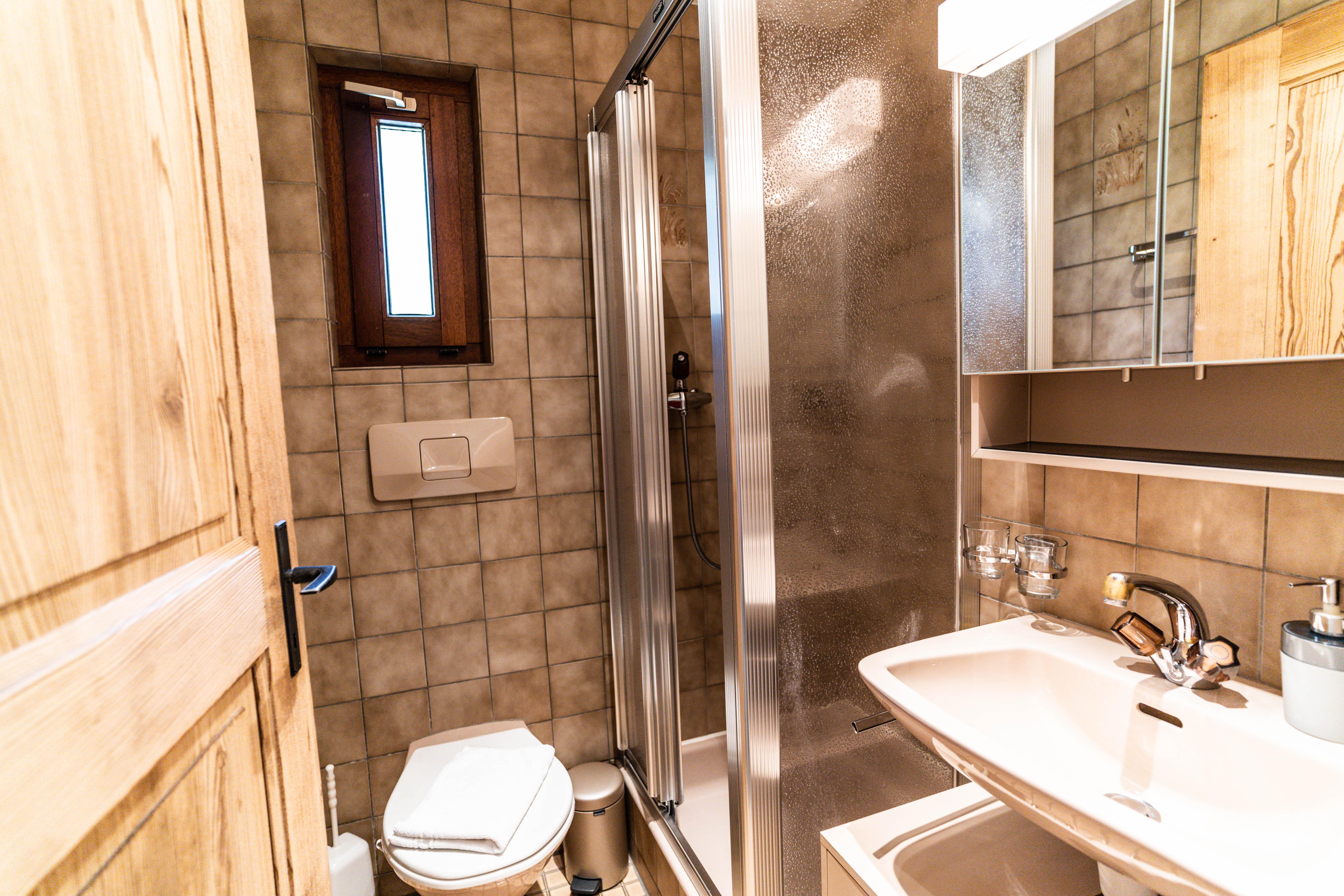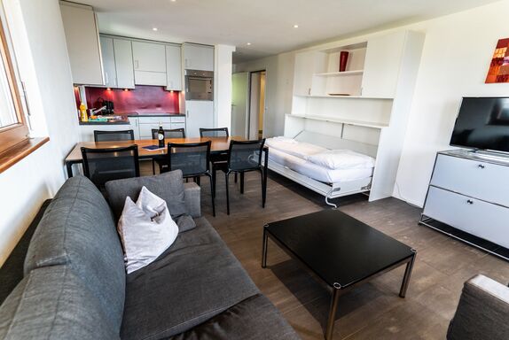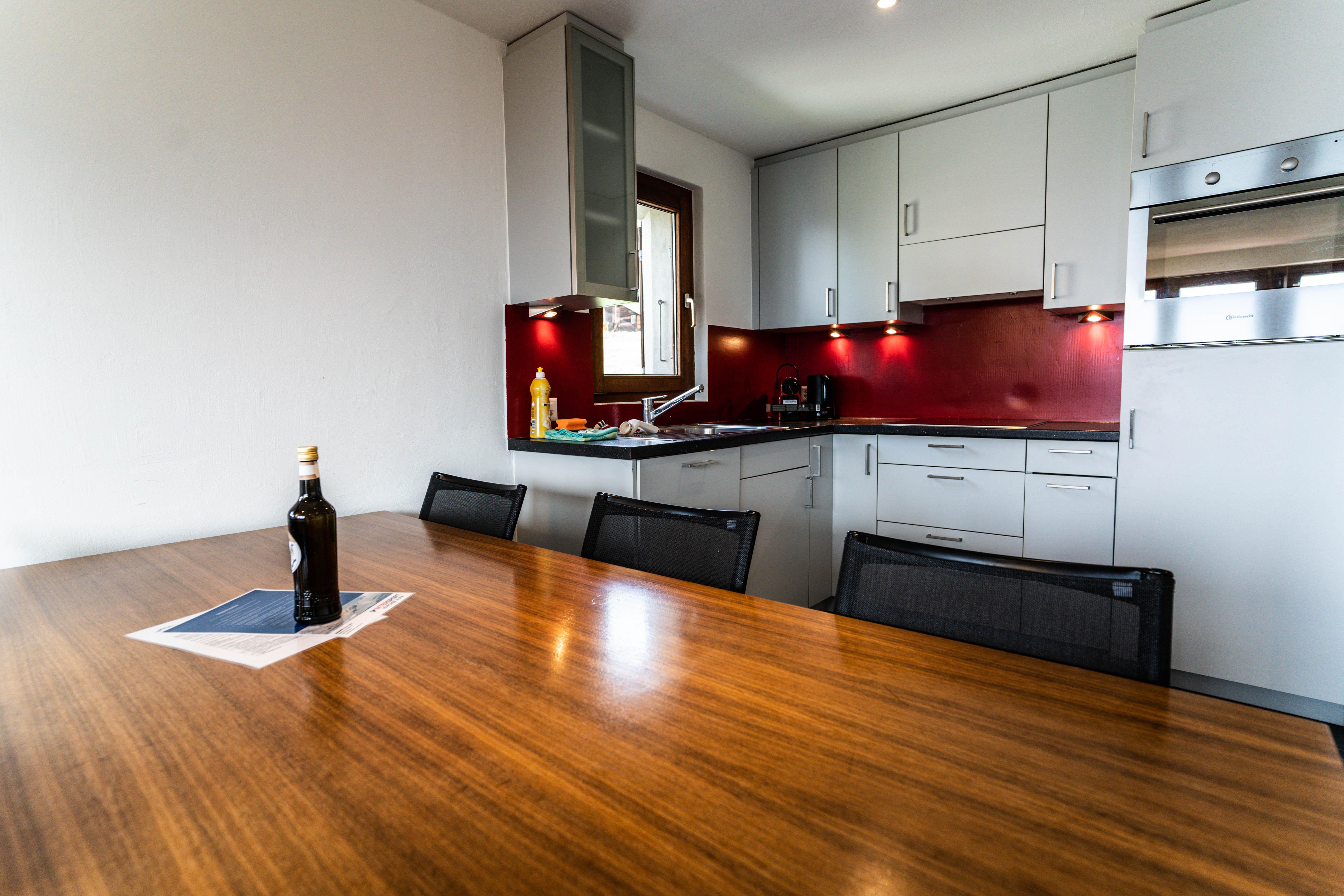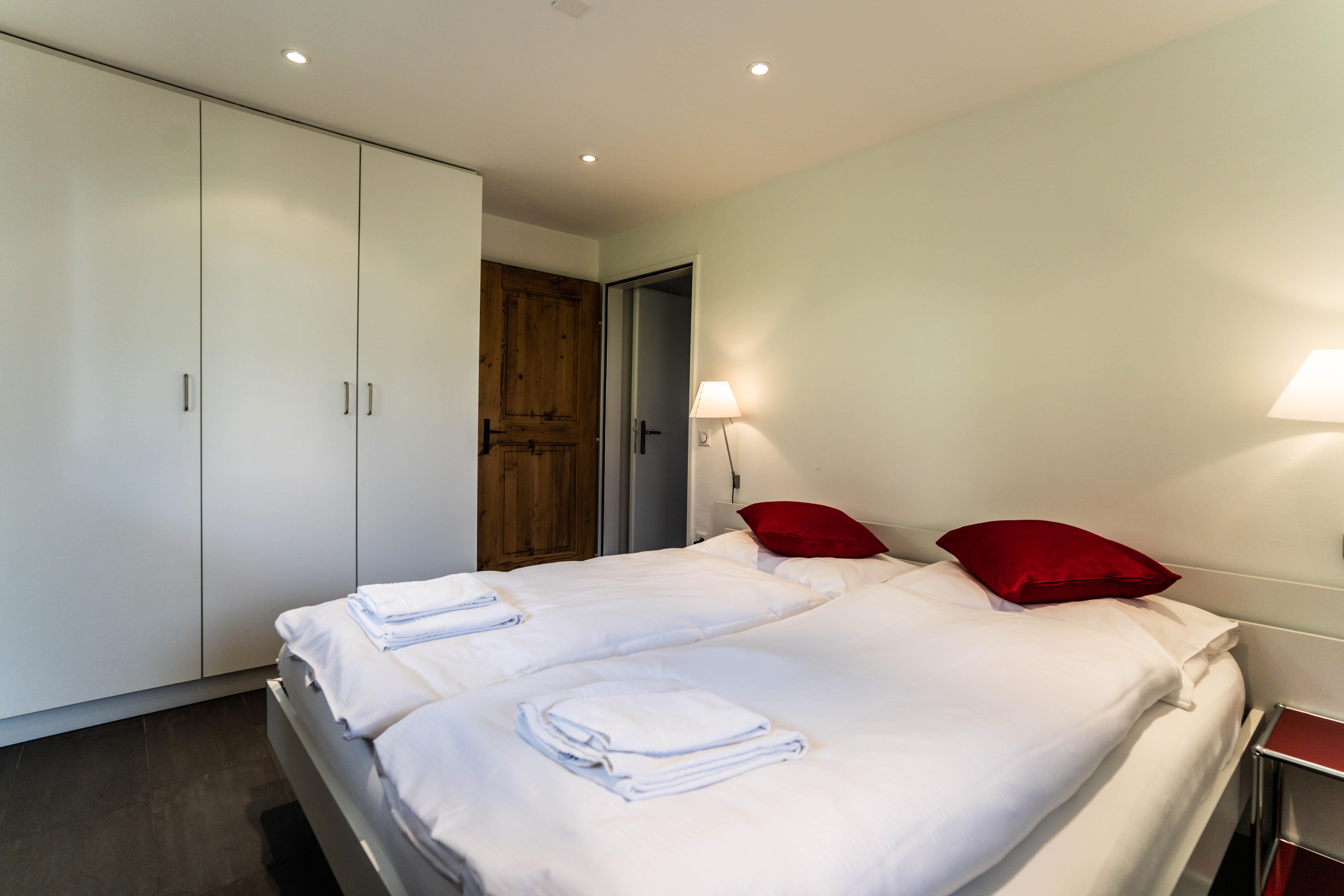 Die Wohnung im 2. Obergeschoss des Hauses Sportina bietet Platz für 1 bis 5 Personen und kombiniert modernen Komfort mit einer gemütlichen Atmosphäre. Sie verfügt über zwei Schlafzimmer mit Doppelbetten, wobei eines zusätzlich mit einer eigenen Dusche/WC ausgestattet ist. Im Wohnzimmer befindet sich ein Esstisch sowie ein Schrankbett. Das Hauptbadezimmer ist mit Badewanne und WC ausgestattet. Die offene Küche ist mit Geschirrspüler und Nespresso-Kaffeemaschine eingerichtet. Fussbodenheizung, TV und kostenloses WLAN sorgen für zusätzlichen Komfort. Zwei Balkone in Süd- und Westrichtung bieten Ausblick auf die Walliser Alpen. Ein Lift, ein Skikeller mit Schuhtrockner sowie eine Waschküche im Keller stehen zur Verfügung.