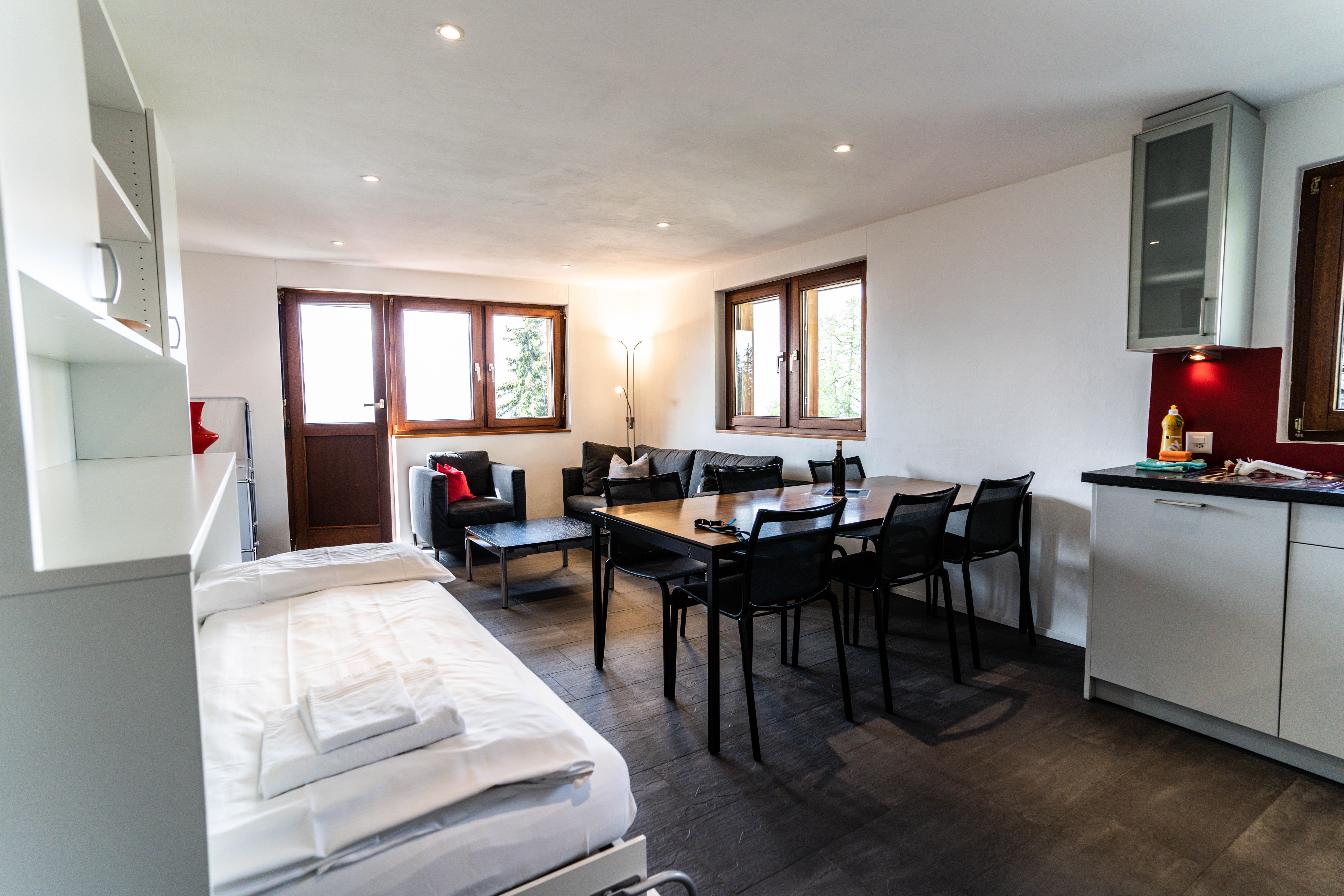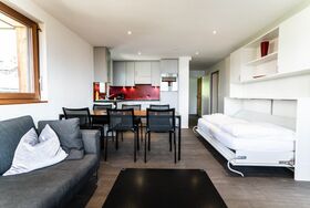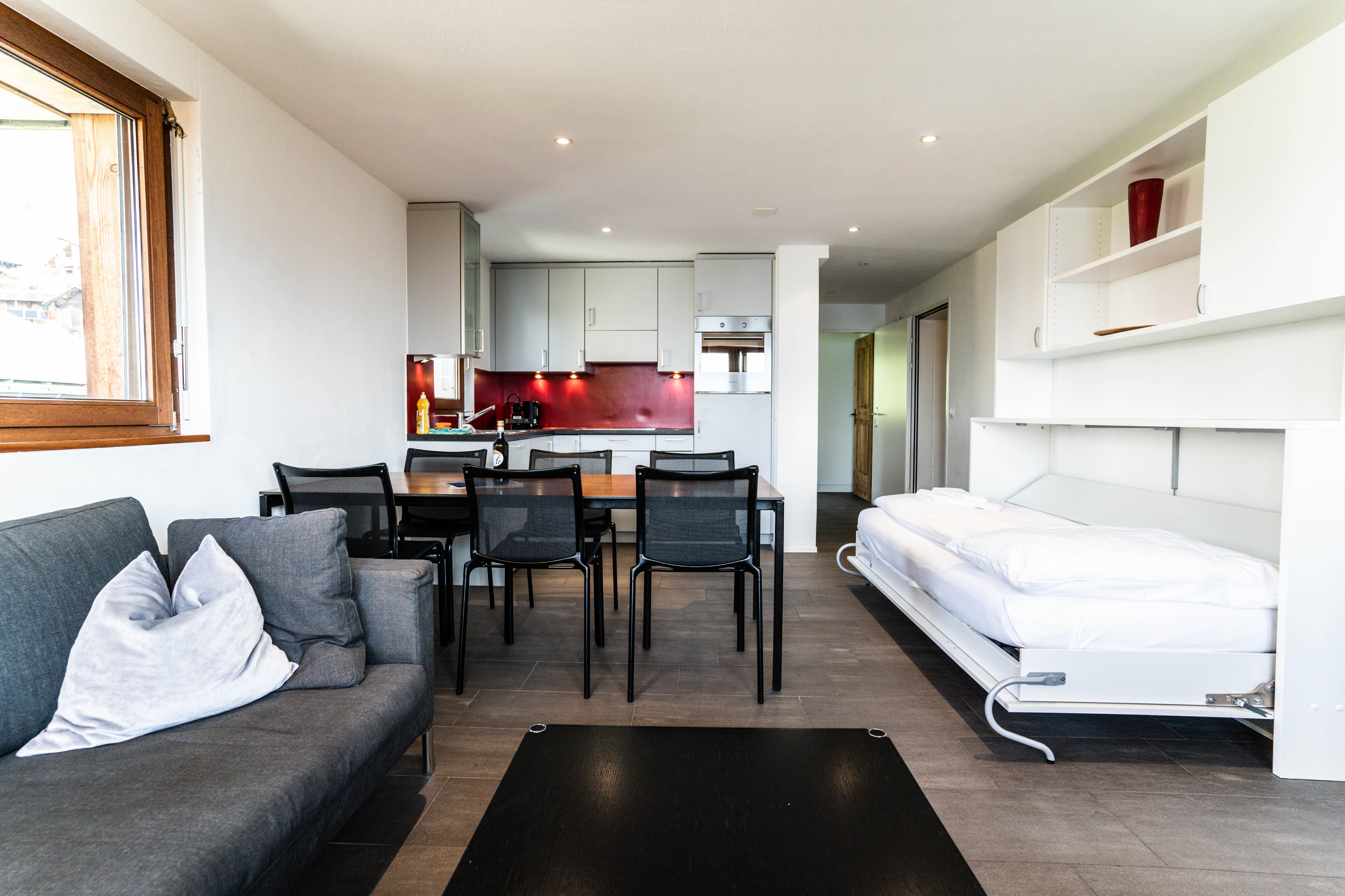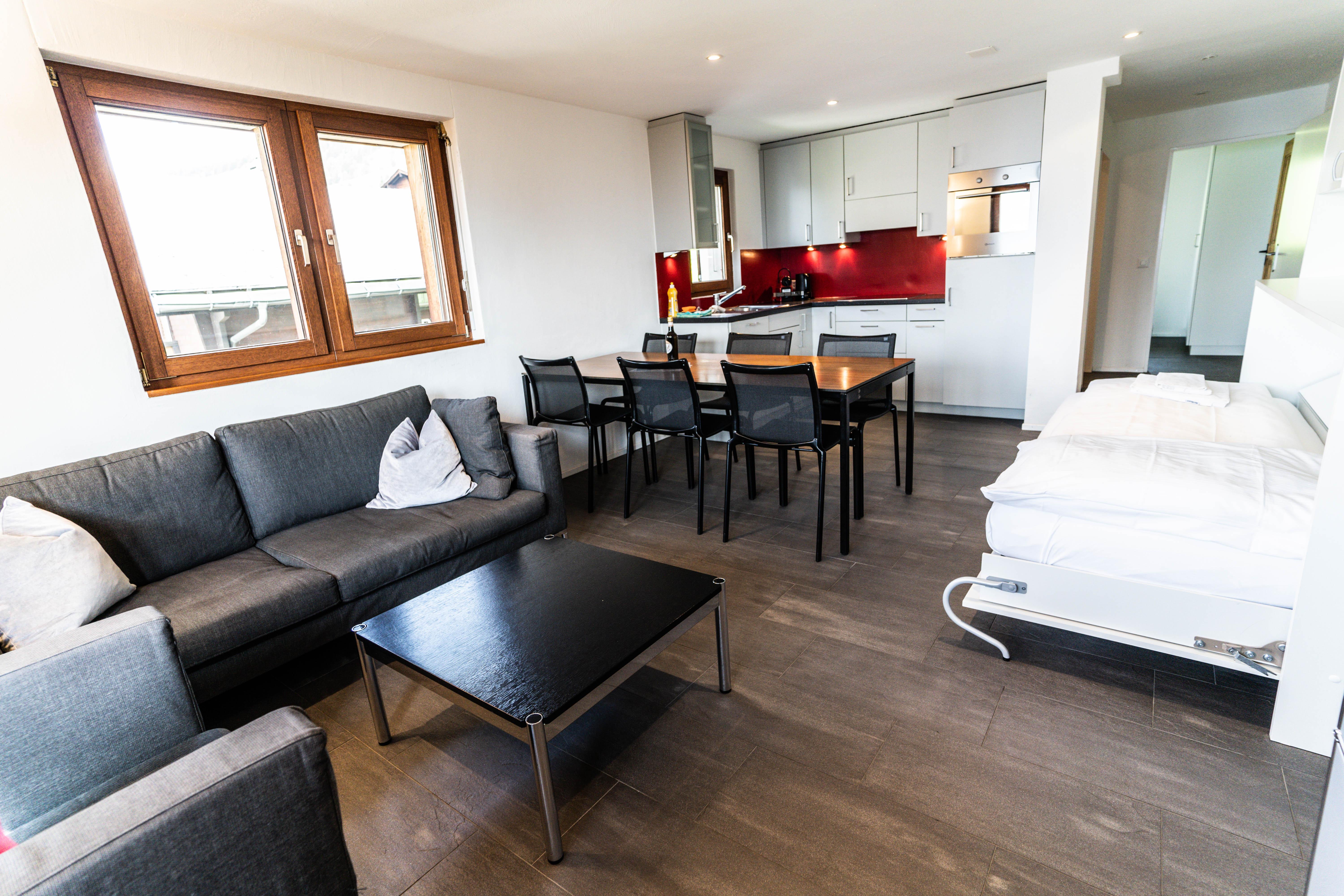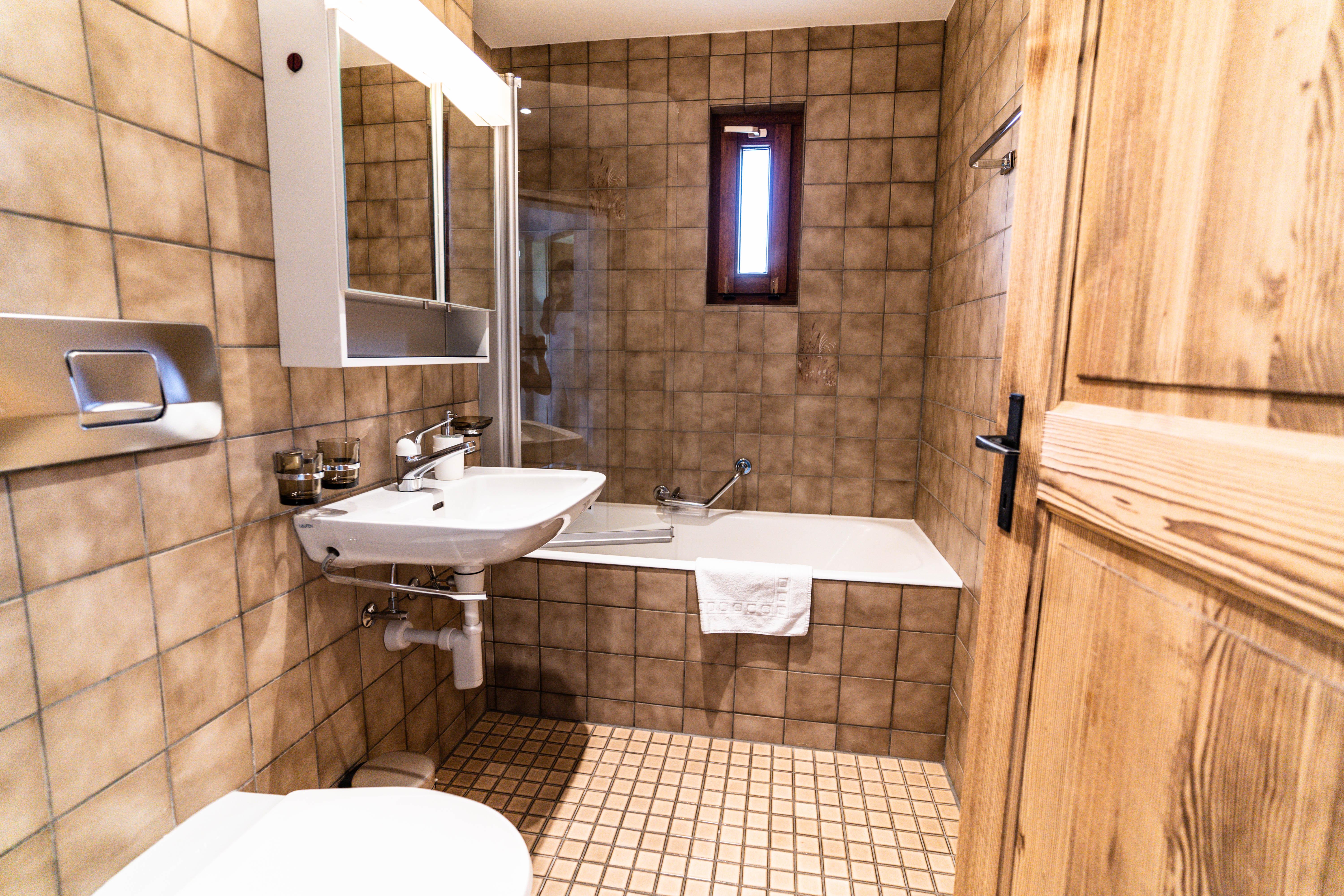 Die Wohnung im 2. Obergeschoss des Hauses Sportina bietet Platz für 1 bis 5 Personen und kombiniert modernen Komfort mit einer gemütlichen Atmosphäre. Sie verfügt über zwei Schlafzimmer mit Doppelbetten, wobei eines zusätzlich mit einer eigenen Dusche/WC ausgestattet ist. Im Wohnzimmer befindet sich ein Esstisch sowie ein Schrankbett. Das Hauptbadezimmer ist mit Badewanne und WC ausgestattet. Die offene Küche ist mit Geschirrspüler und Nespresso-Kaffeemaschine eingerichtet. Fussbodenheizung, TV und kostenloses WLAN sorgen für zusätzlichen Komfort. Zwei Balkone in Süd- und Westrichtung bieten Ausblick auf die Walliser Alpen. Ein Lift, ein Skikeller mit Schuhtrockner sowie eine Waschküche im Keller stehen zur Verfügung.