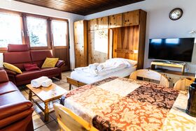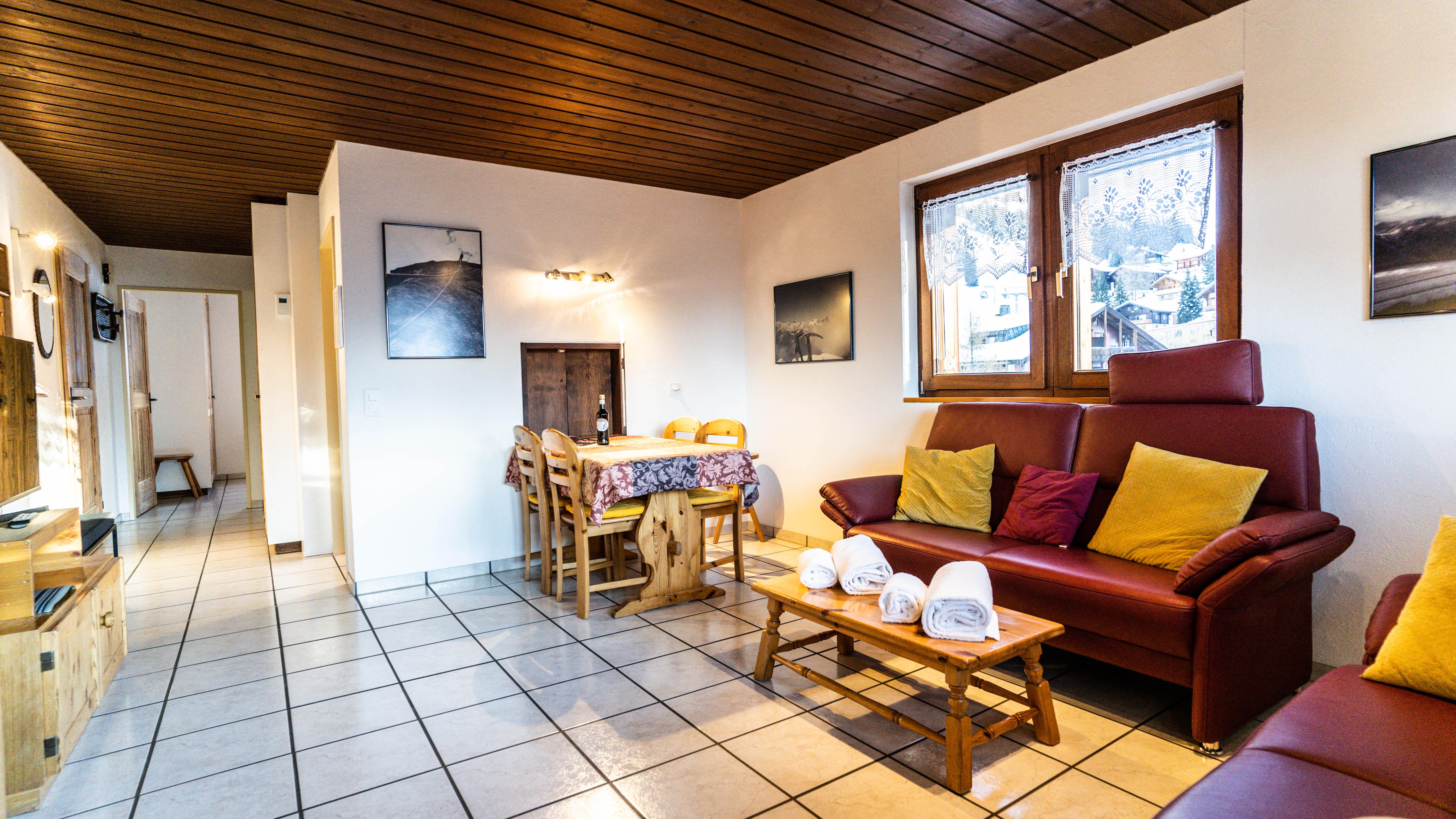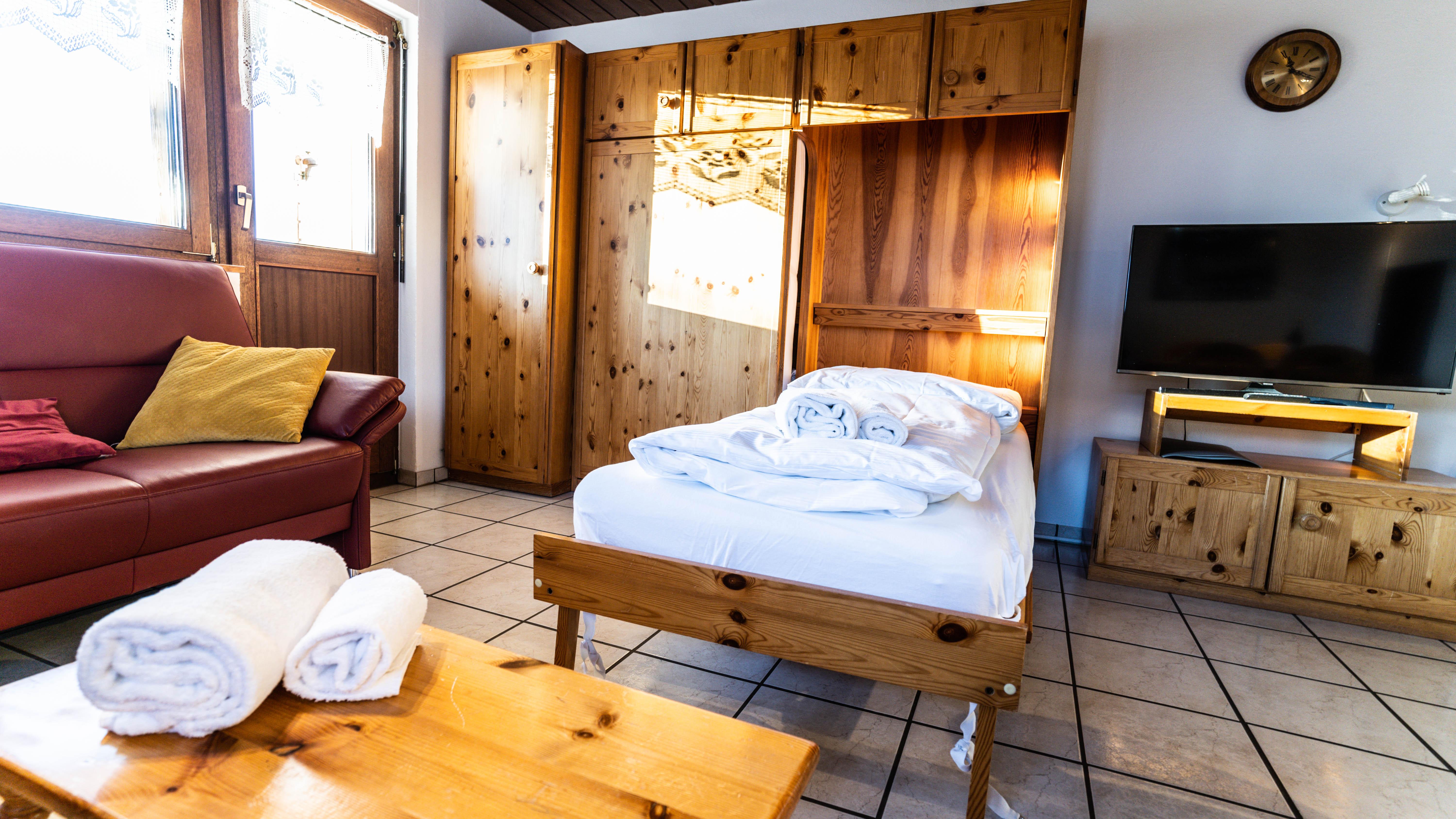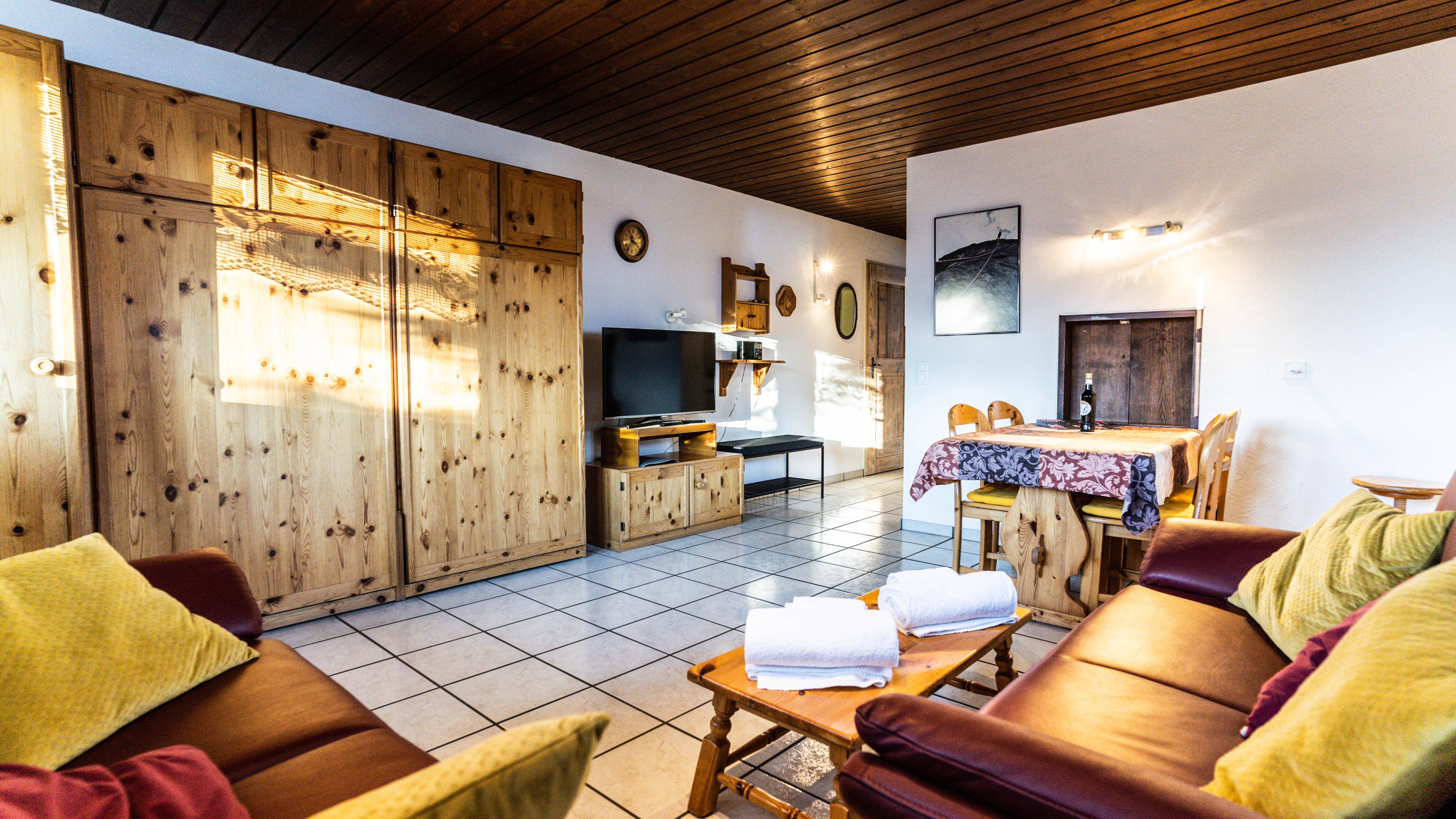 Die 2 1/2-Zimmer-Wohnungen im Haus Sportina bieten Platz für 1 bis 4 Personen und sind komfortabel sowie modern ausgestattet. Zur Einrichtung gehören ein Schlafzimmer mit Doppelbett, ein Wohnzimmer mit Esstisch und zwei Schrankbetten, sowie ein Badezimmer mit Dusche und WC. Die Küche ist mit Geschirrspüler, Nespresso-Kaffeemaschine und allen nötigen Kochutensilien ausgestattet. Für angenehme Wärme sorgt eine Fussbodenheizung. Ein TV-Gerät sowie kostenloses WLAN stehen zur Verfügung. Alle Wohnungen verfügen über einen Südbalkon mit Blick auf die Walliser Alpen, teils auch mit Ostbalkon. Im Haus stehen ein Lift, ein Skikeller mit Schuhtrockner sowie eine gemeinschaftliche Waschküche zur Verfügung.