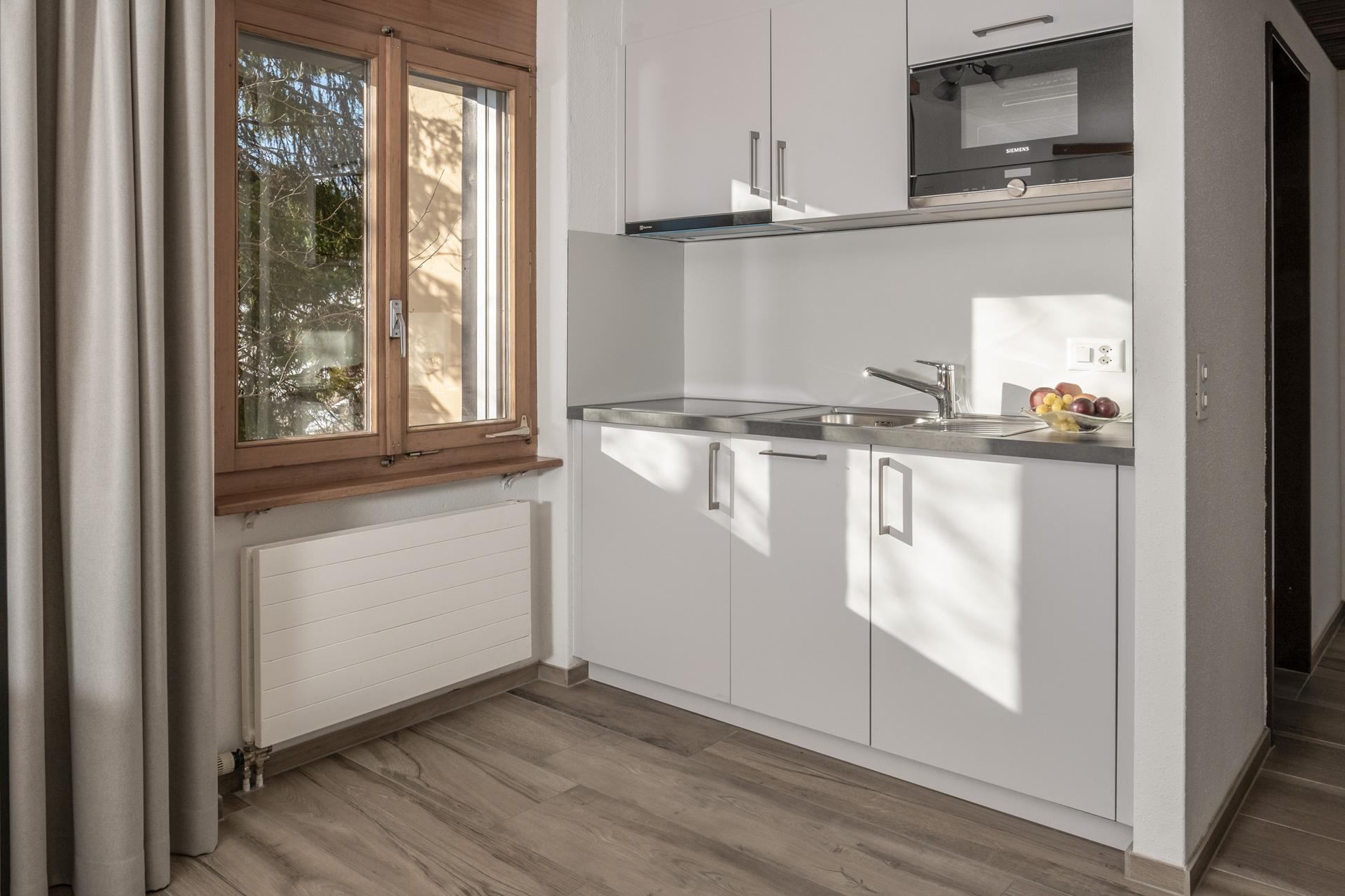 Die renovierte 2-Zimmerwohnung bietet Platz für 2 bis 4 Personen. Sie verfügt über ein separates Schlafzimmer mit Doppelbett (zwei Matratzen, 180x200 cm) sowie ein Schlafsofa im Wohnbereich. Die Küche ist vollständig ausgestattet und beinhaltet einen Combi-Grill mit Backofen und Mikrowellenfunktion. Das Badezimmer ist mit Dusche und WC eingerichtet. Die Unterkunft kombiniert Komfort und Funktionalität für einen angenehmen Aufenthalt auf der autofreien Riederalp.