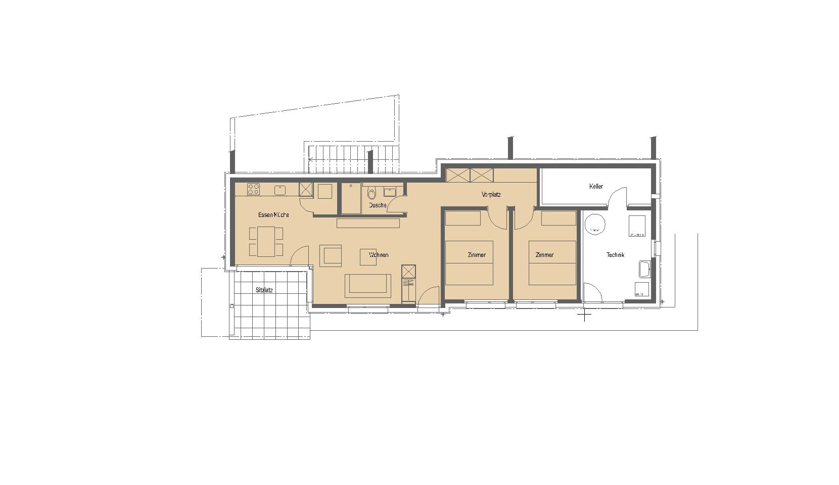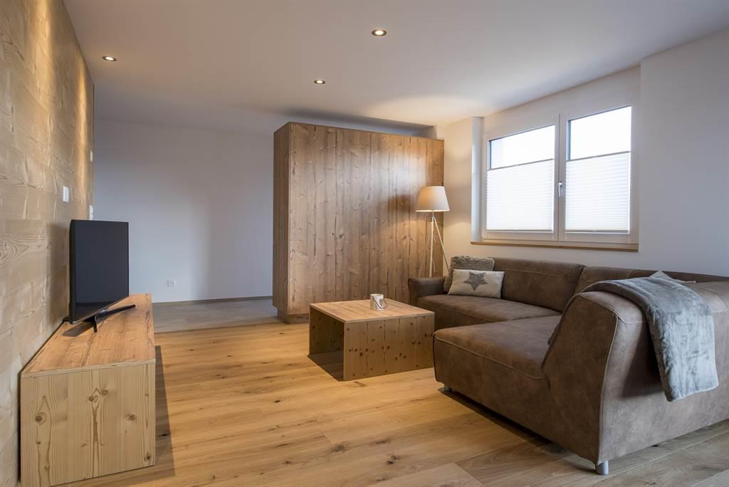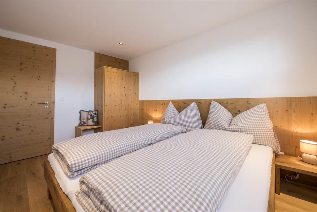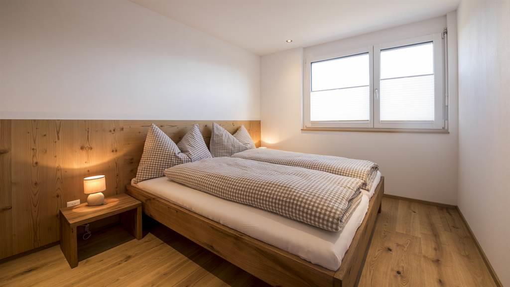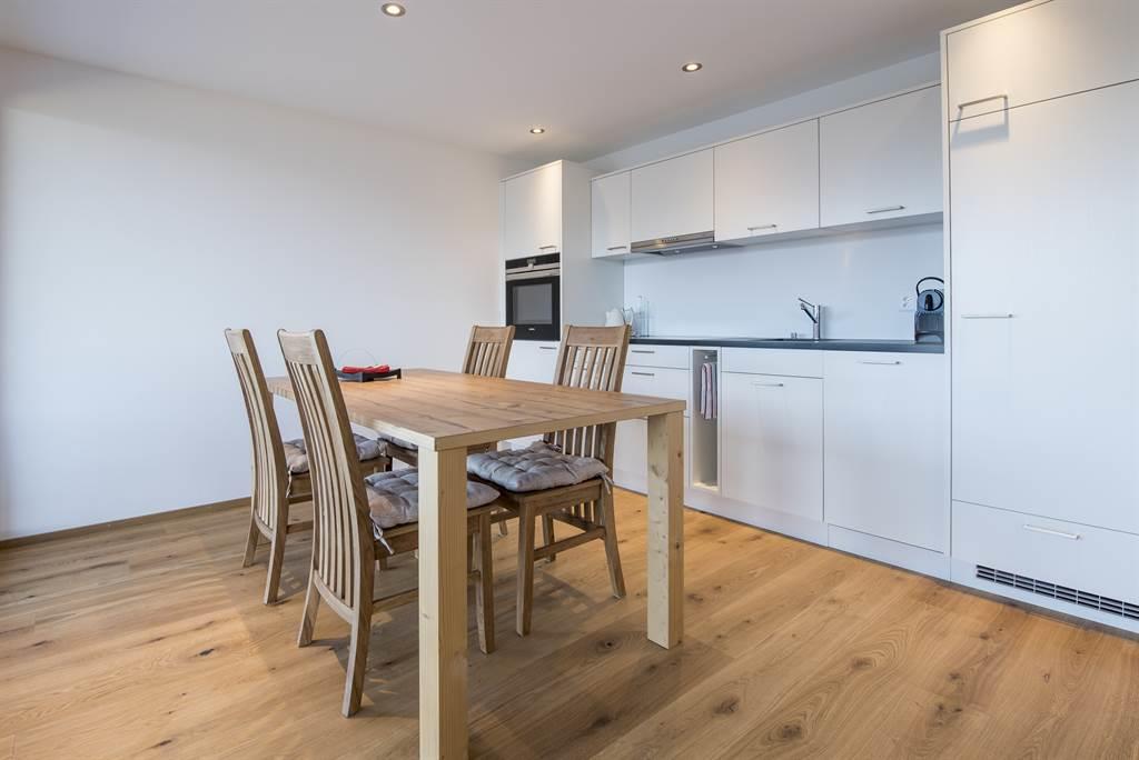 Die 3 1/2-Zimmerwohnung verfügt über zwei Schlafzimmer – eines mit zwei Einzelbetten, das andere mit einem Doppelbett. Das Badezimmer ist mit Dusche und WC ausgestattet. Die offene Küche bietet einen Geschirrspüler und ist funktional eingerichtet. Ein schöner Sitzplatz lädt zum Verweilen ein und bietet eine traumhafte Aussicht.