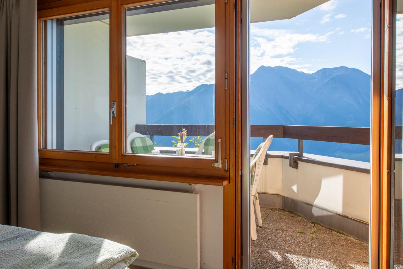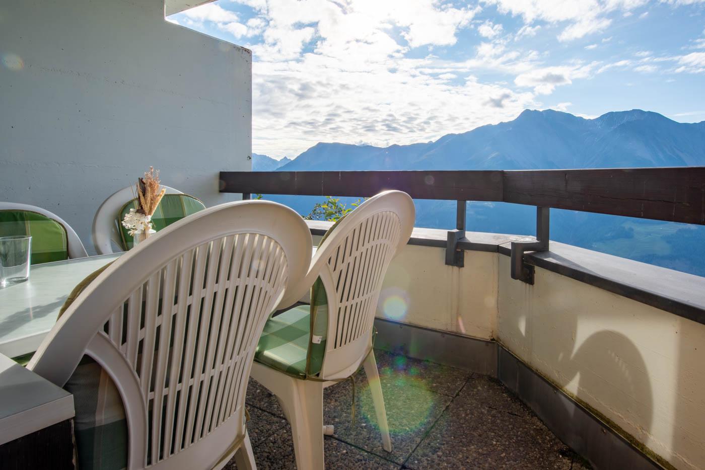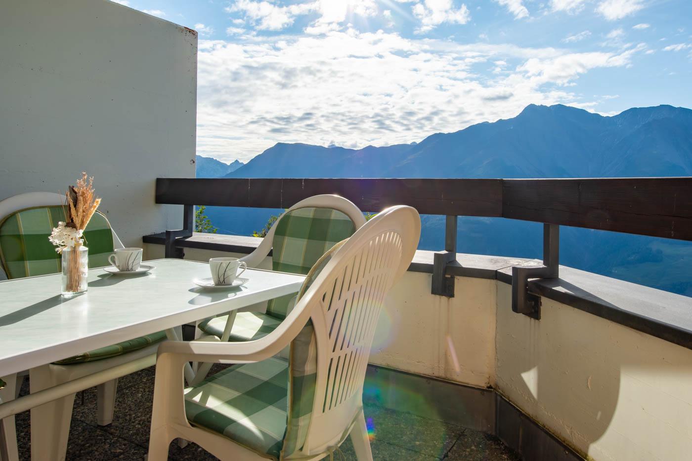 Das Studio verfügt über einen Wohnraum mit Doppelbett (zwei separate Matratzen, 180x200 cm), eine kleine, komplett ausgestattete Küche mit Combi-Grill (Backofen und Mikrowelle) sowie ein Badezimmer mit Dusche und WC. Der möblierte Balkon lädt dazu ein, die Aussicht auf die umliegende Bergwelt zu geniessen.