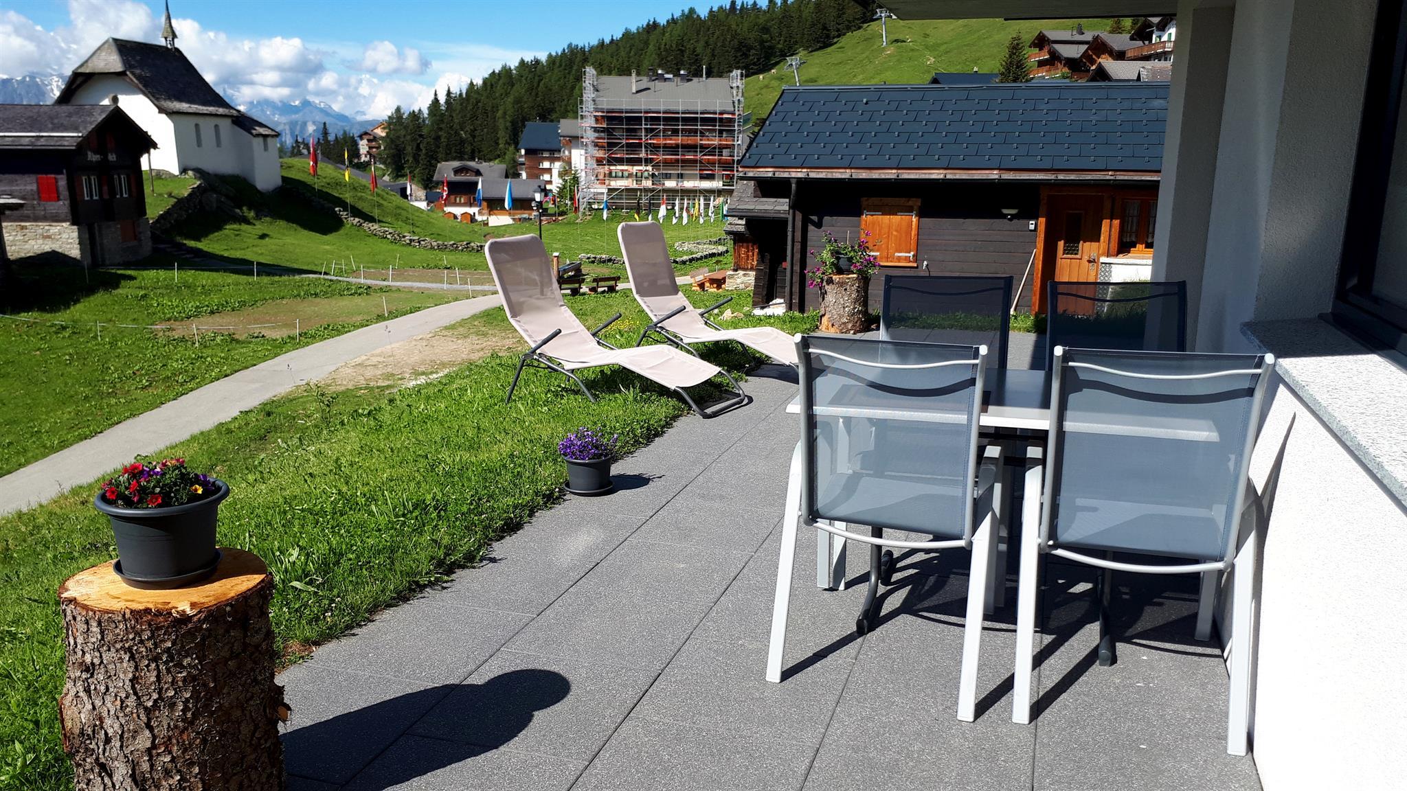 Der Blick auf die Kapelle Maria zum Schnee und das Panorama der Walliser Alpen bis hin zum Matterhorn machen diese Unterkunft zu einem besonderen Ort für erholsame Ferientage.