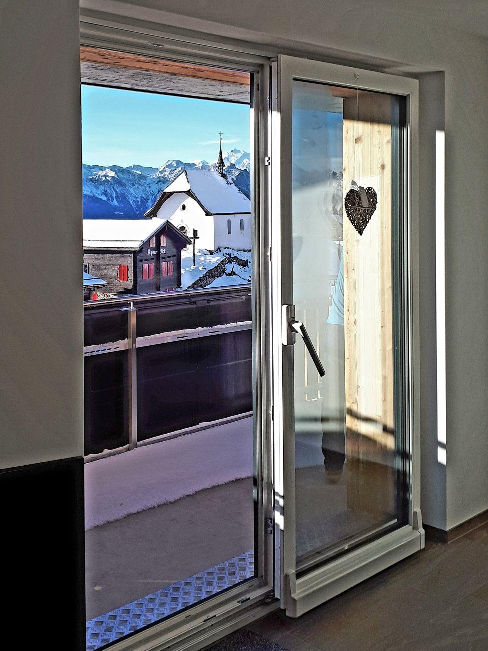 Der Blick auf die Kapelle Maria zum Schnee und das Panorama der Walliser Alpen bis hin zum Matterhorn machen diese Unterkunft zu einem besonderen Ort für erholsame Ferientage.