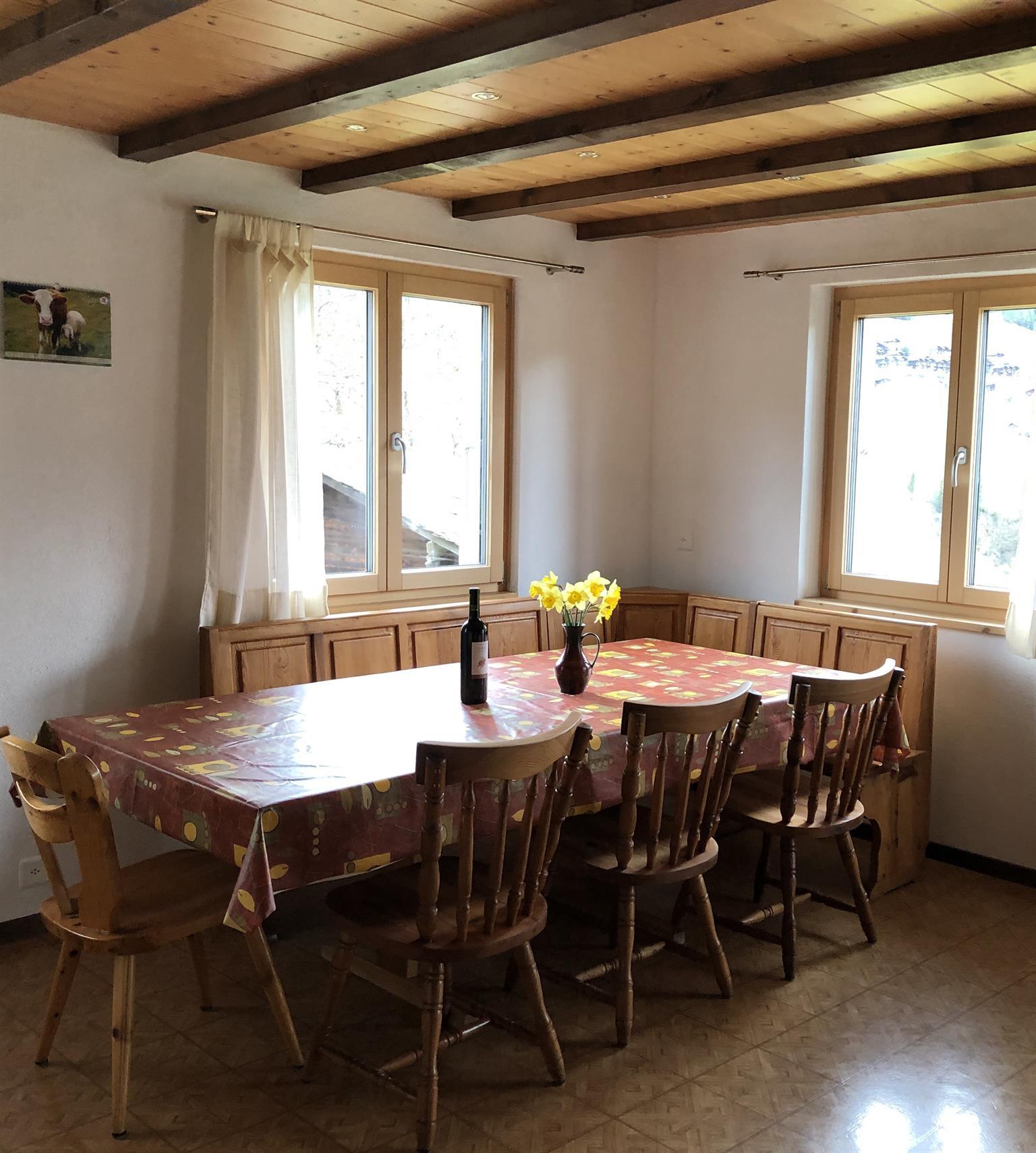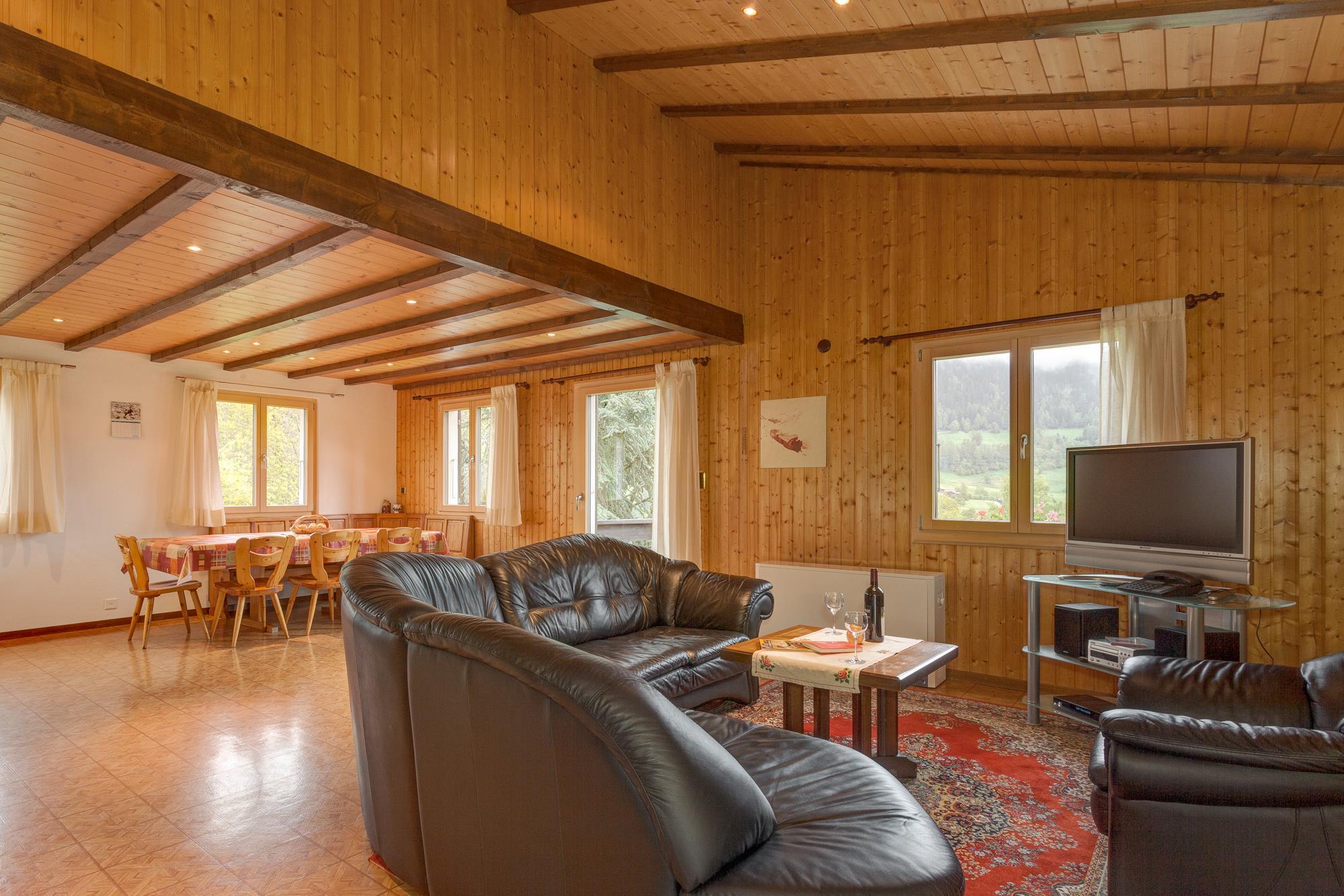 Das Chalet ist gemütlich eingerichtet und bietet eine komplette Ausstattung für einen komfortablen Aufenthalt. Es wird ausschliesslich von den Gästen bewohnt. Zur Verfügung stehen kostenloses WLAN, ein grosser Balkon mit Sitzgelegenheiten sowie ein idyllischer Gartensitzplatz mit Liegewiese und Gartenkamin. Bett-, Frottée- und Küchenwäsche sind auf Wunsch erhältlich. Für Wintersportler gibt es einen abschliessbaren Skiraum. Der Rasen und die Blumen werden automatisch bewässert. Ein eigener Gratis-Parkplatz steht ebenfalls zur Verfügung.