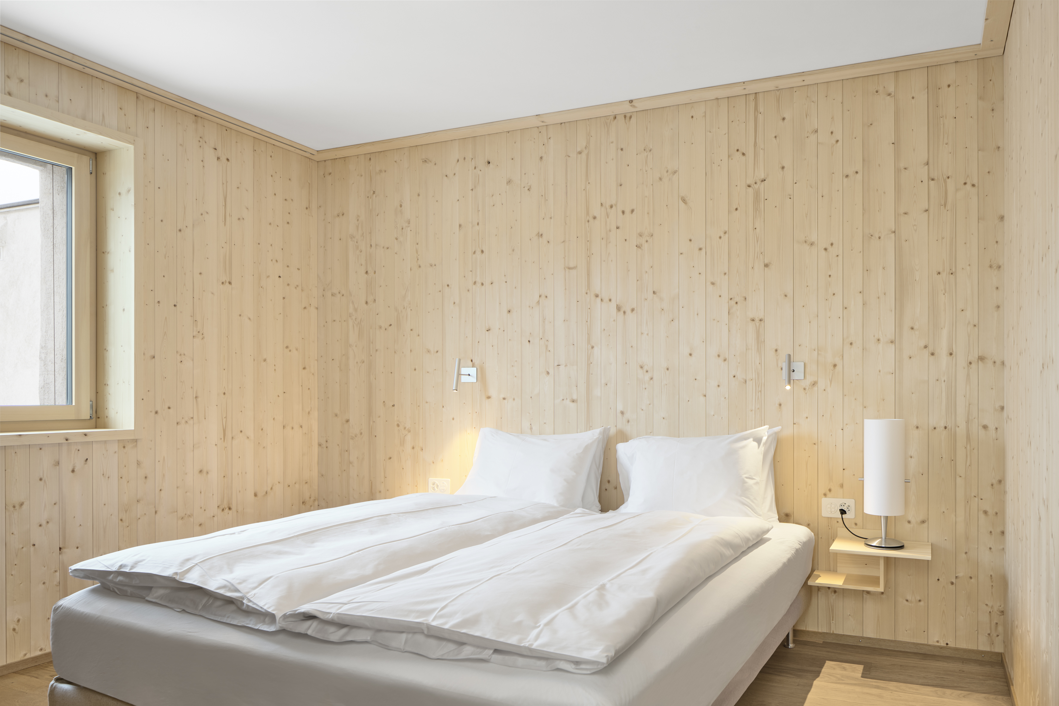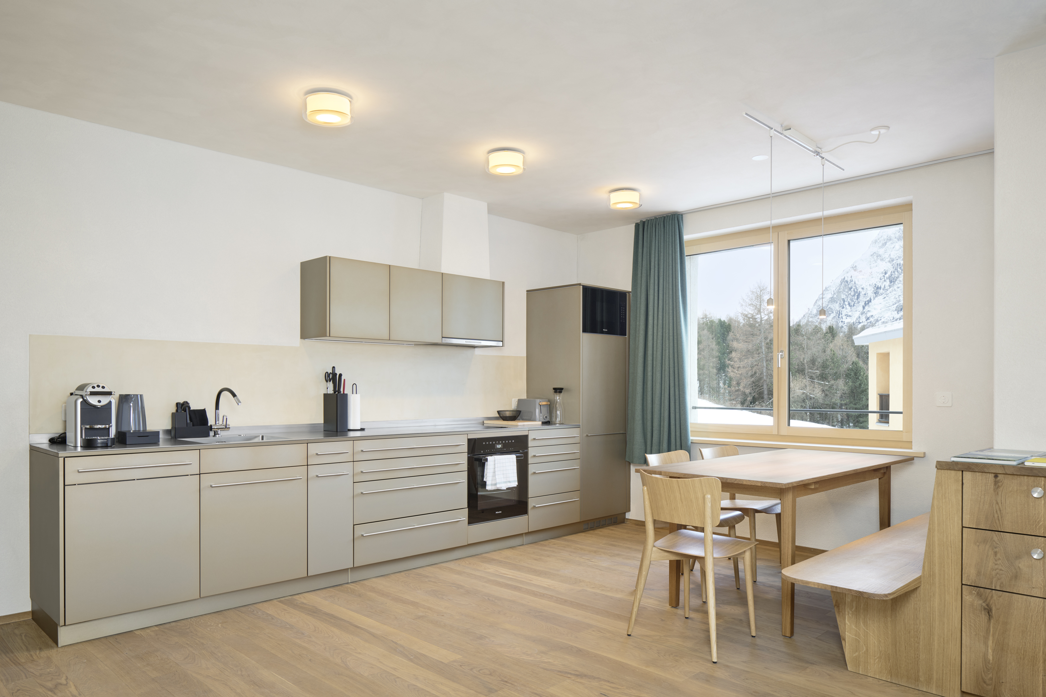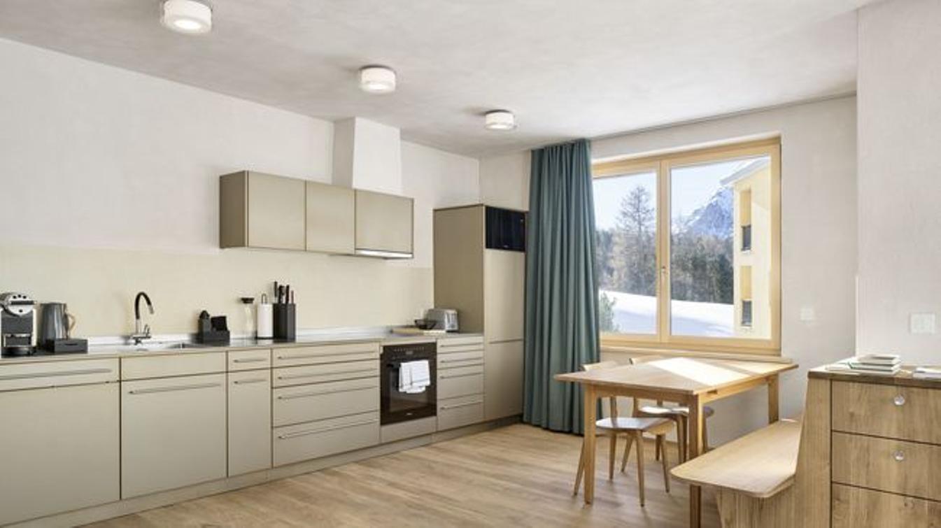 Unsere vier einzigartigen 2-Bett Wohnungen (ca. 50 bis 65m2) befinden sich in südlicher Ausrichtung und bieten einen Ausblick in Richtung Val Roseg. Die 2-Bett-Wohnungen bestehen aus einem Schlafzimmer, einem Badezimmer sowie einer hochwertigen und voll ausgestatteten Küche des Schweizer Herstellers Forster mit einem kombinierten Wohn- und Essbereich. Im Schlafzimmer finden Sie ein erstklassiges Schramm Federkern-Bett (180x210 cm), welches für exzellenten Schlafkomfort steht. Die Böden bestehen aus Eichenparkett und das Schlafzimmer ist mit Fichtentäfer eingekleidet. Die Wände sind mit Kalk verputzt und jede Wohnung erhält einen individuellen Anstrich, der mit Farbpigmenten aus Engadiner Gestein versehen ist. Die Wohnungen verfügen über eine Loggia.
