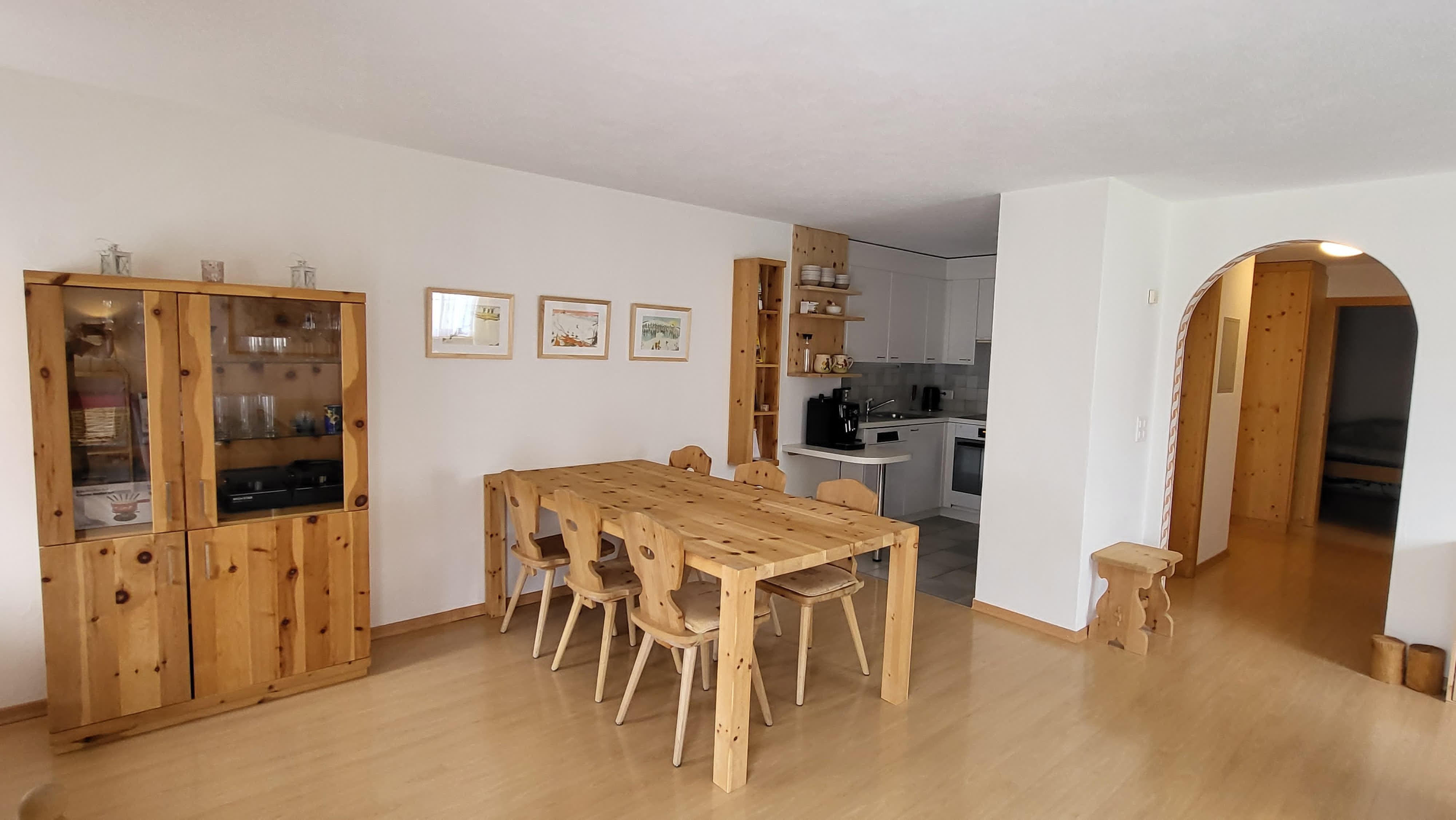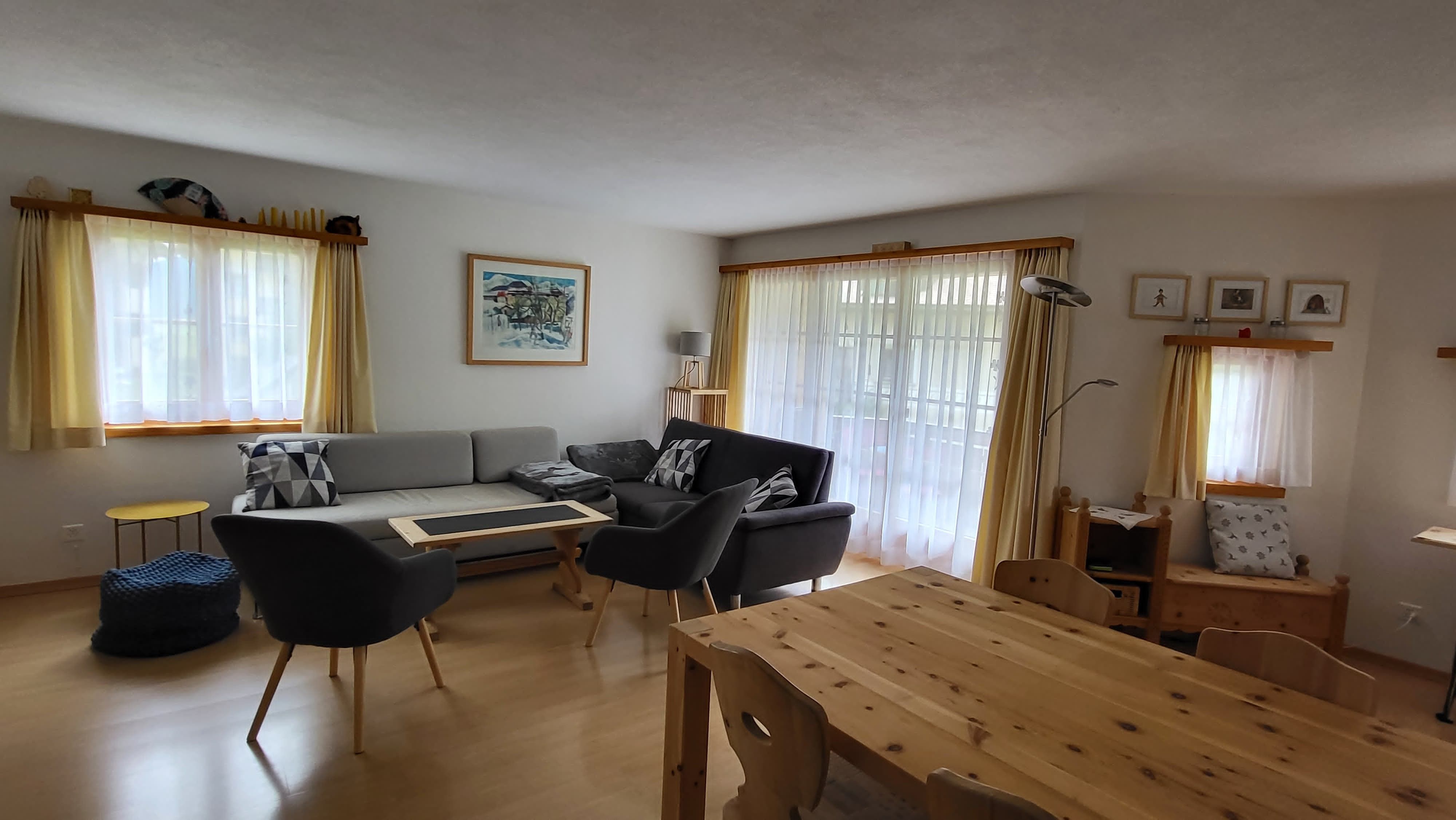 Unsere Ferienwohnung in Zuoz im schönen Engadin (Graubünden) erwartet Sie eine freundliche, helle und gepflegte 4.5-Zimmer-Wohnung, die mit ihrer gemütlichen Atmosphäre überzeugt. Die ebenerdige Wohnung verfügt über einen Balkon, von dem aus Sie einen traumhaften Blick auf die umliegende Bergwelt genießen können. Der Bahnhof und diverse Einkaufsmöglichkeiten sind in nur drei Minuten zu Fuß erreichbar, und der charmante Dorfkern befindet sich ebenfalls ganz in der Nähe. Die Region bietet zahlreiche Freizeitmöglichkeiten: Im Sommer können Sie joggen, radfahren, golfen oder auf den vielen Wanderwegen die Natur erkunden – auch der nahegelegene Nationalpark lädt zu Ausflügen ein. Im Winter erwarten Sie ideale Bedingungen zum Skifahren, Snowboarden, Eislaufen, Rodeln und Langlaufen auf bestens präparierten Loipen. Die Umgebung ist besonders kinderfreundlich, und dank der guten Anbindung sind die Nachbardörfer bequem mit öffentlichen Verkehrsmitteln oder dem Auto erreichbar. Hier finden Sie den perfekten Ort für erholsame Ferien inmitten der Natur, kombiniert mit vielfältigen Freizeitangeboten direkt vor der Tür.Basisinformationen: