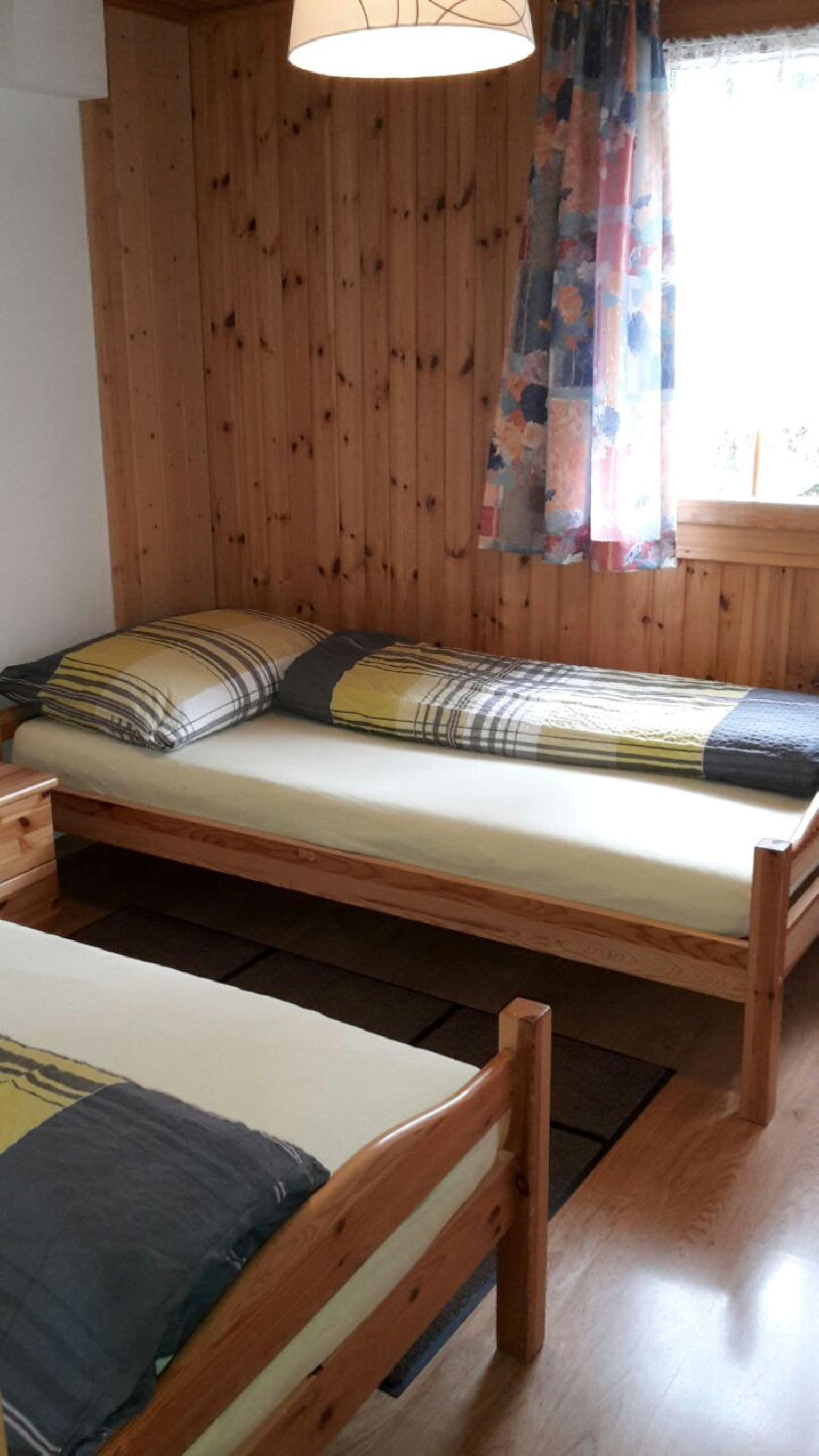 Die Drei-Zimmer-Wohnung ist geschmackvoll und heimelig eingerichtet. Sie verfügt über zwei Schlafzimmer, eines mit Doppelbett (zwei einzelne Matratzen), das andere mit zwei Einzelbetten sowie einen kombinierten Wohn- und Küchenbereich. Das Badezimmer ist mit Dusche und WC ausgestattet. Die Wohnung bietet zeitgemässen Komfort mit Bodenheizung, Geschirrspüler, Sat-TV, Radio, Waschmaschine und Wäschetrockner.