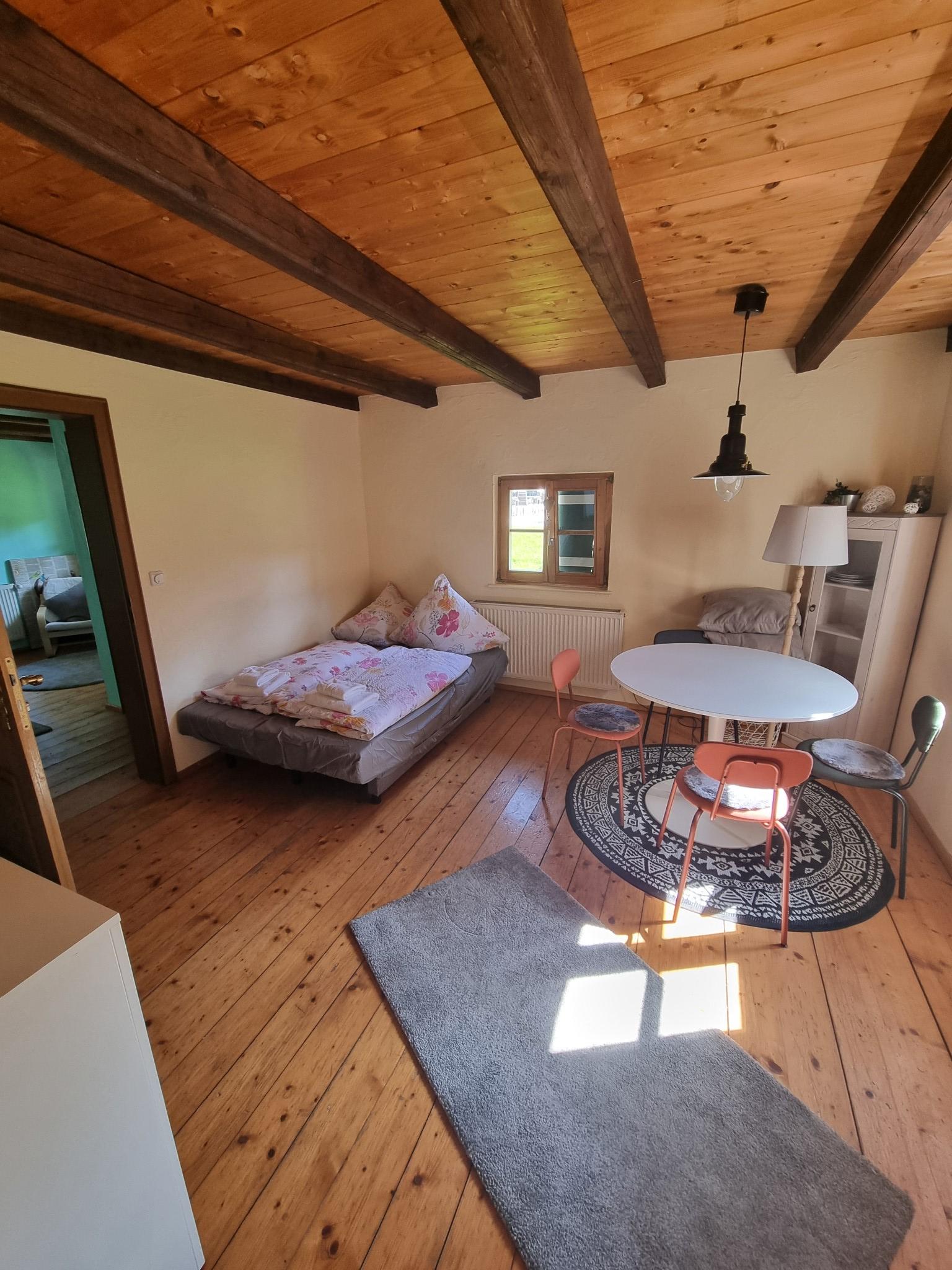 Willkommen in der Blockhütte der Niederalm! Diese Ferienwohnung bietet eine rustikale, gemütliche Atmosphäre in der Sie sich wohlfühlen werden. Genießen Sie die Ruhe und Erholung, die unsere Lage eingebettet in die Natur bietet. Ob beim Frühstück auf der Terrasse mit Blick auf Berge oder beim Entspannen nach einem erlebnisreichen Tag - hier finden Sie den perfekten Ort, um den Alltag hinter sich zu lassen. Es ist eine kleine Kochgelegenheit vorhanden. Aus Platzgründen ist keine Spüle eingebaut, aber das Geschirr kann im Bad gespült werden.