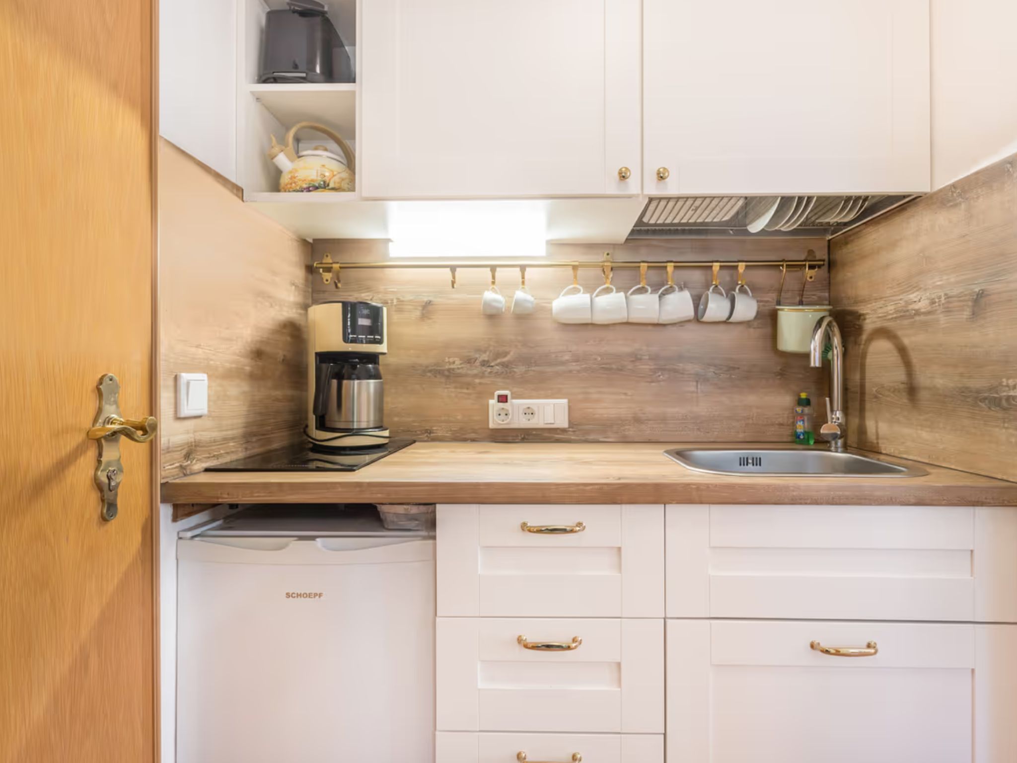 Ein große Gemeinschaftsküche mit Dartscheibe und gemütlicher Sitzecke, sowie eine infrarotkabine ist für jede Wohnung kostenlos zugänglich.