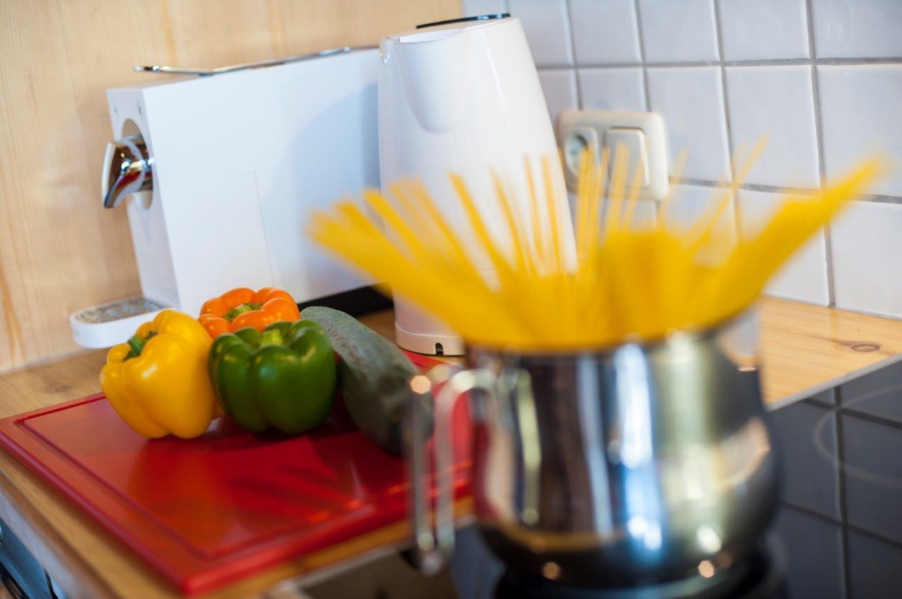 Die Wohnküche ist mit Geschirrspüler, Backherd, Kühlschrank, Mikrowelle, Toaster, Mixer, Wasserkocher, Kaffeemaschine und komplettem Kücheninventar ausgestattet. Bettwäsche inkludiert