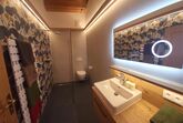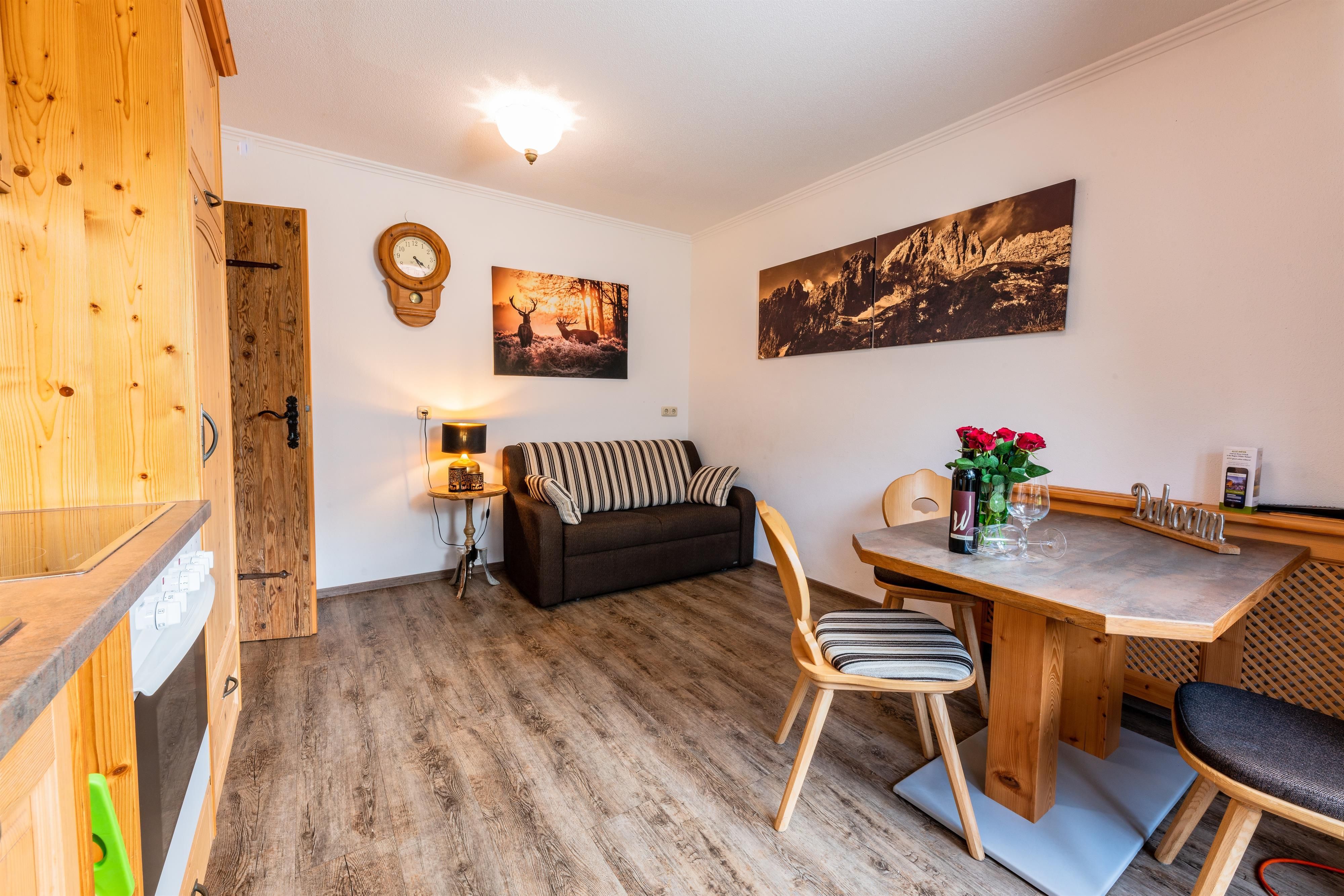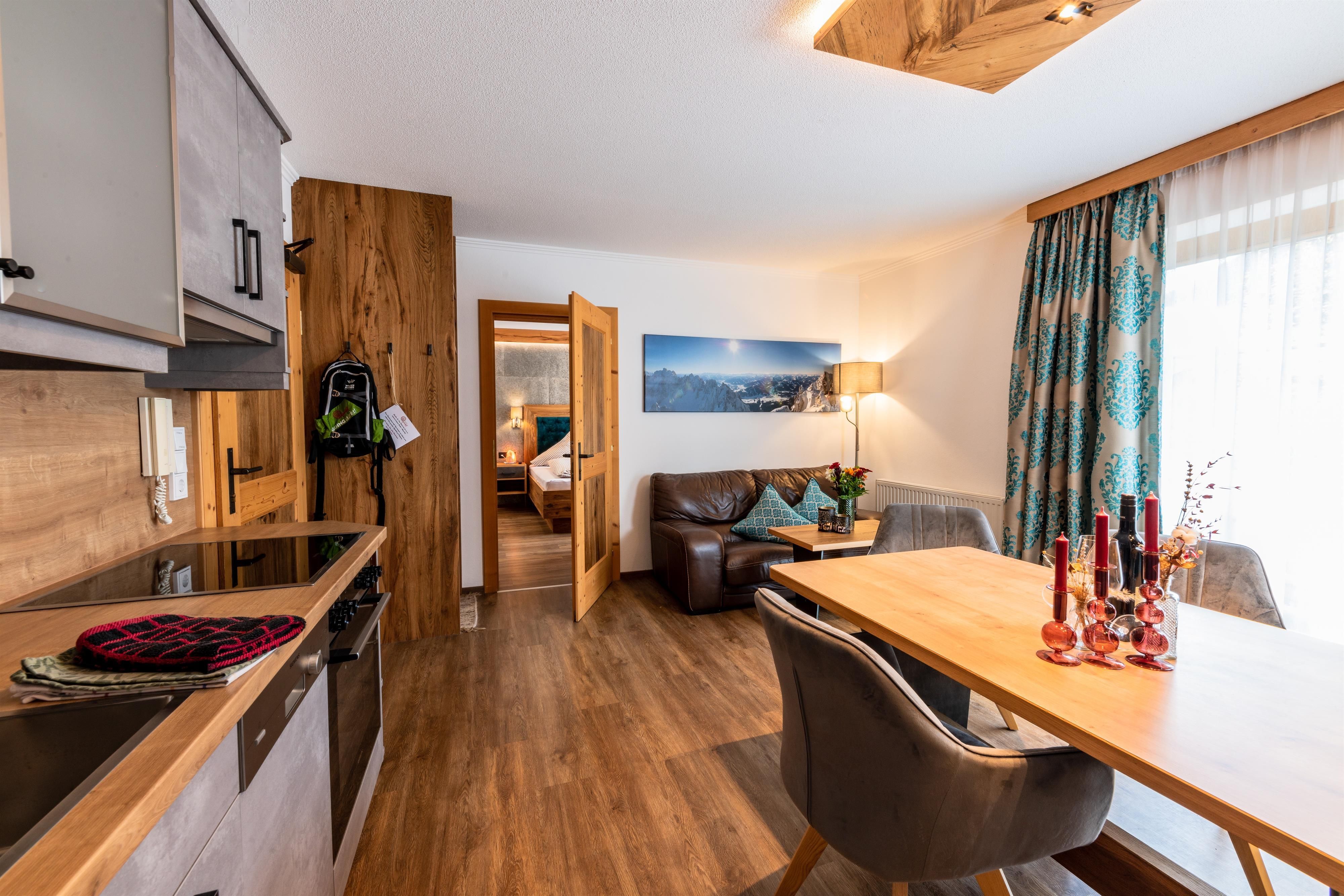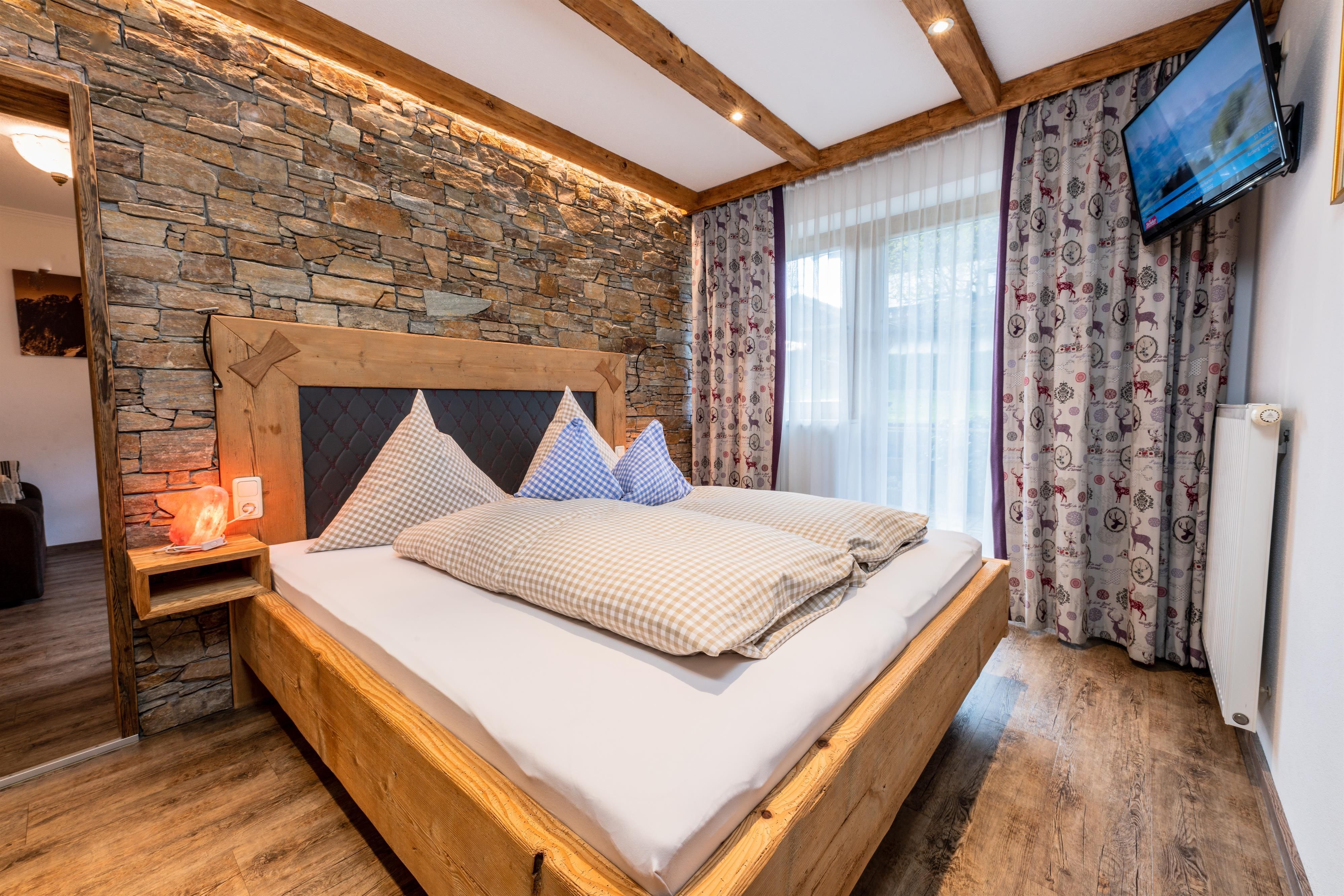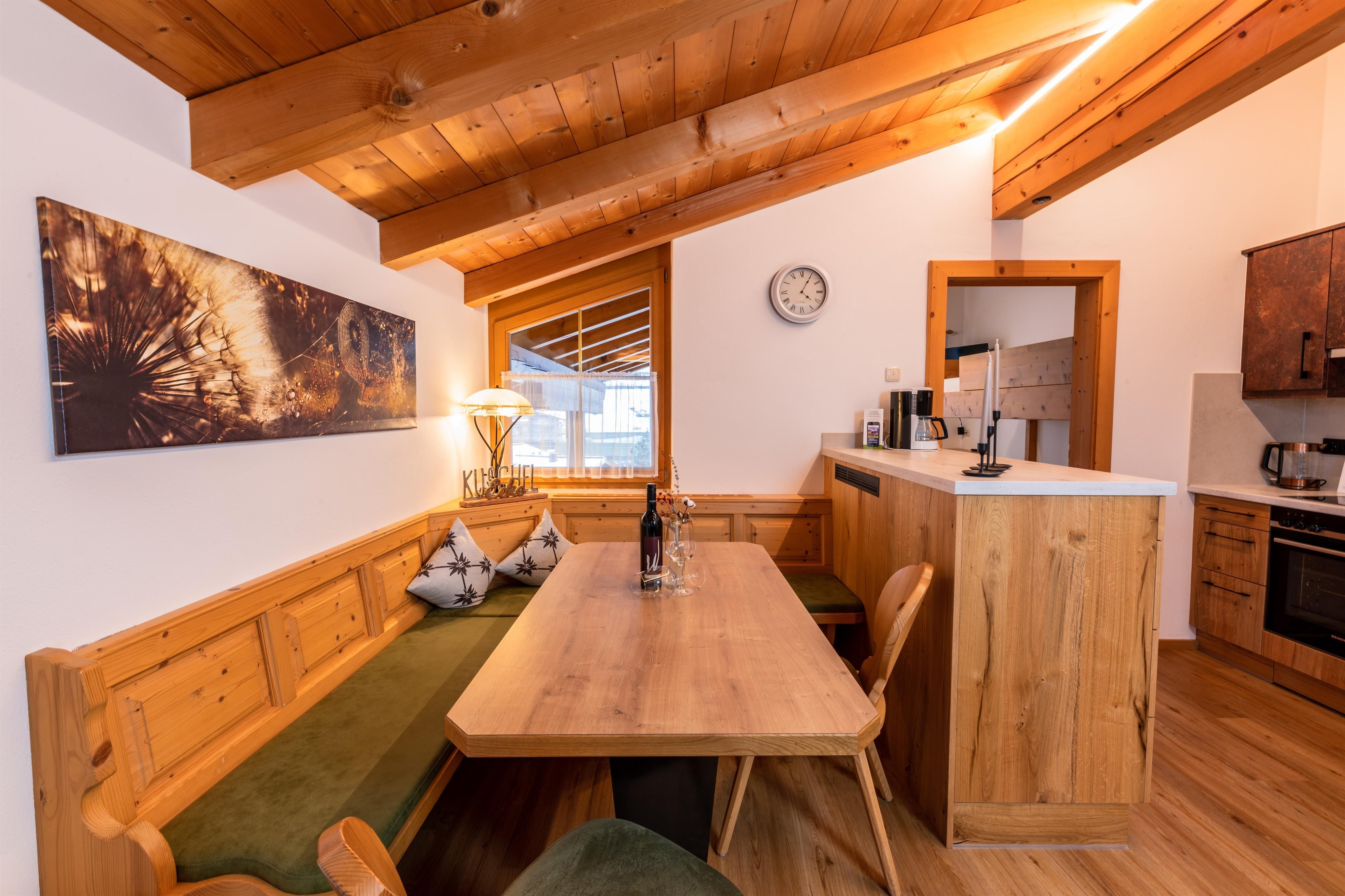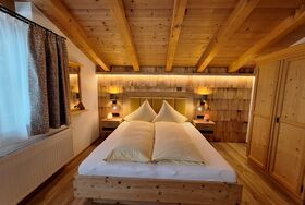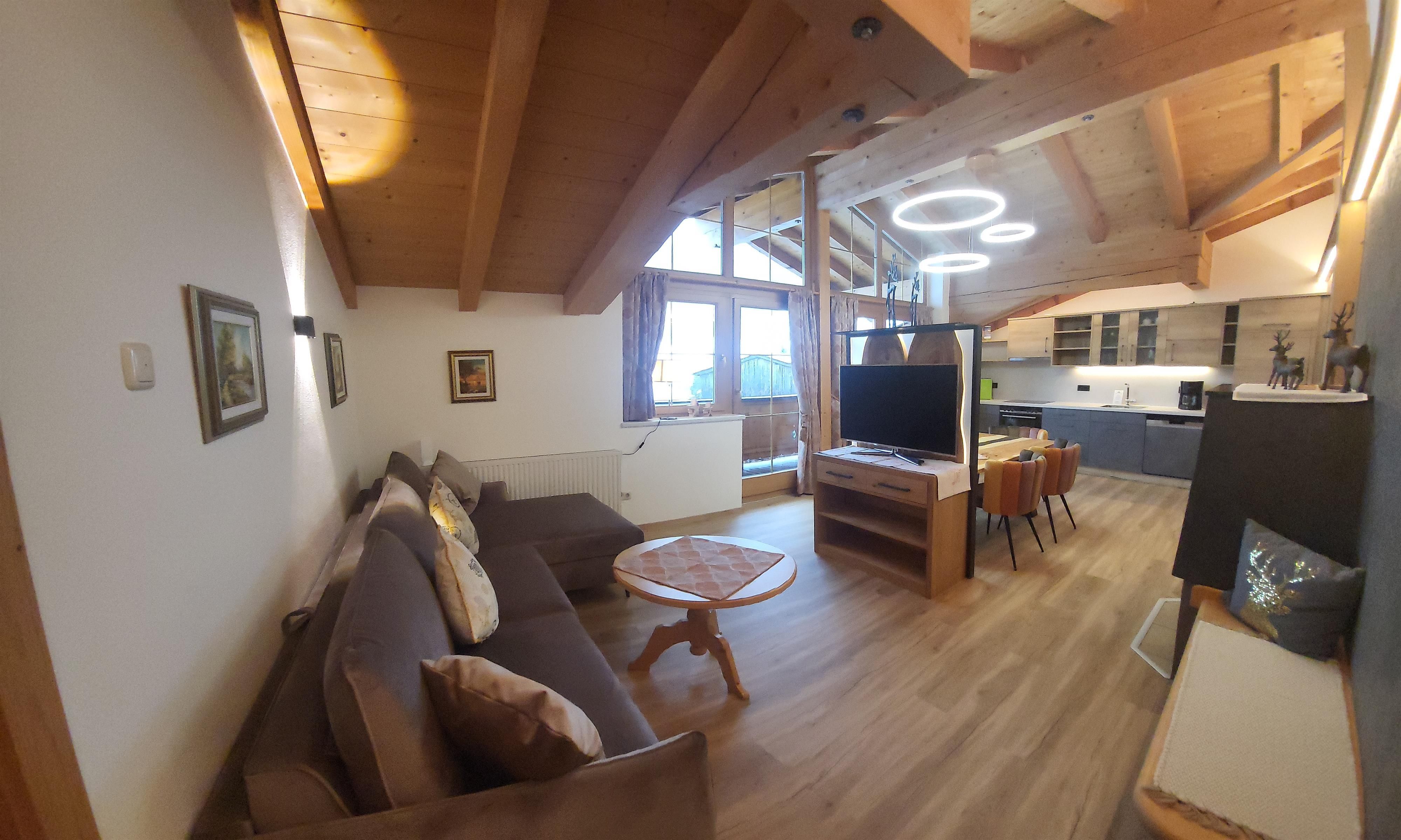 Das Appartment Nr. 5 liegt im Dachgeschoss. Mit Blick Richtung Norden zum Wilden Kaiser. Im ersten Schlafzimmer befindet sich ein Doppelbett, im zweiten Schlafzimmer sind zwei Einzelbetten. Das Wohnschlafzimmer inst mit einer Doppelschlafcouch, Kachelofen,Fernseher, Sitzecke und einer Küche ausgestattet. Badezimmer und separates WC. Das Appartment verfügt über einen eigenen Balkon. Der Dachstuhl wurde in Sichtbauweise gefertigt. Appartement 5 befindet sich direkt neben Appartement 4.