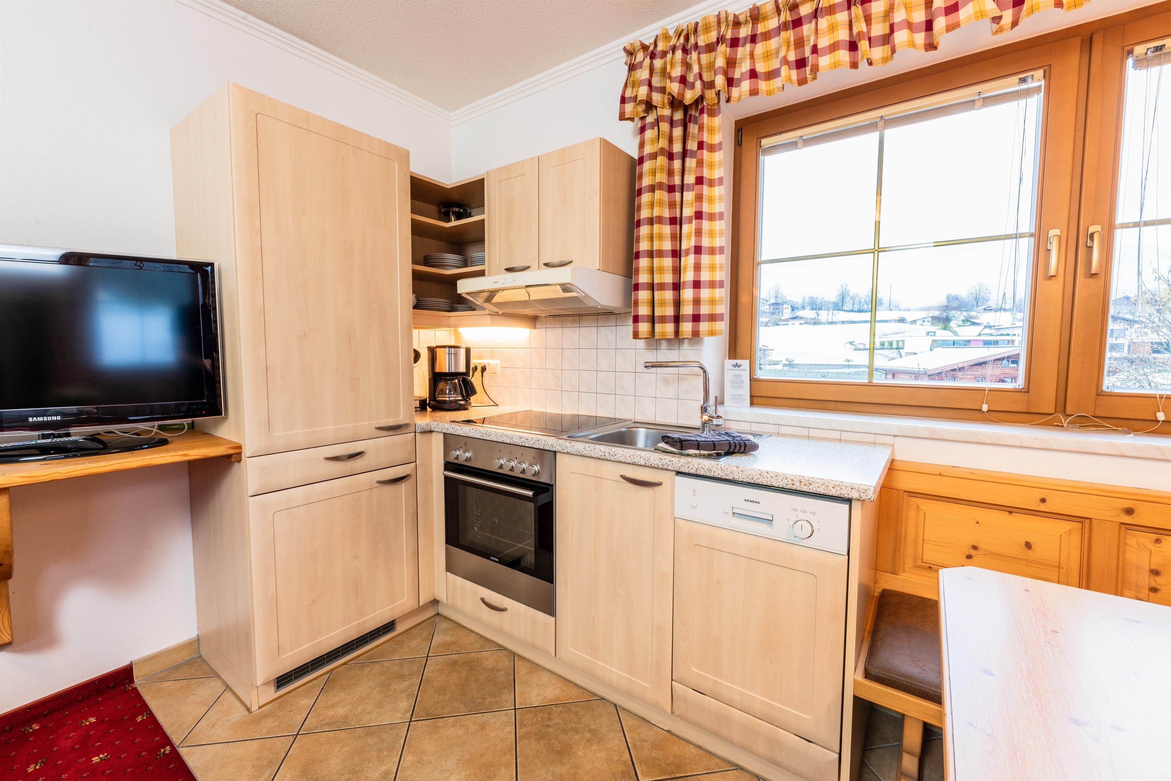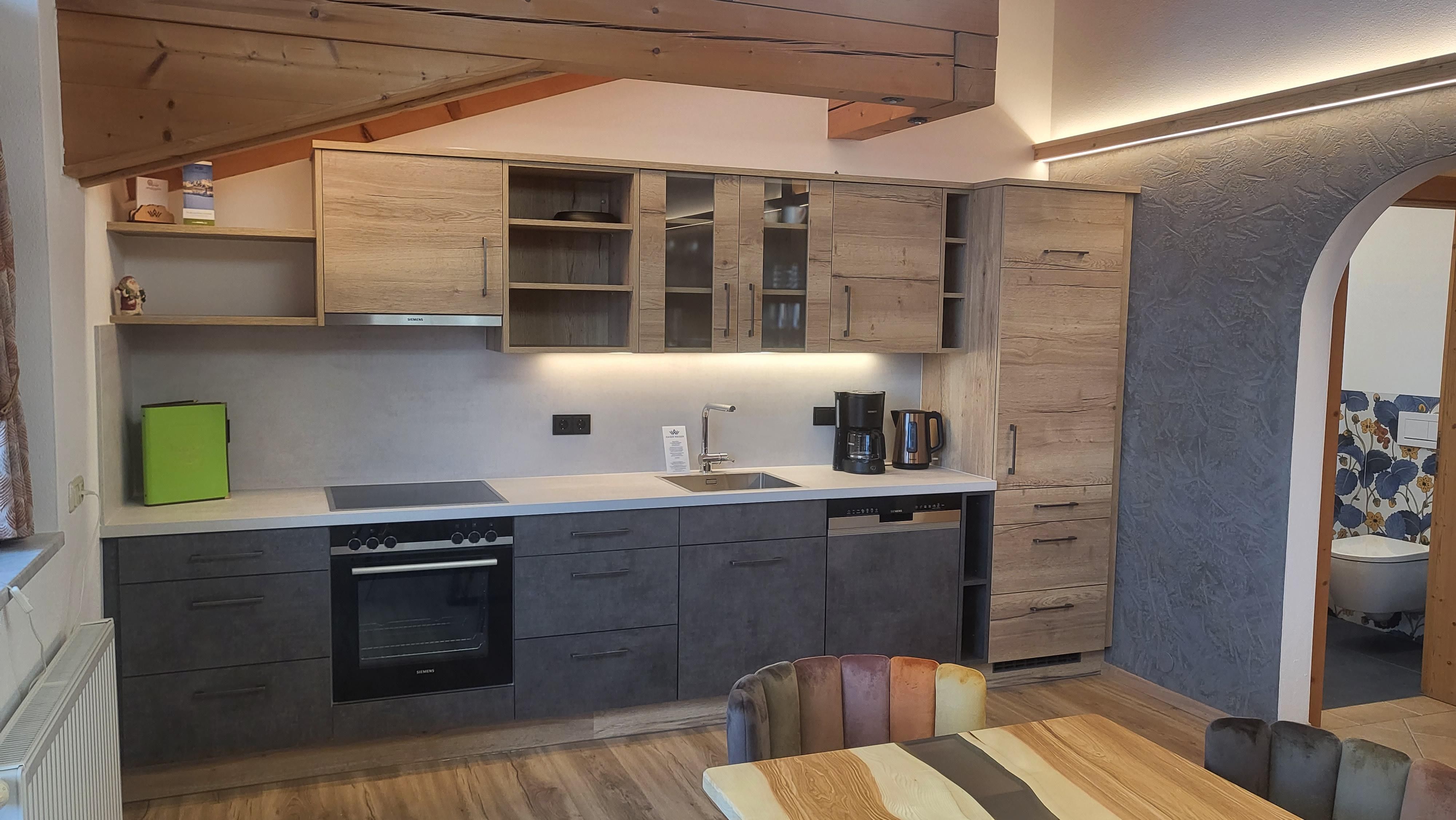 Das im Alpinen Lifestyle ausgestatteten Apartment befindet sich im 1. Stock und ist für Allergiker geeignet. Komfortable, von Tischlerhand auf Maß angefertigte Möblierung. Im Altholz-Schlafzimmer befinden sich ein Einbauschrank sowie ein Badezimmer mit Dusche. Die komplett ausgestattete, offene Küche ist in den Wohn-Essbereich integriert. Der möblierte Balkon ist nach Osten ausgerichtet und bietet einen atemberaubenden Blick au die umliegende Bergwelt.