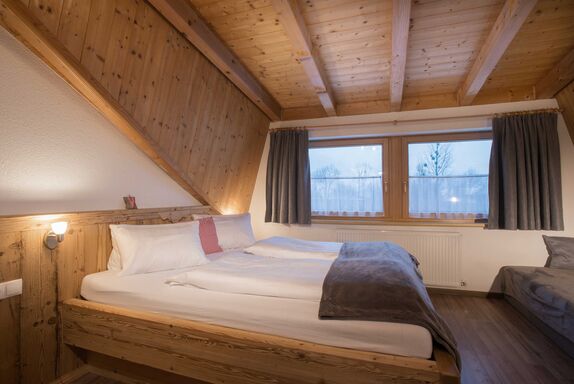 In unserem Ferienhof finden Sie Doppel-, Dreibett- und Familienzimmer, sowie Ferienwohnungen in verschiedenen Größen und unser in 2017 neu erbautes Alpenchalet (freistehendes Ferienhaus).
