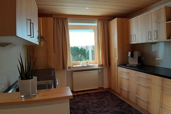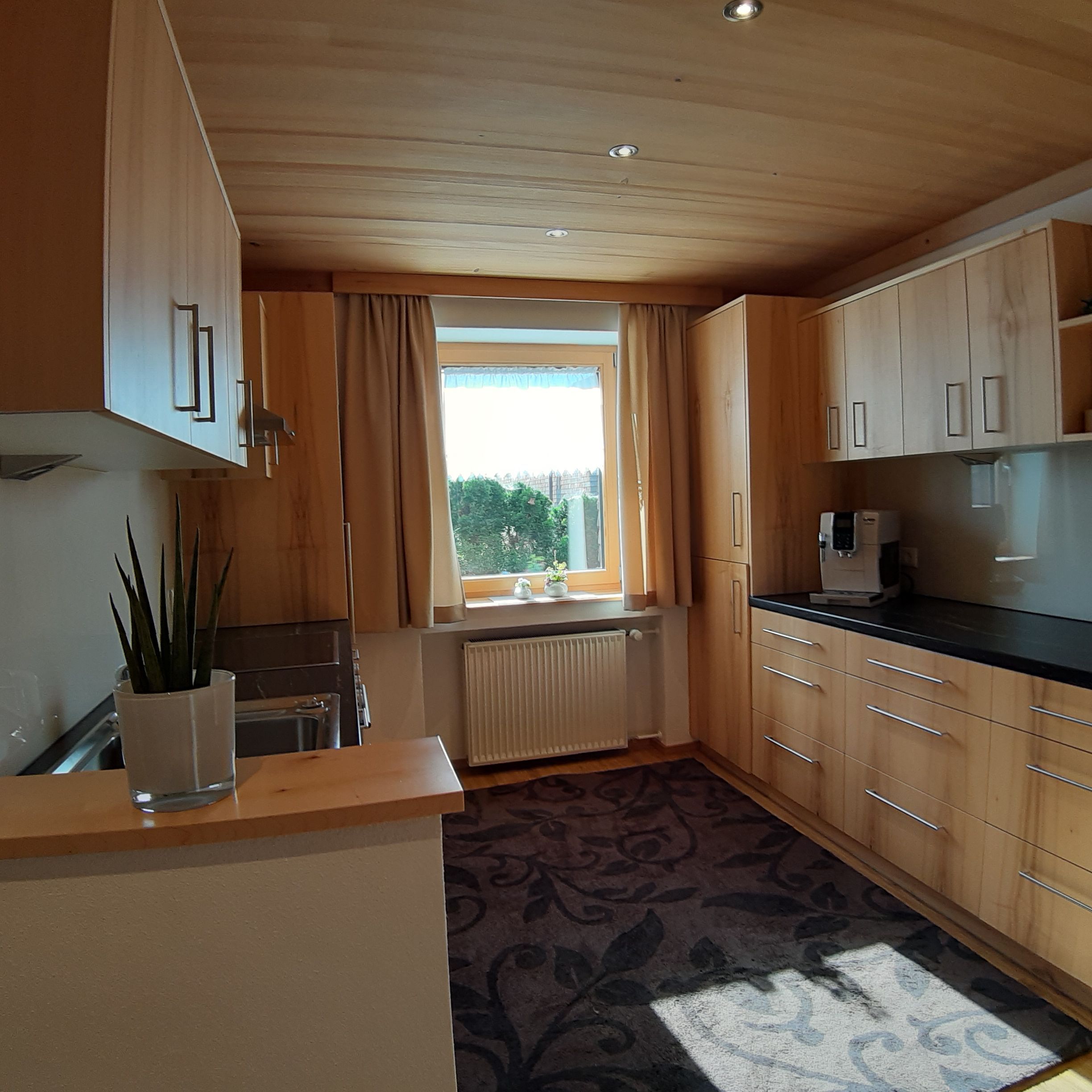 Wir führen Sie durch den geräumigen Eingangsbereich in die komplett eingerichtete Küche.