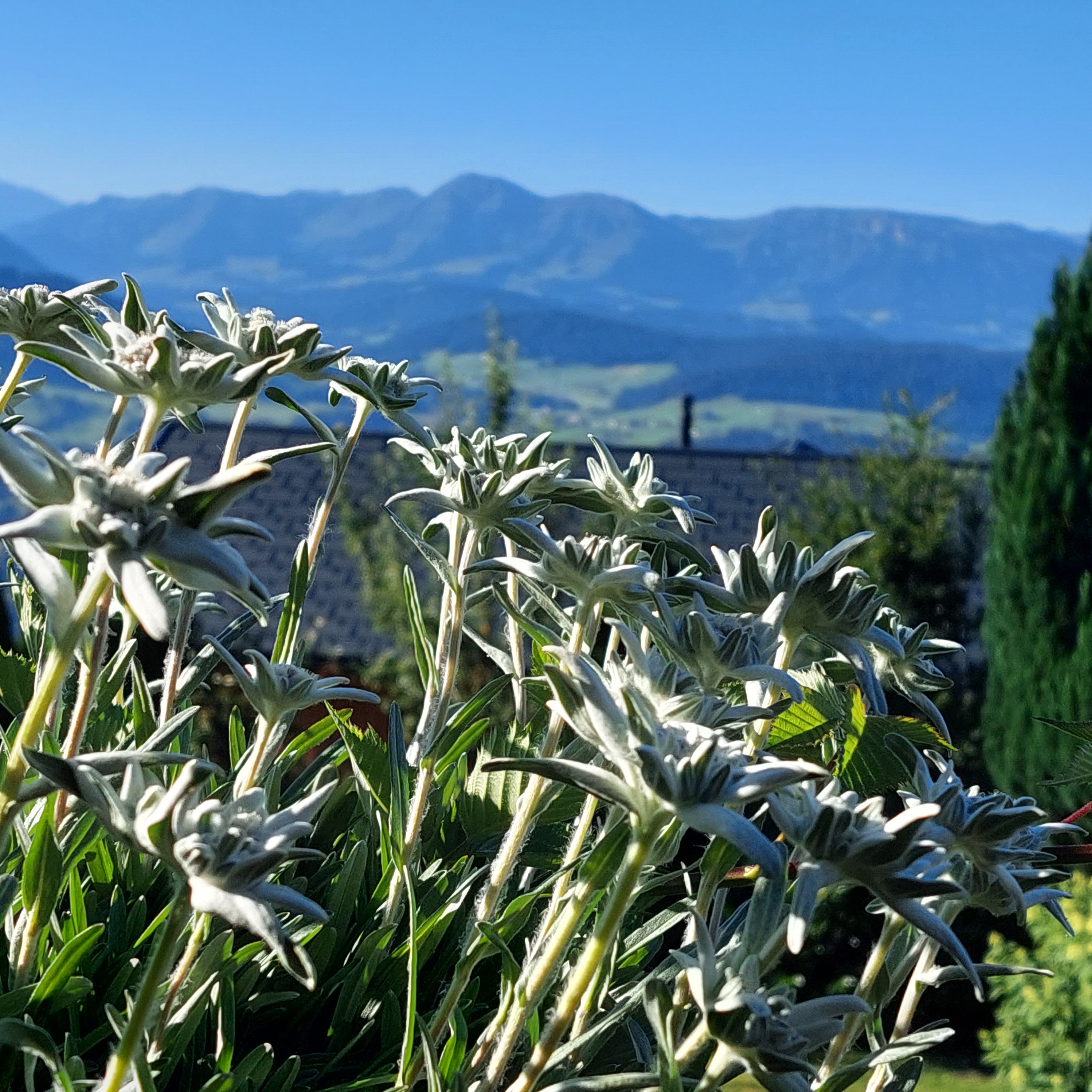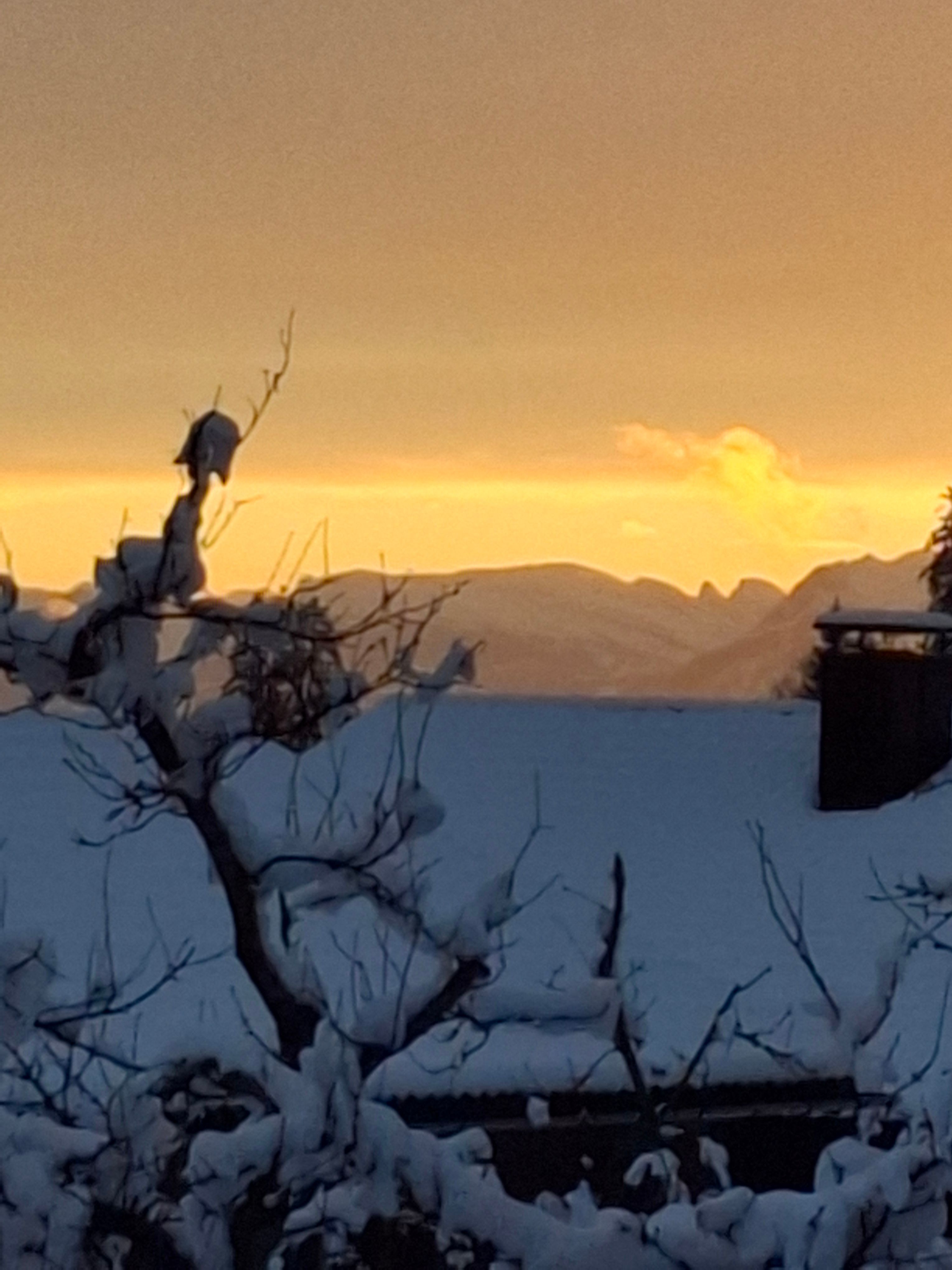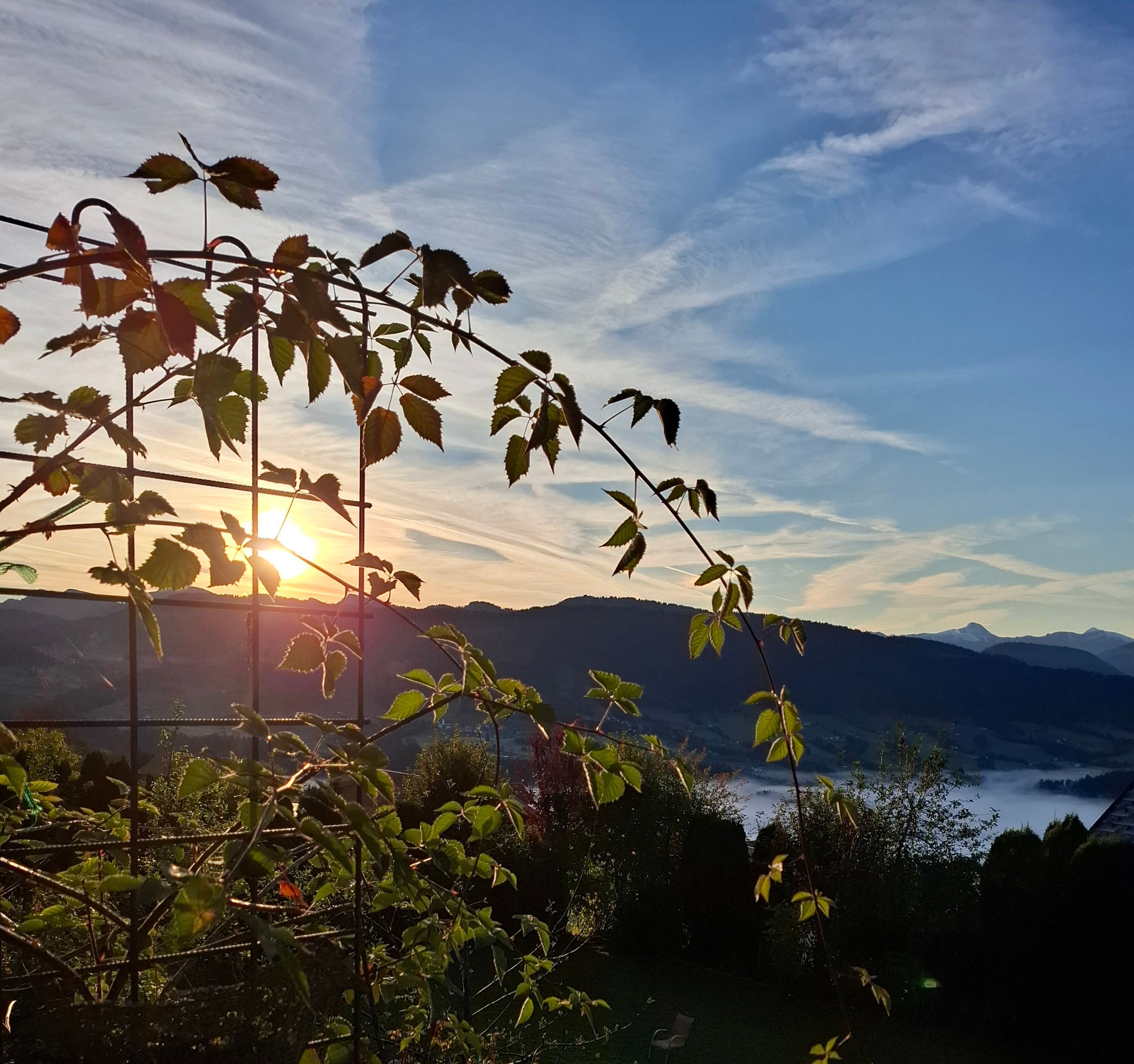 Genießen Sie bei einem Glas Wein auf dem Balkon oder Terasse den Sonnenuntergang über den Bergen.