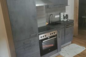 Die Wohnung ist mit einem Schlafzimmer, WC und Dusche und einer separaten Wohnküche ausgestattet. Sie ist geräumig und bietet einen schönen Blick Richtung Golzentipp.