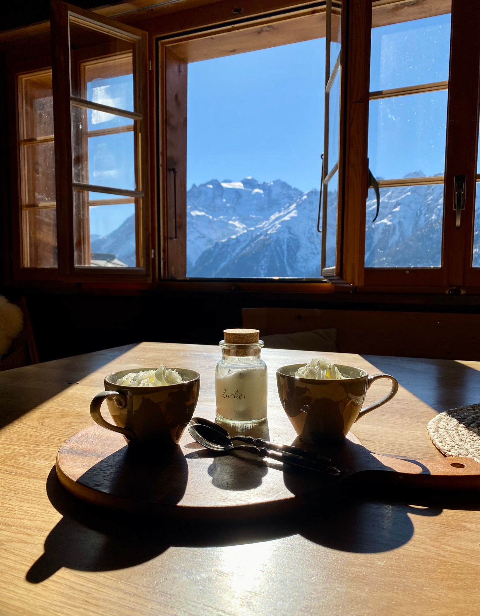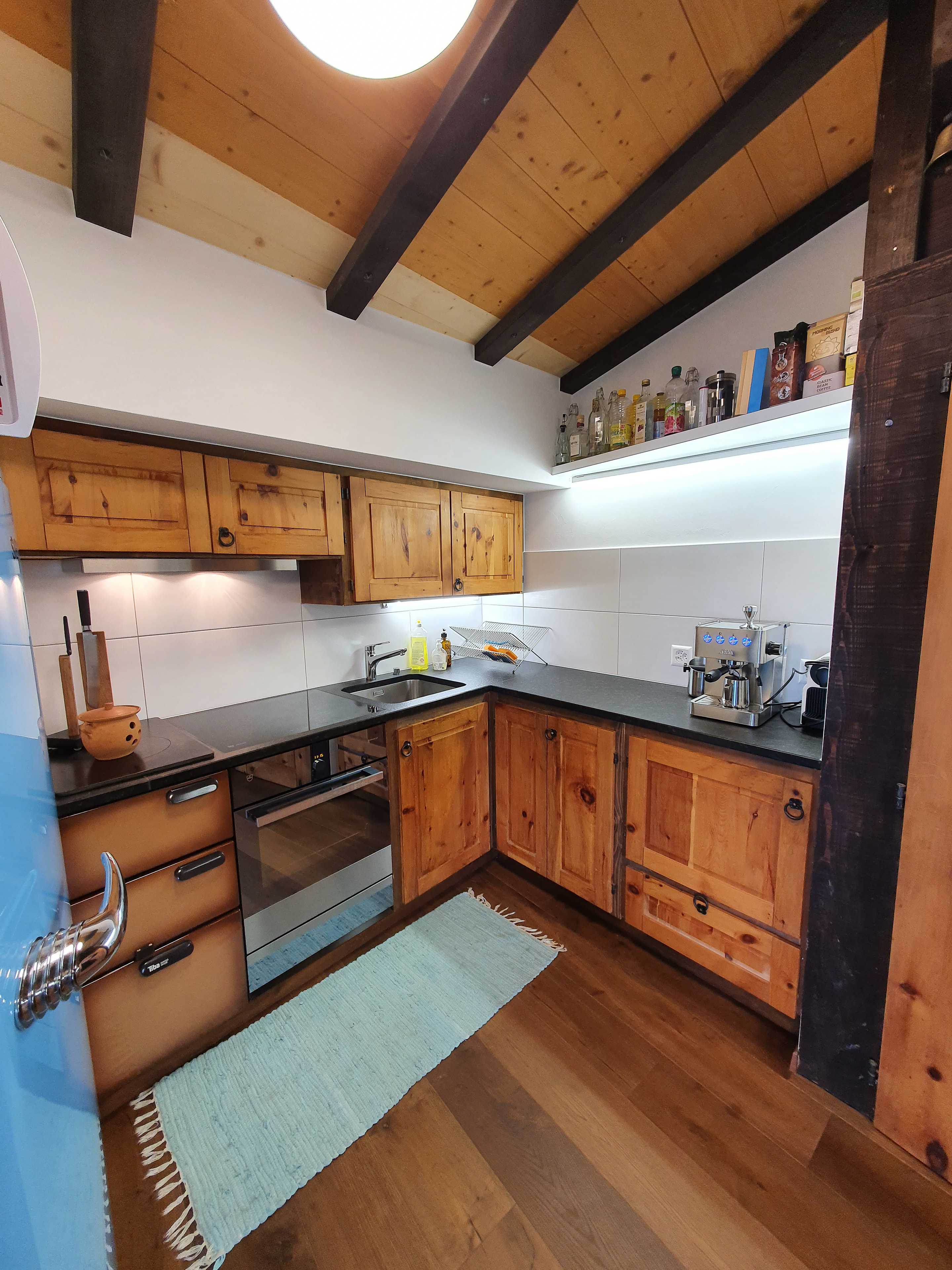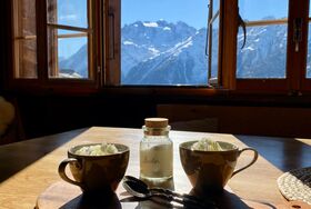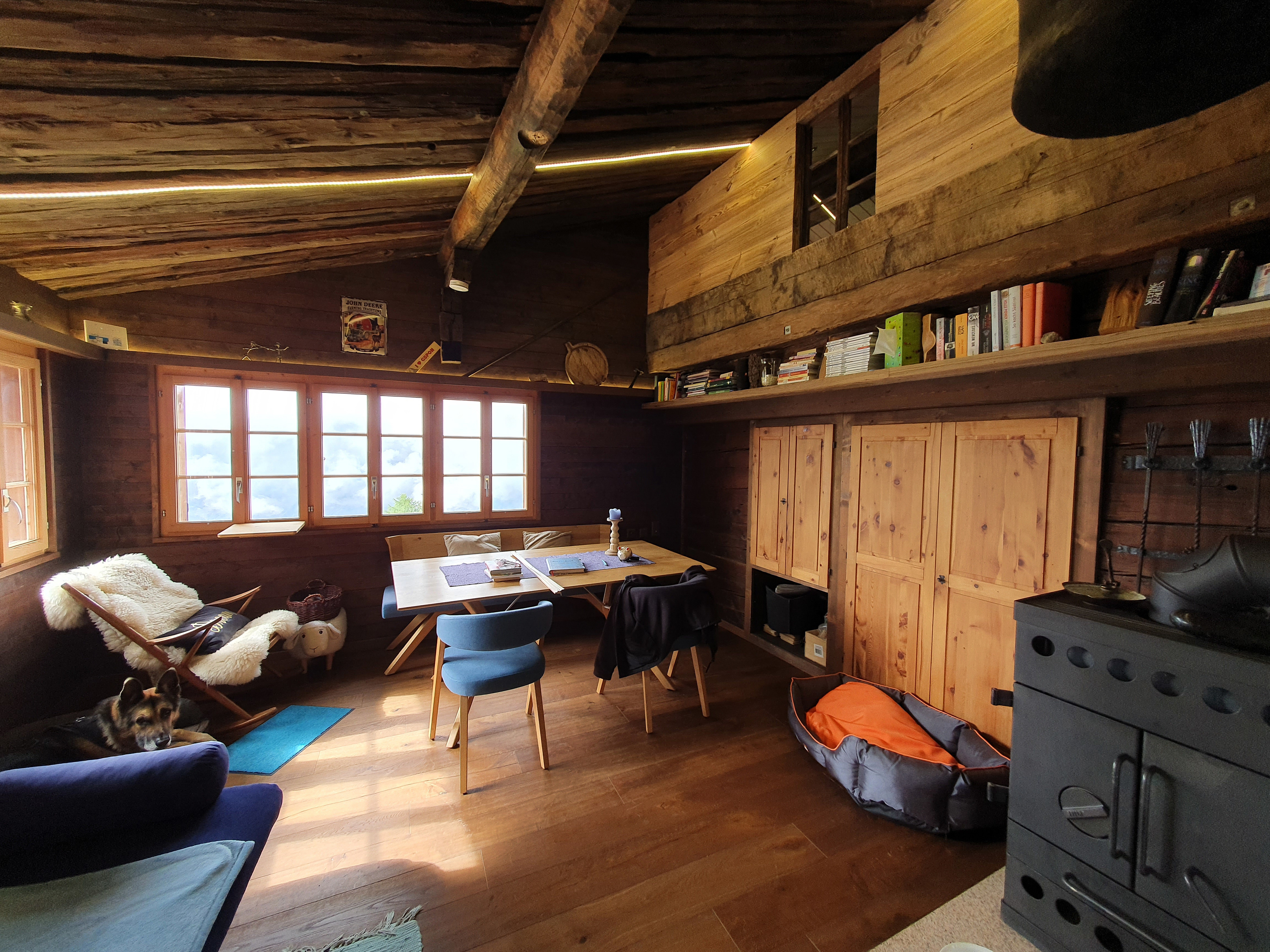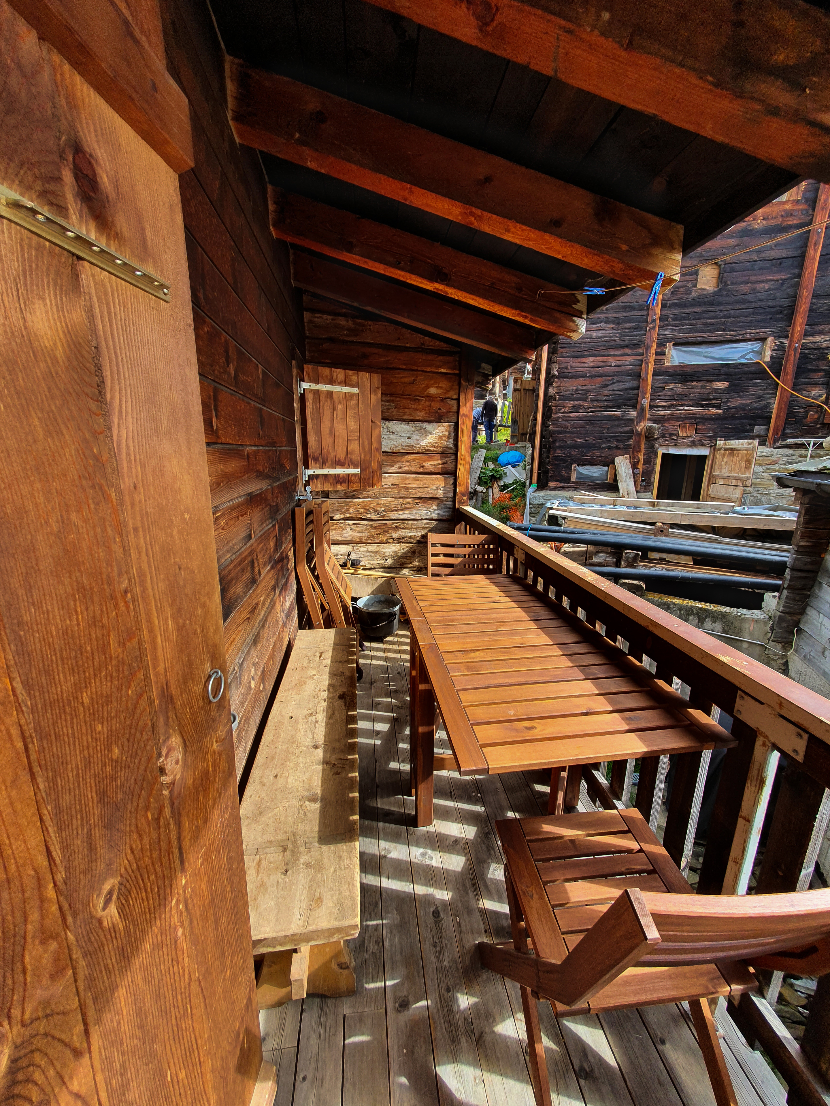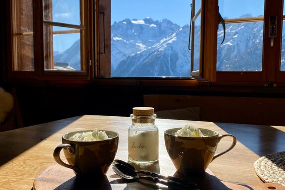 Heimelige Wohnung in einem Walliser Haus. Freier Blick ins Tal. Westbalkon und Gartenplatz. 2019 wurde die Wohnung sanft komplett renoviert, mit dem Ziel den Charme des Maiensäßes zu erhalten.