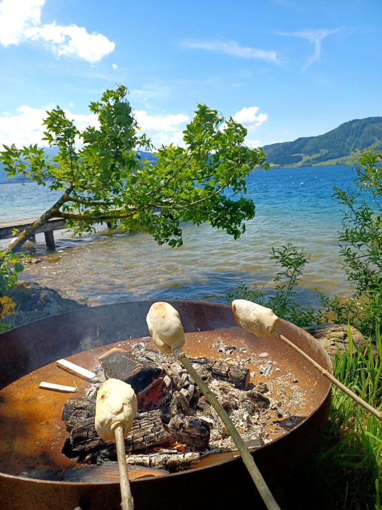 Gerne bieten wir Grillfleisch von unseren Kühen an. Diese verbringen mehr als die Hälfte des Jahres auf unserer Weide. Dort fressen sie nur die besten Wiesenkräuter und genießen einen einzigartigen Ausblick auf den See.