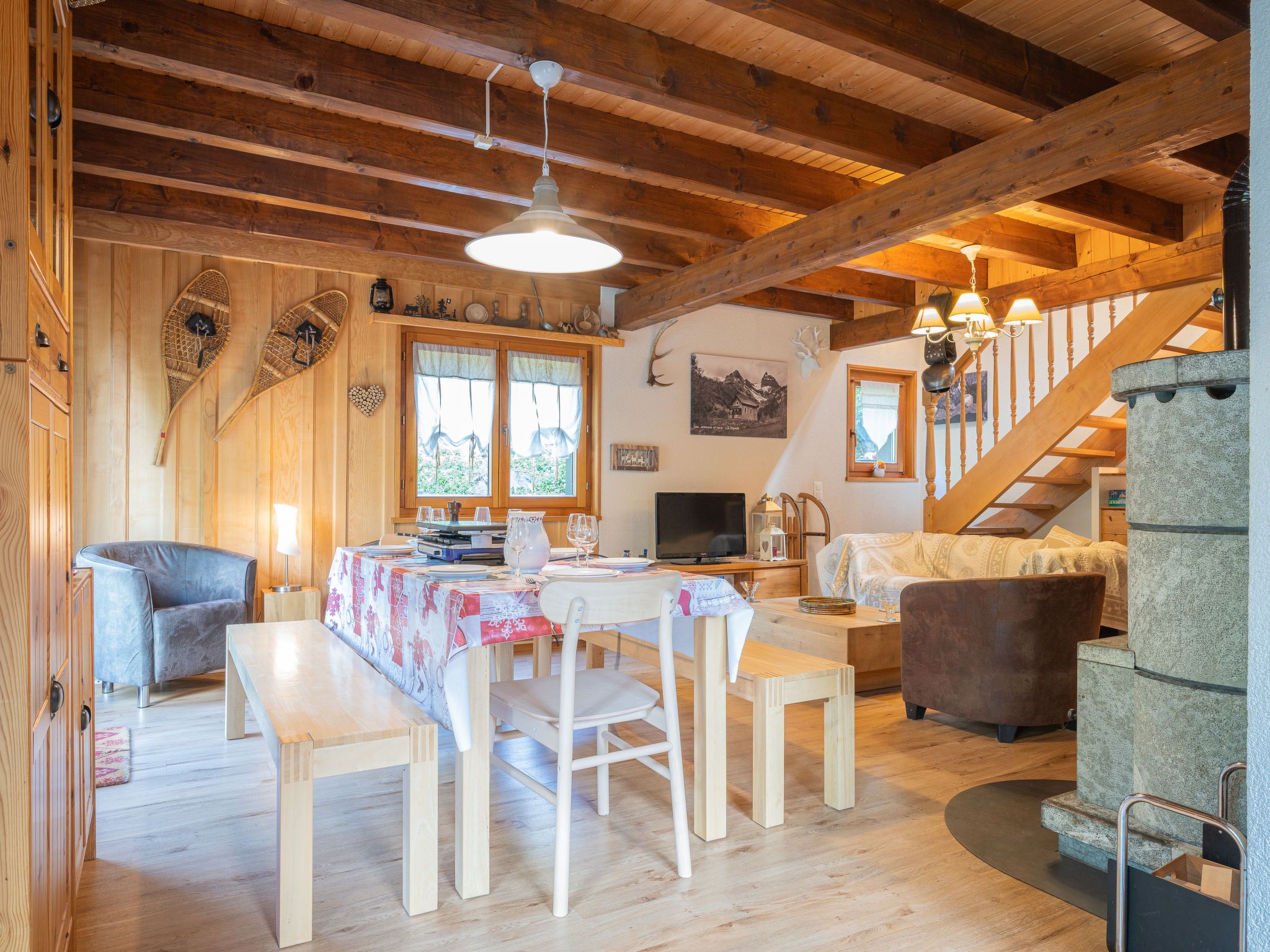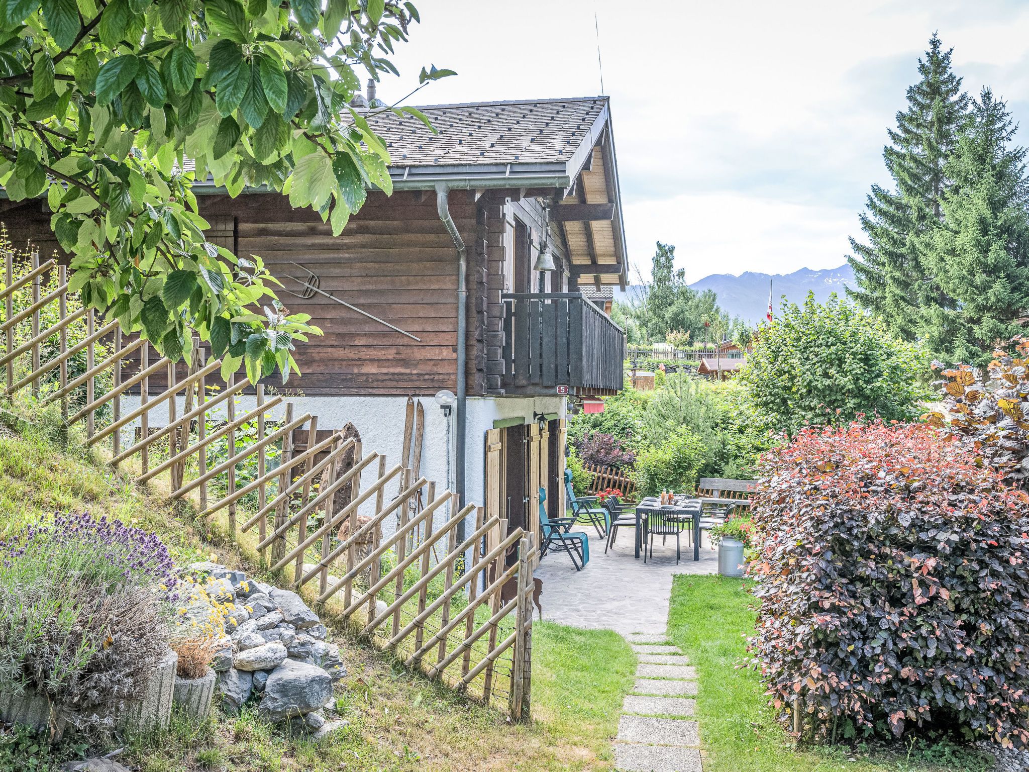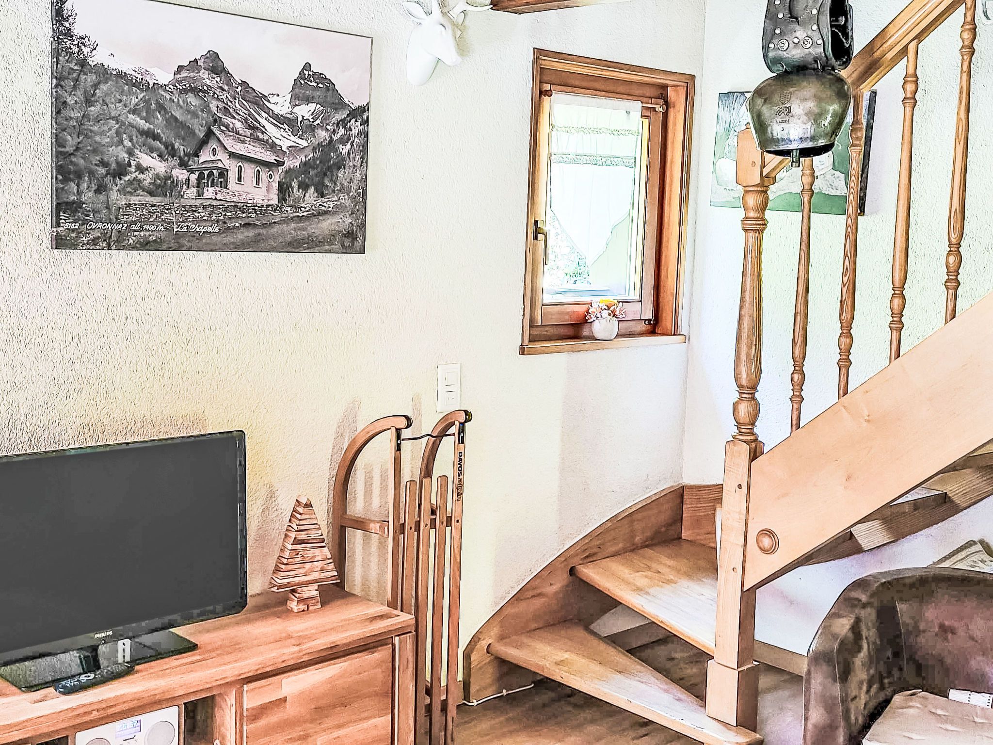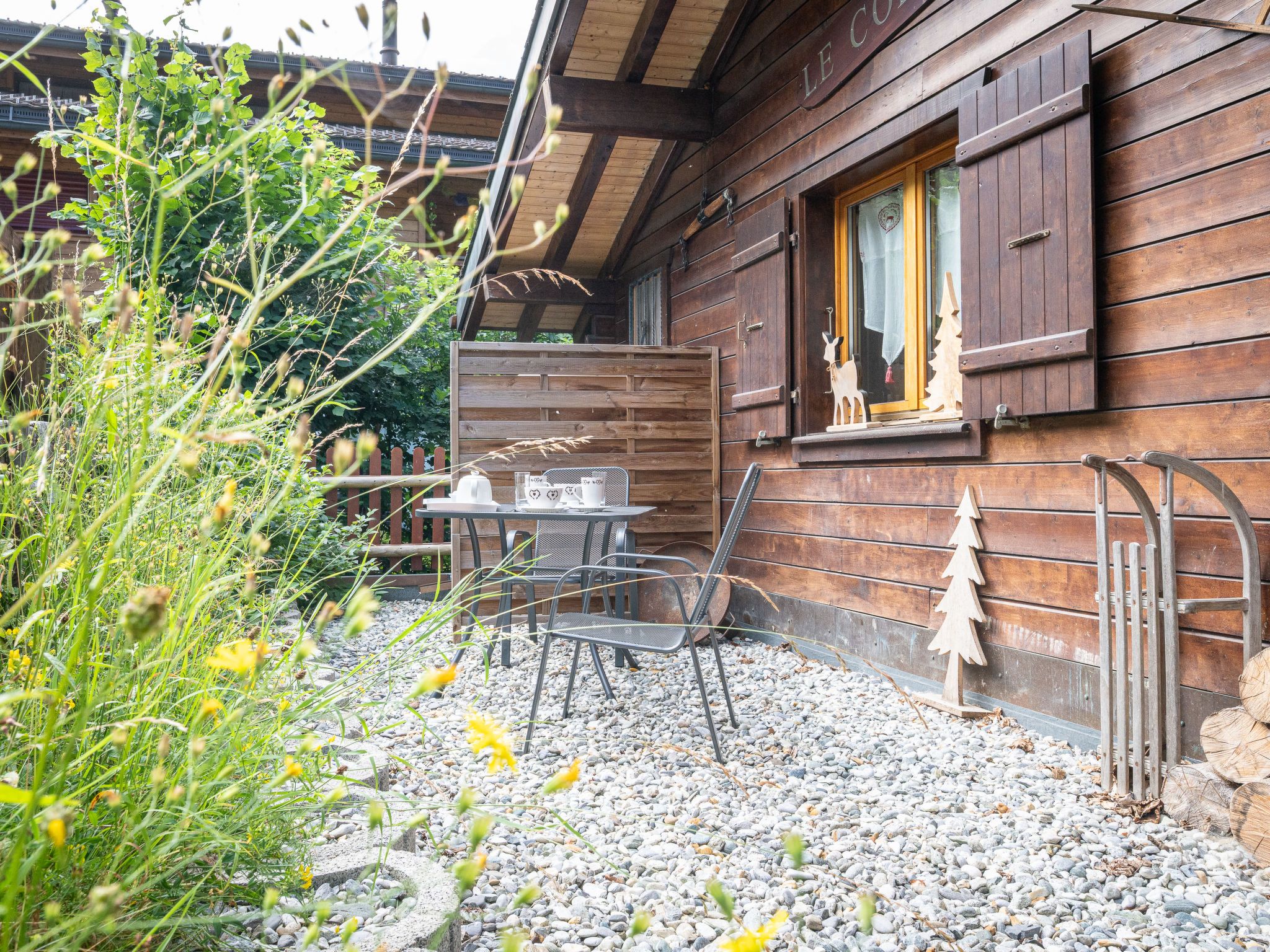 Le Coeur, 4-Zimmer-Chalet 100 m2 auf 2 Stockwerken, Westlage. Objekt geeignet für 4 Erwachsene + 3 Kinder. Abgeschrägt, teilweise renoviert im Jahre 2019, komfortabel und mit viel Holz eingerichtet: Wohn-/Esszimmer mit Schwedenofen, Kabel-TV und Radio. Ausgang zur Terrasse. Offene Küche (Backofen, Geschirrspüler, 4 Glaskeramikplatten, Toaster, Wasserkocher, Mikrowelle, elektrische Kaffeemaschine, Kapseln für die Kaffeemaschine (Nespresso) extra, Racletteofen, Fondue Set (Käse)). Dusche/WC. Obergeschoss: 1 Zimmer mit 1 franz. Bett (180 cm, Länge 200 cm). Ausgang zum Balkon. 1 Zimmer mit 1 franz. Bett (180 cm, Länge 200 cm). Ausgang zum Balkon. 1 Kinderzimmer mit 1 Bett (90 cm, Länge 190 cm), 1 x 2 Etagenbetten (90 cm, Länge 190 cm). Bad/WC. Balkon, Westlage, Terrasse, Westlage, Garten, Südlage und Westlage. Terrassenmöbel, Gartengrill. Sehr schöne Sicht auf die Berge und das Tal. Zur Verfügung: Waschmaschine, Wäschetrockner, Kinderhochstuhl, Babybett bis 2 Jahre, Haartrockner. Internet (WLAN, gratis). Parkplatz (1 Auto) in 20 m. Bitte beachten: geeignet für Familien. Nichtraucher-Haus. Maximal 1 Haustier/Hund erlaubt.