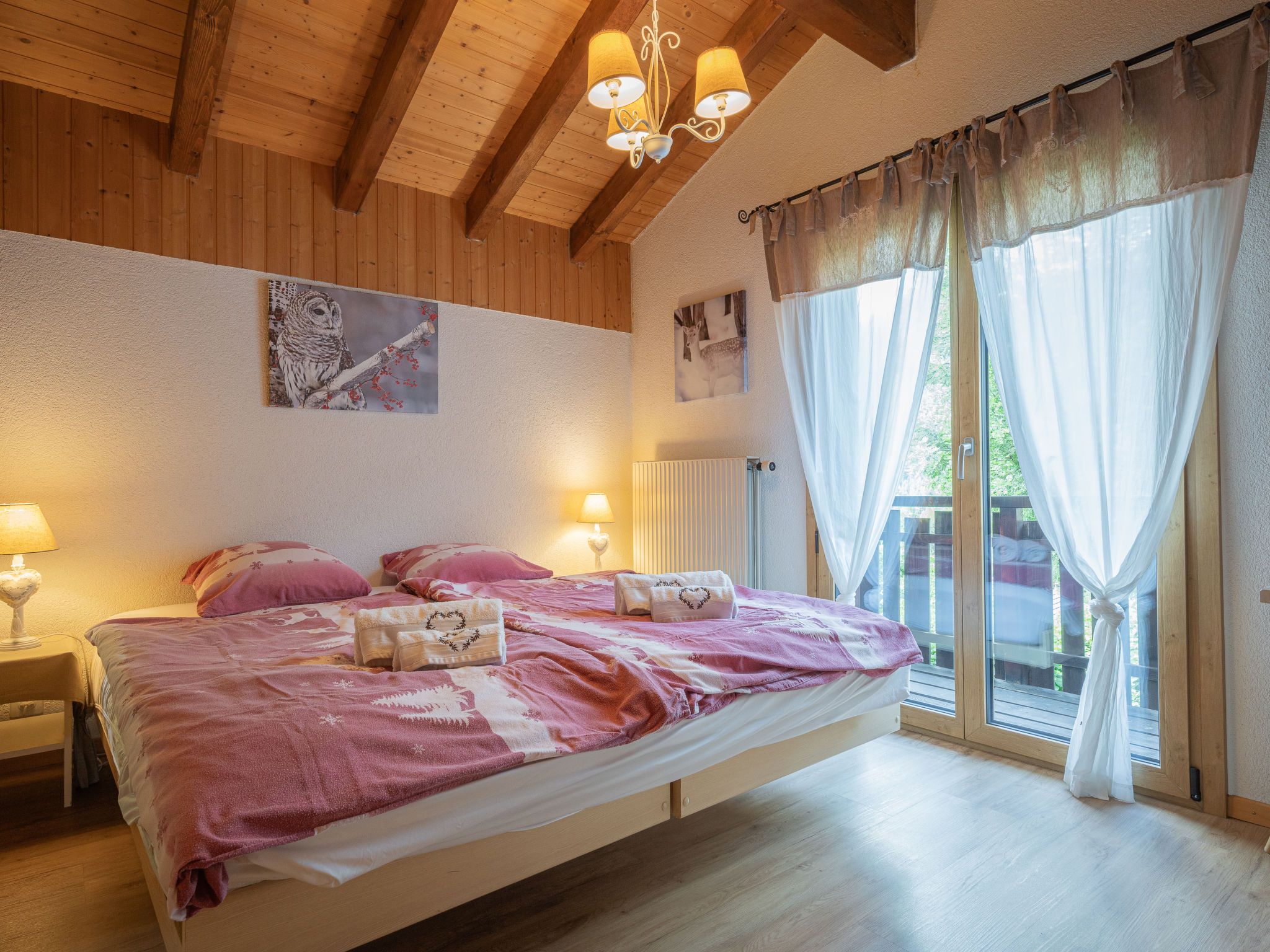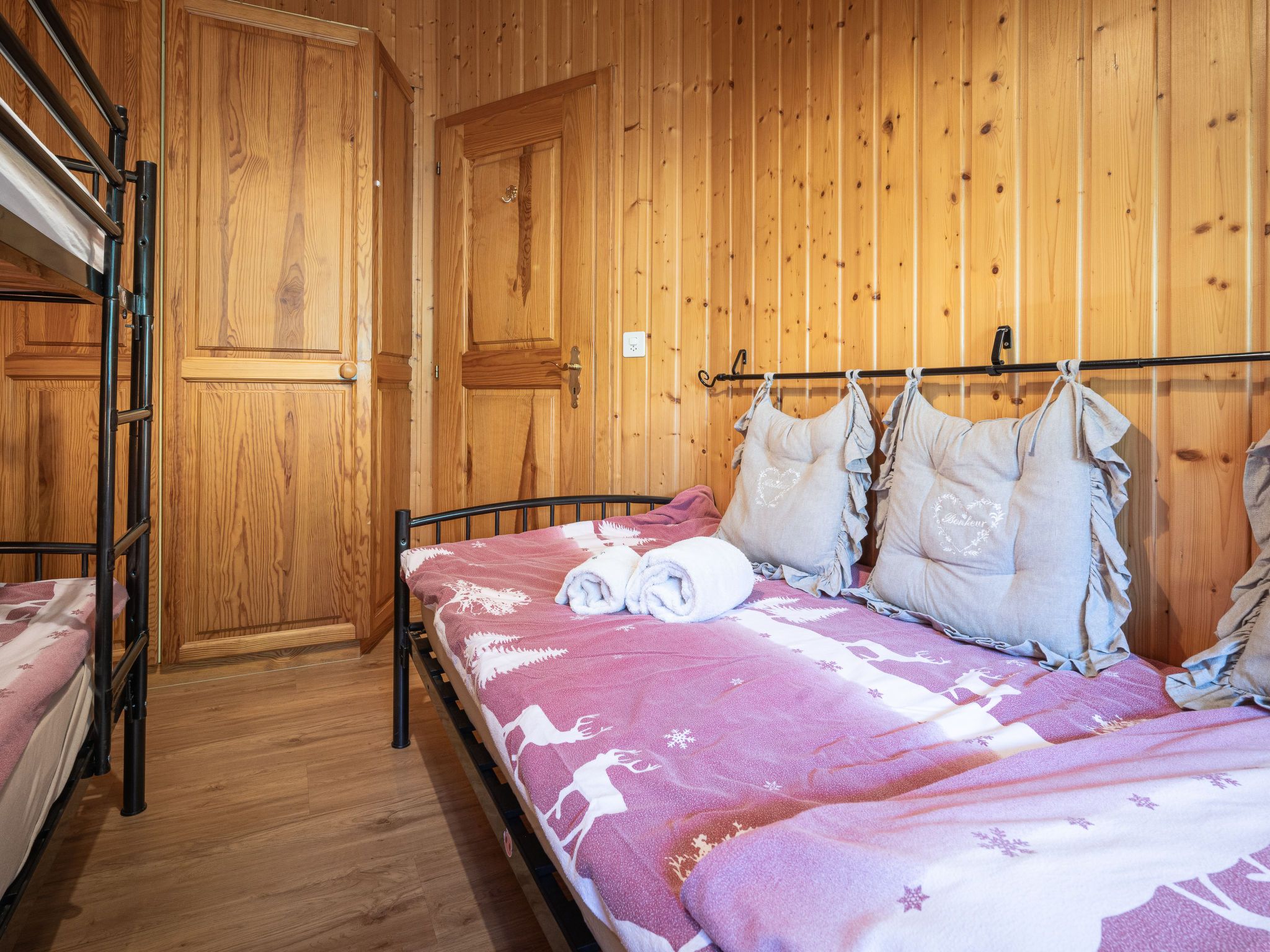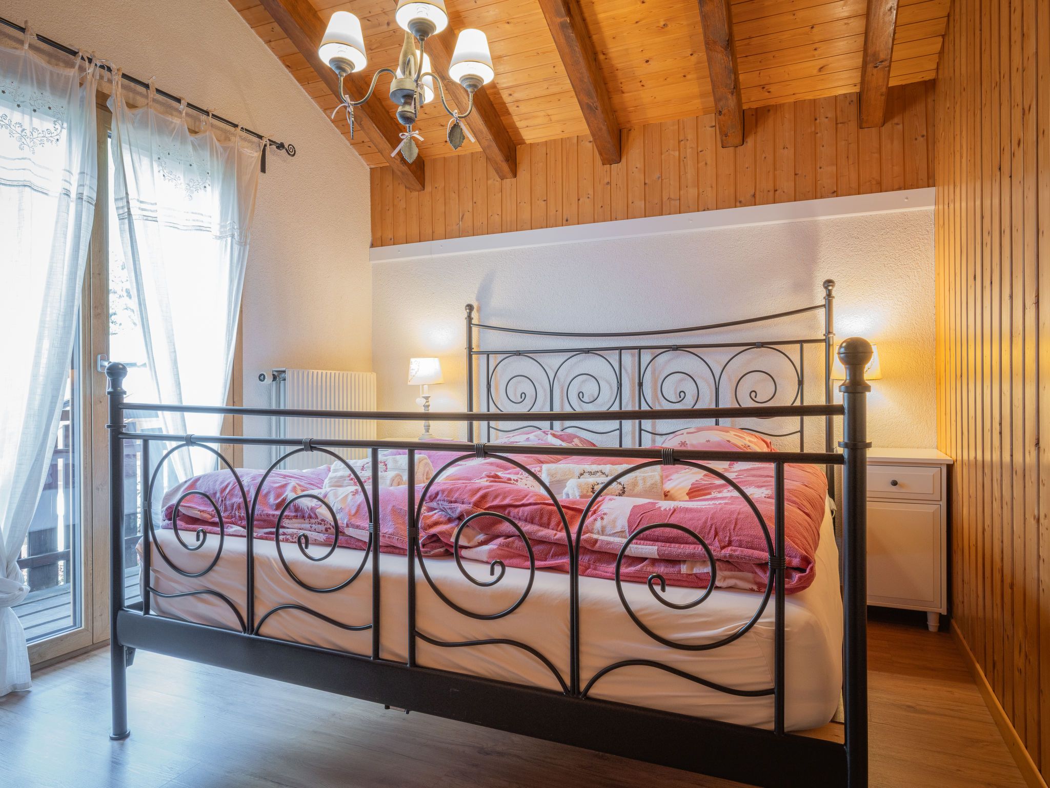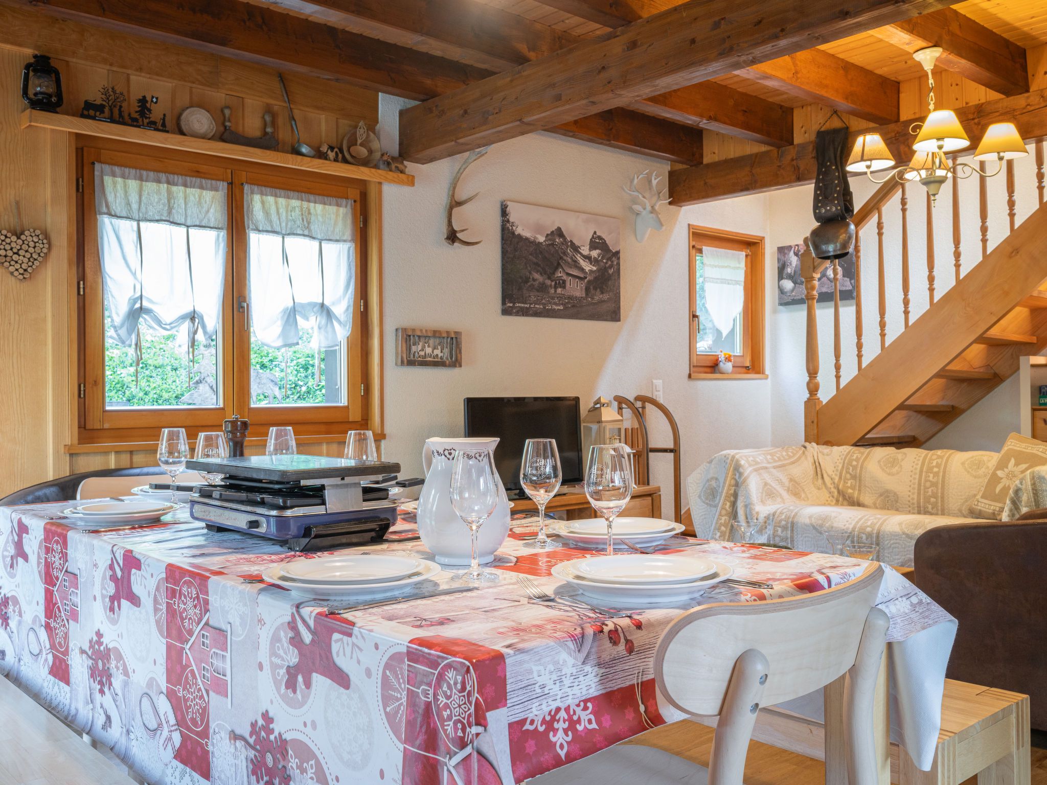 Le Coeur, 4-Zimmer-Chalet 100 m2 auf 2 Stockwerken, Westlage. Objekt geeignet für 4 Erwachsene + 3 Kinder. Abgeschrägt, teilweise renoviert im Jahre 2019, komfortabel und mit viel Holz eingerichtet: Wohn-/Esszimmer mit Schwedenofen, Kabel-TV und Radio. Ausgang zur Terrasse. Offene Küche (Backofen, Geschirrspüler, 4 Glaskeramikplatten, Toaster, Wasserkocher, Mikrowelle, elektrische Kaffeemaschine, Kapseln für die Kaffeemaschine (Nespresso) extra, Racletteofen, Fondue Set (Käse)). Dusche/WC. Obergeschoss: 1 Zimmer mit 1 franz. Bett (180 cm, Länge 200 cm). Ausgang zum Balkon. 1 Zimmer mit 1 franz. Bett (180 cm, Länge 200 cm). Ausgang zum Balkon. 1 Kinderzimmer mit 1 Bett (90 cm, Länge 190 cm), 1 x 2 Etagenbetten (90 cm, Länge 190 cm). Bad/WC. Balkon, Westlage, Terrasse, Westlage, Garten, Südlage und Westlage. Terrassenmöbel, Gartengrill. Sehr schöne Sicht auf die Berge und das Tal. Zur Verfügung: Waschmaschine, Wäschetrockner, Kinderhochstuhl, Babybett bis 2 Jahre, Haartrockner. Internet (WLAN, gratis). Parkplatz (1 Auto) in 20 m. Bitte beachten: geeignet für Familien. Nichtraucher-Haus. Maximal 1 Haustier/Hund erlaubt.
